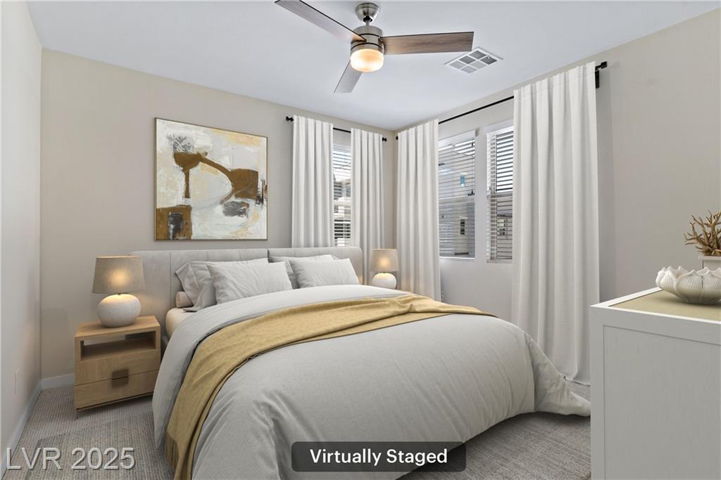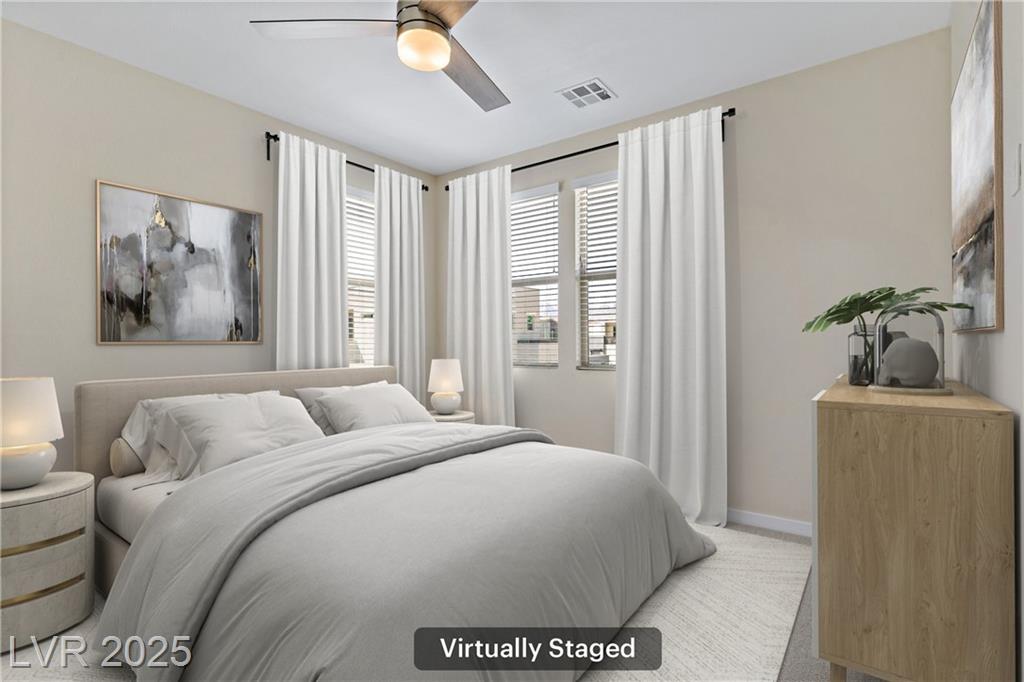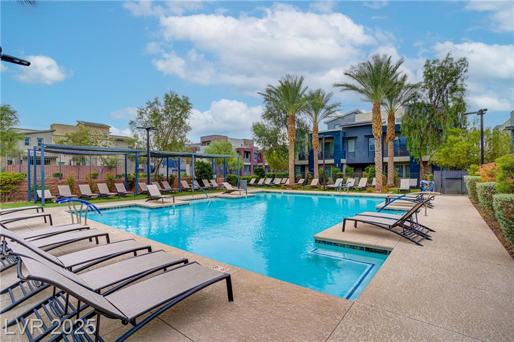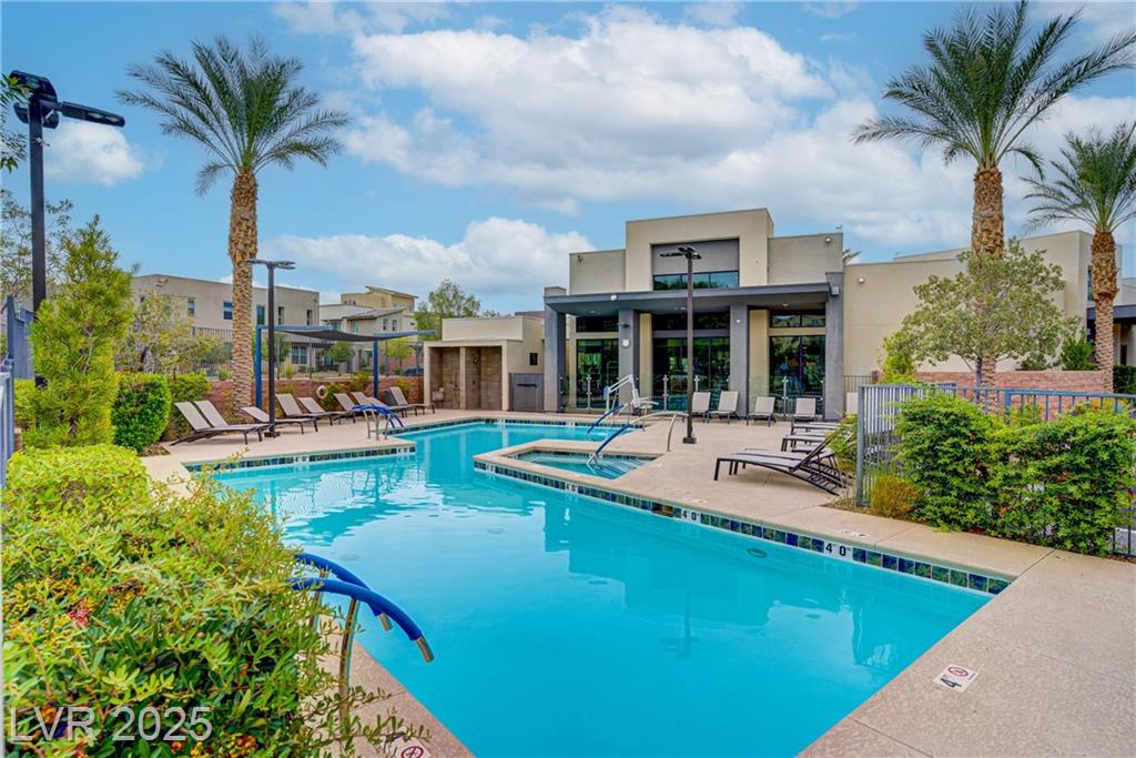 Experience elevated living at Affinity! This modern condo features two spacious bedroom suites, each with walk-in closets and dual sinks for comfort and style. The open-concept main level showcases a gourmet kitchen with quartz countertops, stainless steel appliances, and plenty of natural light. Upstairs, a versatile loft and second suite provide privacy and flexibility. Additional highlights include window coverings throughout and a private 2-car garage. Enjoy resort-style amenities just steps from your door—two sparkling pools, relaxing spas, firepits, BBQ grills, a state-of-the-art fitness center, yoga studio, meeting rooms, and a lifestyle director to keep the community vibrant. Ideally located near Downtown Summerlin, Las Vegas Ballpark, Citi National Arena, Red Rock Resort, and quick 215 Beltway access, this home offers the perfect blend of convenience and luxury living.