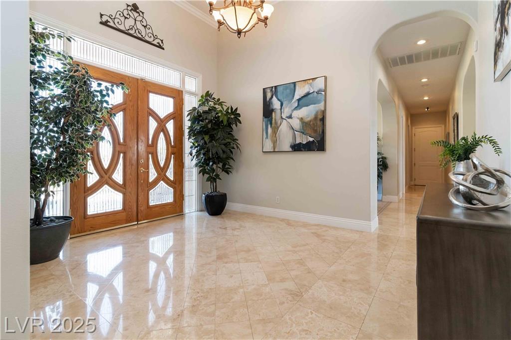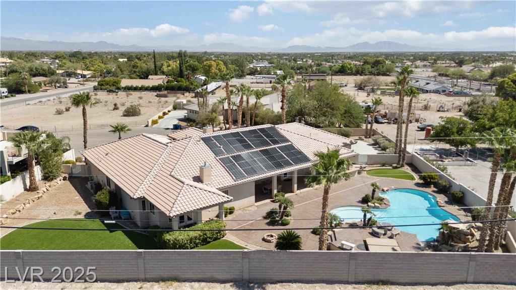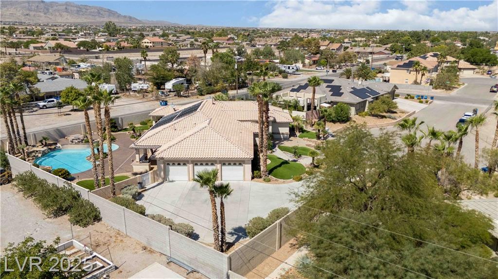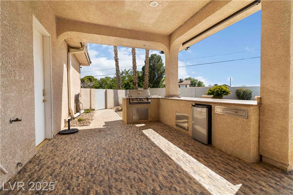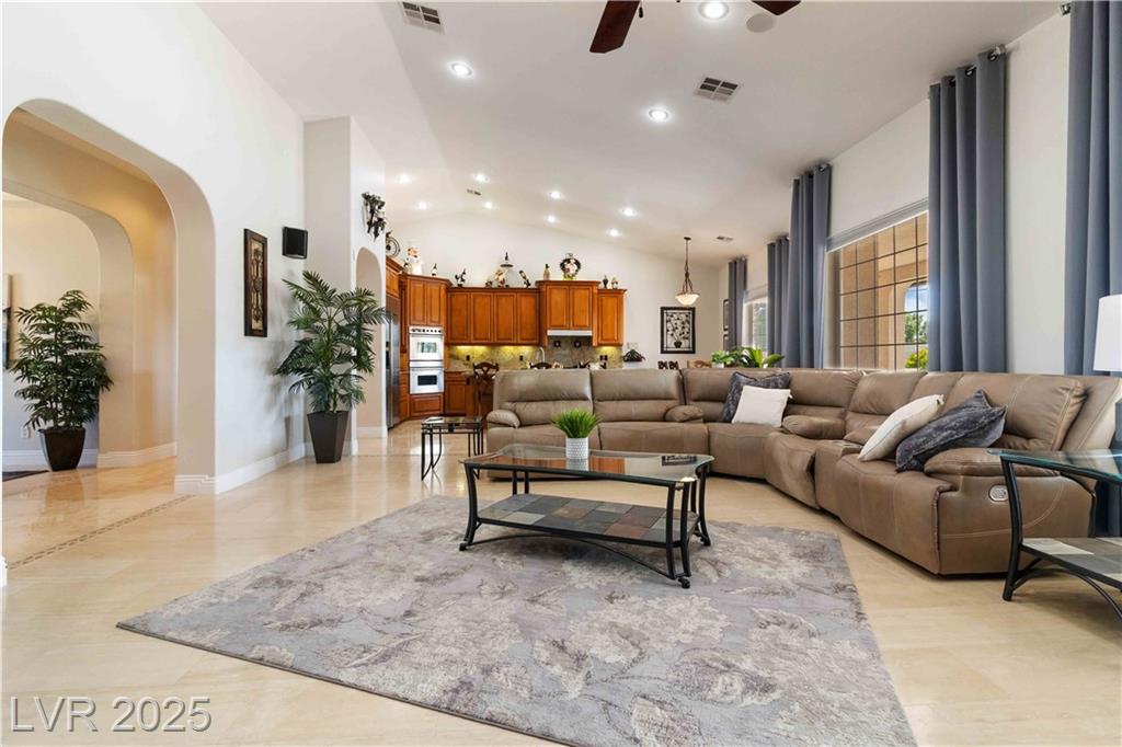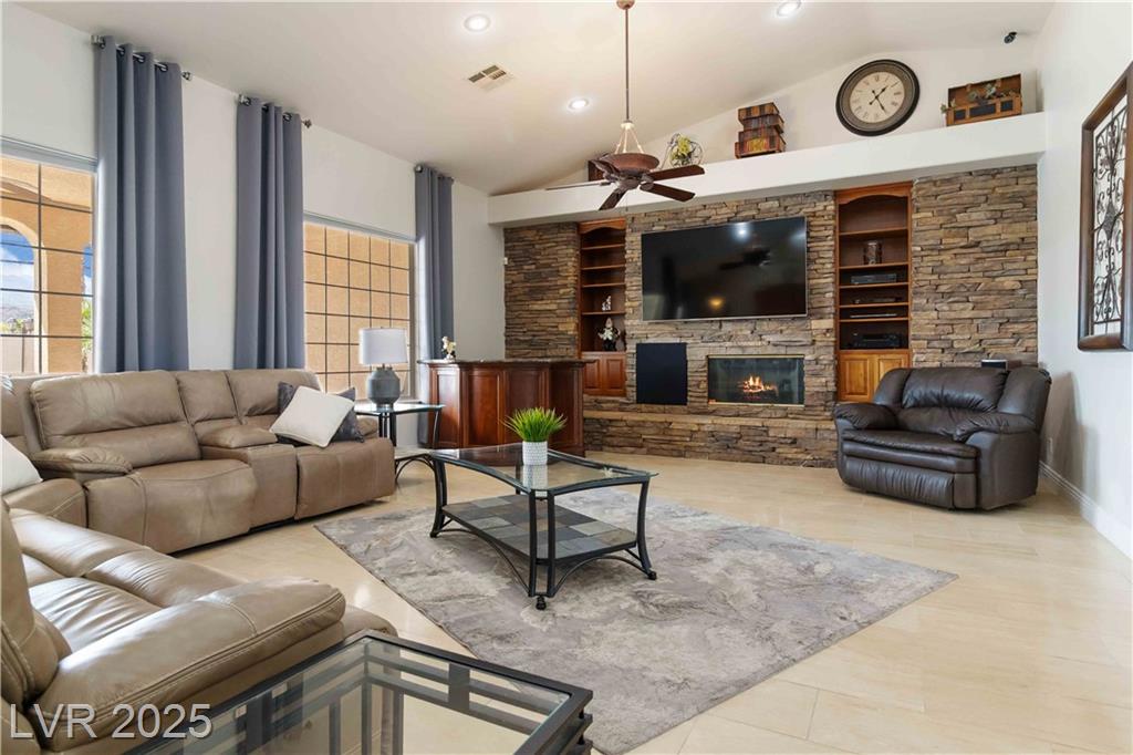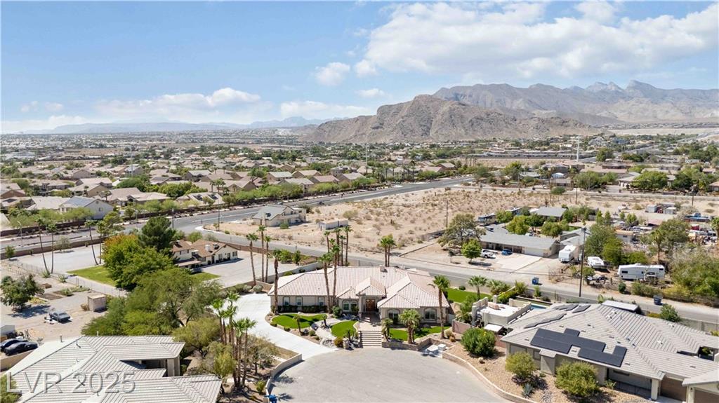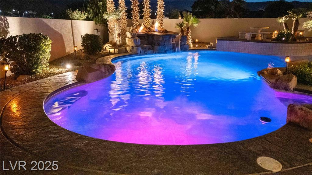 Experience impeccable luxury living in this stunning custom single-story retreat on over ½ acre in the prestigious Lone Mountain area with no HOA! A bright, open layout with soaring ceilings and travertine floors flows from the formal dining room to a spacious great room with surround sound. The chef’s kitchen dazzles with granite counters & backsplash, a center island, stainless appliances with built-in fridge & walk-in pantry. All 4 bedrooms boast en-suites, while the lavish primary suite offers a dual-sided fireplace, a spa-inspired bath with a walk-in closet and hidden storage. An oversized 3-car garage, water softener & whole-home security add convenience. Step outdoors into the resort-style backyard with sparkling pool, grotto waterfall, solar heating, above-ground spa, built-in BBQ kitchen, lush palm trees & low-maintenance turf. Perfect for entertaining or serene relaxation, this home in every aspect blends a meticulous design with a lifestyle of unparalleled refinement.