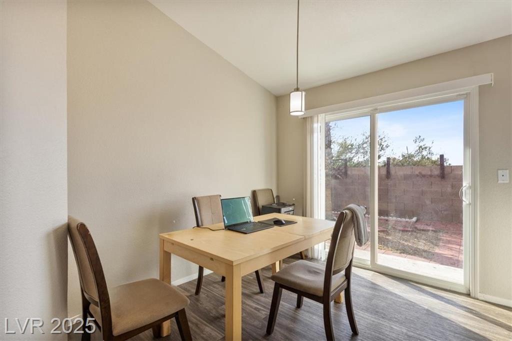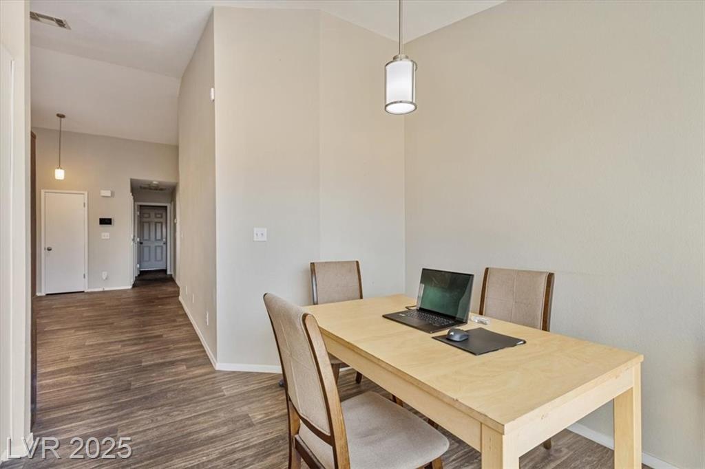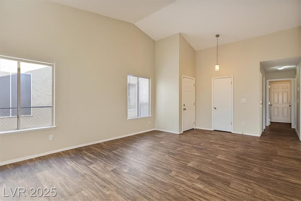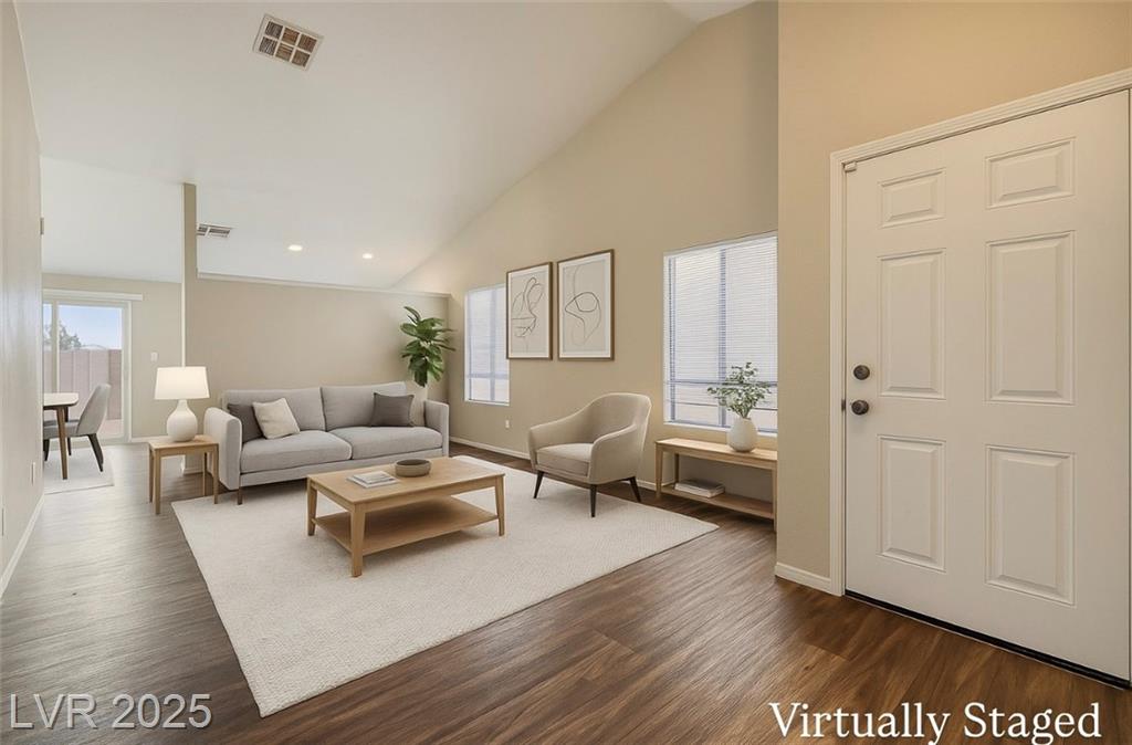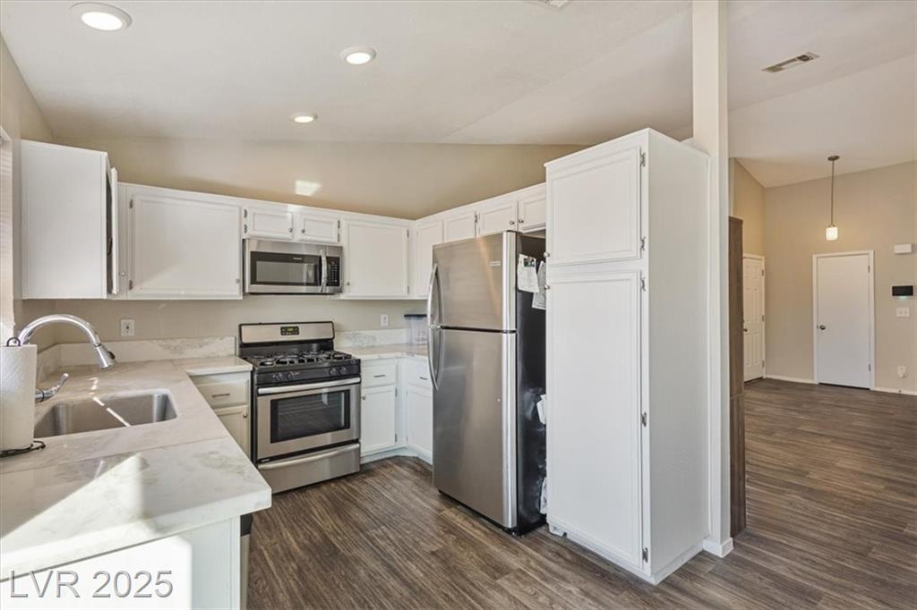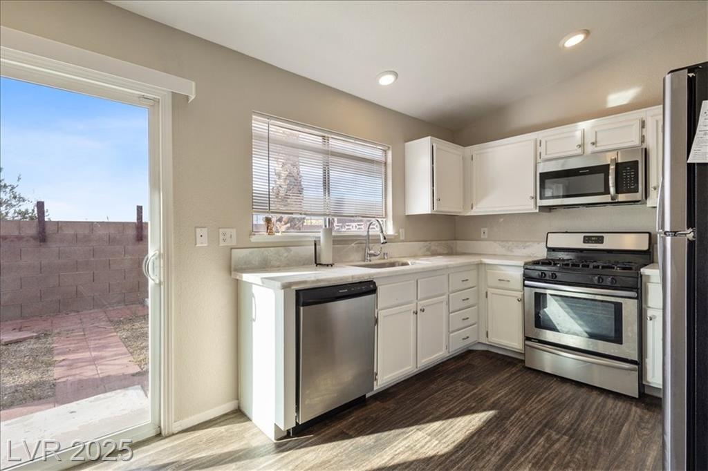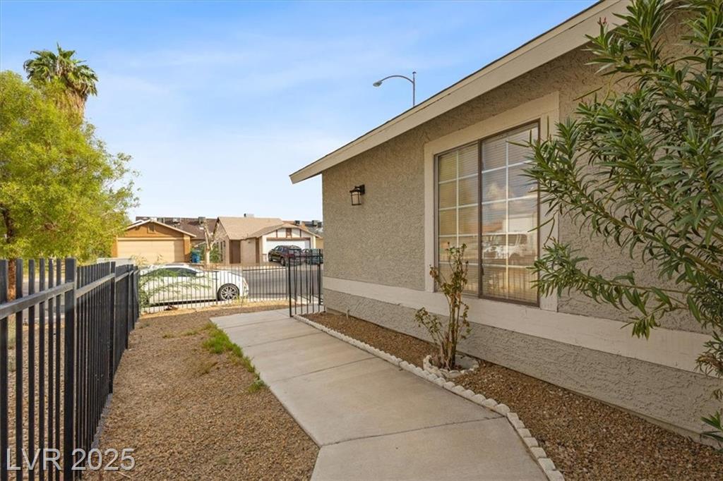 Beautifully maintained single story home with no HOA. Close to Nellis Air Force Base and the I-15. This home features 2 bedrooms and 2 full bathrooms. Backyard access from the primary bedroom with a sliding glass door that provides natural sunlight. Primary bedroom features a spacious walk in closet. Large backyard with no neighbors behind. Newer flooring and newer appliances all included!
