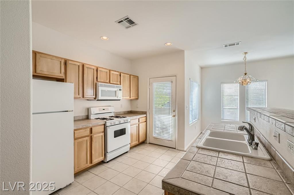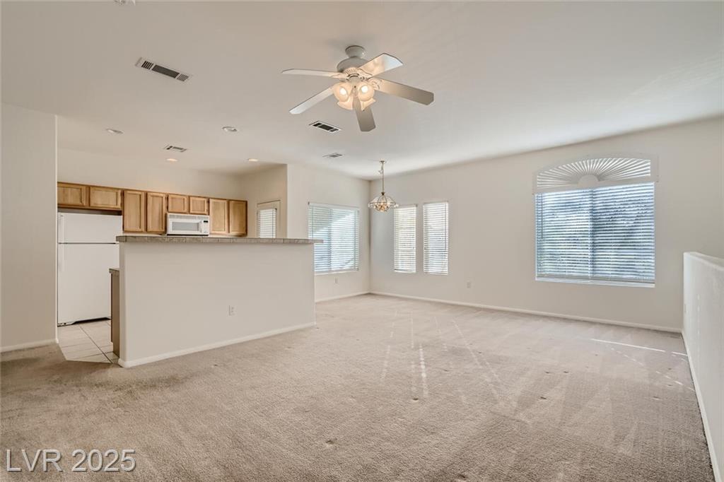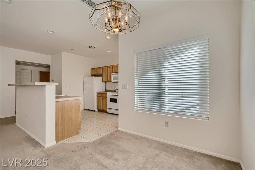 This inviting 2-bedroom, 2-bathroom home offers 1,263 square feet of comfortable living space and is available now for rent. Ideally situated in the heart of Summerlin, the property is close to shopping centers, schools, parks, and offers easy access to the 215 freeway. Inside, you'll find a spacious living area with carpeting throughout, creating a warm and cozy atmosphere. The kitchen is equipped with ample cabinet space, a refrigerator, and all major appliances, making meal prep easy and efficient. The separate laundry area includes a washer and dryer, which are both included in the rent. The primary bedroom features soft carpeting, a walk-in closet, and plenty of natural light, while the attached bathroom offers a walk-in shower and a single-sink vanity. The second bedroom also features carpeting and a standard closet, ideal for guests, family, or a home office.