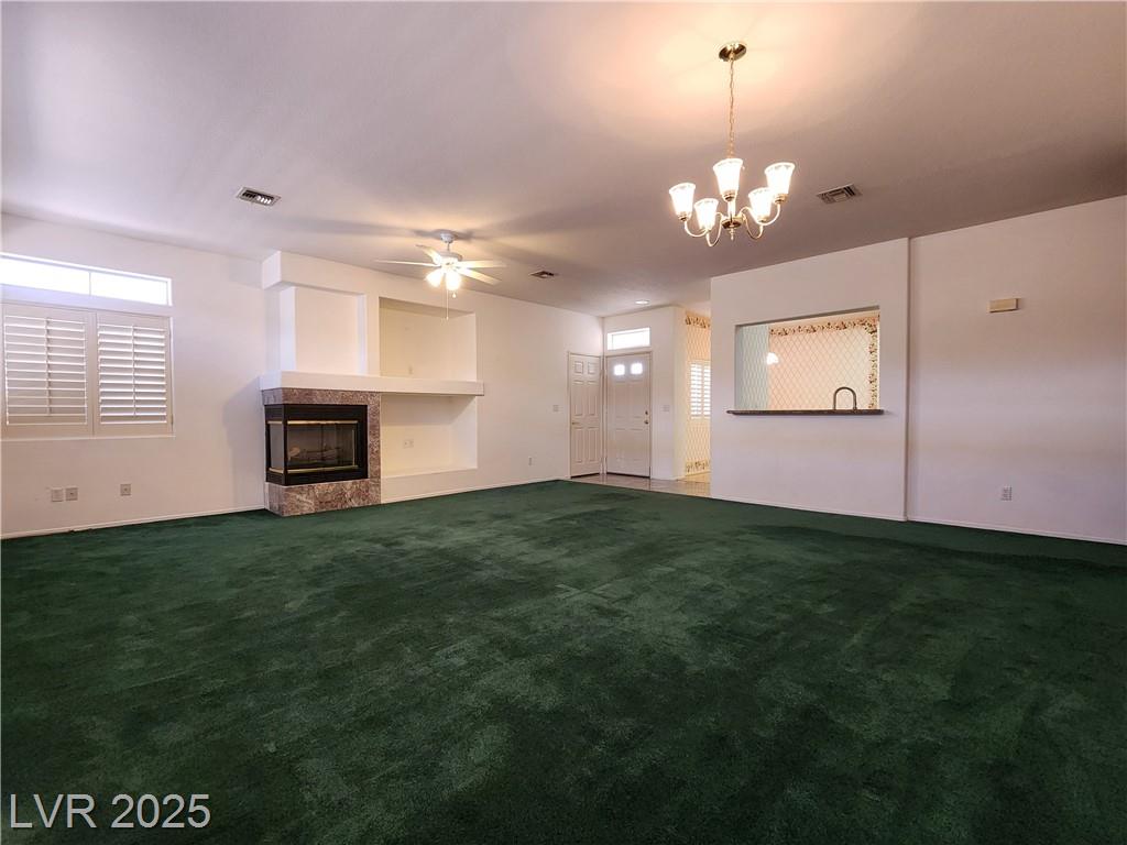 This end-unit feels more like a home with its generous square footage and thoughtful open floorplan. Inviting entry with great room that can be configured as one big living room or combined dining and living spaces. Relax by the cozy fireplace or enjoy breathtaking painted desert sunsets from the private patio. Exquisite granite counters and abundant cabinets, paired with casual dining and a breakfast bar make this kitchen an ideal space for entertaining. Spacious primary retreat with private bath with dual sinks, soaking tub, walk-in shower, dual closets and direct patio access. Custom shutters and newer A/C help with energy efficiency. Designated laundry room complete with washer, dryer, and utility sink. Located in Quail Ridge, a private gated community with heated pool, spa, putting green, and RV/boat parking. Close to public transportation and just minutes from the fun and excitement of Laughlin's casinos and dining options, off-road and hiking adventures, and the Colorado River.