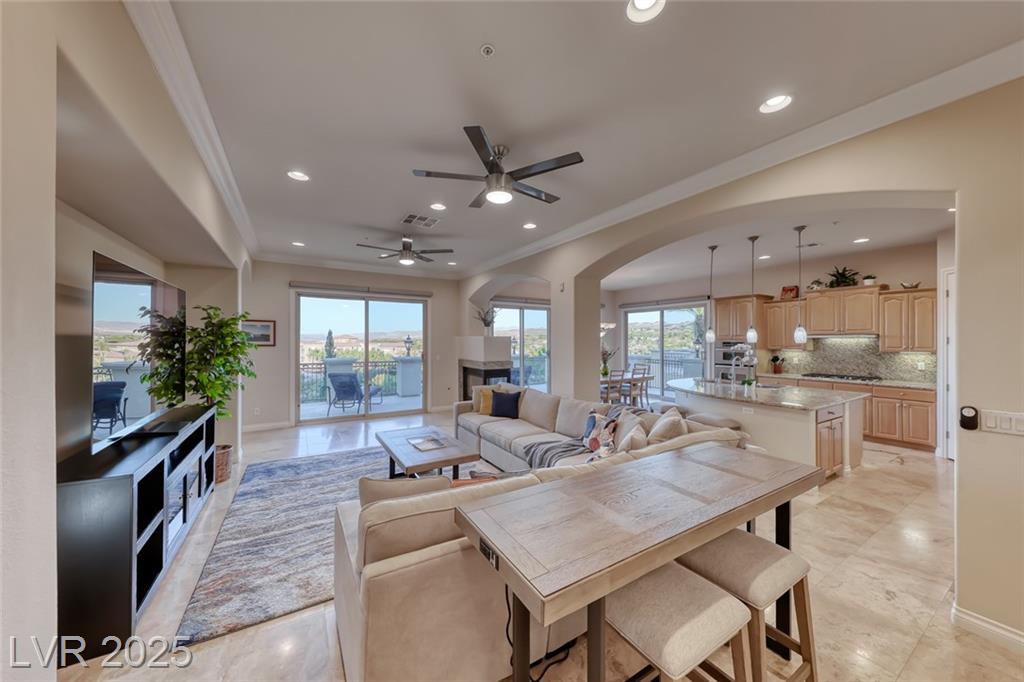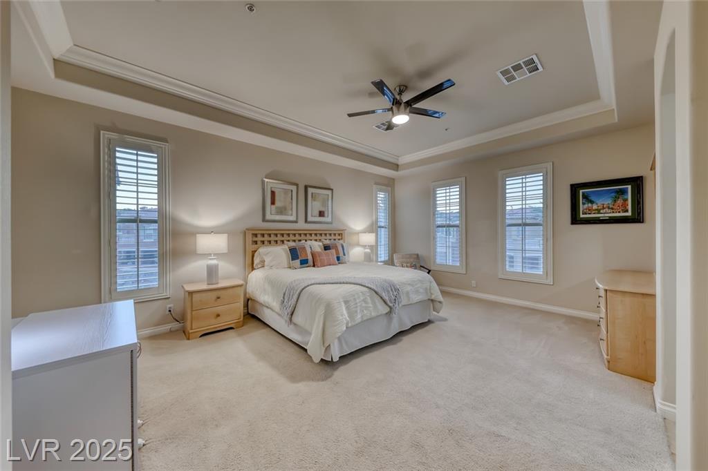 Welcome to Lake Las Vegas and the gated Tramonto Condos! Experience luxury living in this stunning 4-bedroom, 4.5-bath penthouse condo with breathtaking views of Lake Las Vegas, surrounding mountains, and the golf course. The chef’s kitchen features stainless steel appliances, while the spacious great room with fireplace creates the perfect setting for entertaining. Each bedroom offers a walk-in closet and ensuite bath, with three bedrooms opening to balconies. Upgrades include new shutters, power shades, and a new water heater. A 2-car garage adds convenience. Nestled in the award-winning Lake Las Vegas master-planned community, residents enjoy a 320-acre private lake with water sports, fine dining, outdoor concerts, and endless recreation. Voted the best master-planned community in Las Vegas, Lake Las Vegas is truly one of the most beautiful settings in the Valley.
