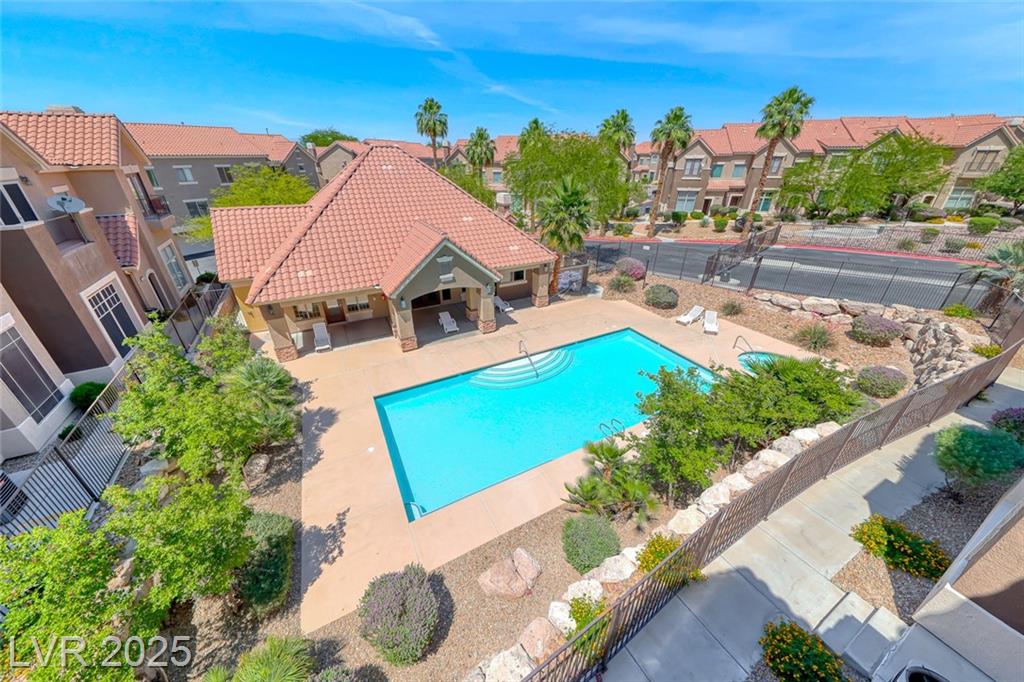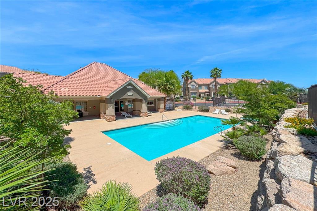 Excellent Green Valley location close to the Las Vegas Strip, airport, schools, and shops. This end-unit tri-level townhouse features two main suites, a large loft that can be used as an office or a den. Brand new paint and all granite countertops. Stainless steel appliances! Move-in ready! High ceilings in the living area, which is open to the loft above, greet you as soon as you walk inside the house. Enjoy unhindered views of the mountains from two distinct terraces off the kitchen and main bedroom! The gate, pool, clubhouse, water and sewer, roof, stucco, and exterior paint are all included in the HOA dues.