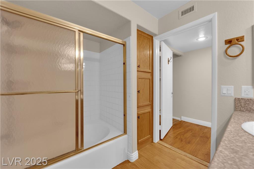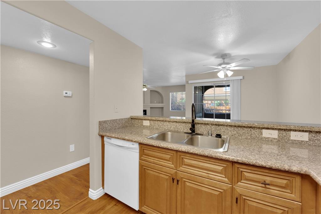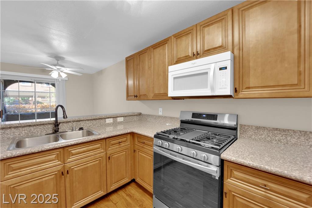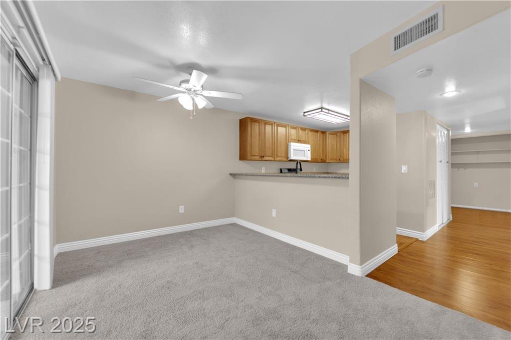 This charming condo is a must-see! It offers 2 bedrooms and plenty of parking right by the unit. Inside, you'll find beautiful wood floors and new carpets. The kitchen boasts granite countertops and a handy pantry. Enjoy cozy nights by the fireplace in the living area or relax on the private patio. The condo is nestled in a gated community with access to a swimming pool and is conveniently located just minutes from the Las Vegas Strip, interstates, schools, shopping, and dining. With such a fantastic combination of features, this one won't last long in this hot market!