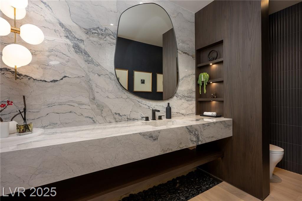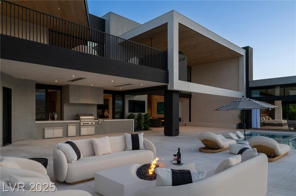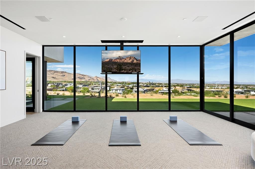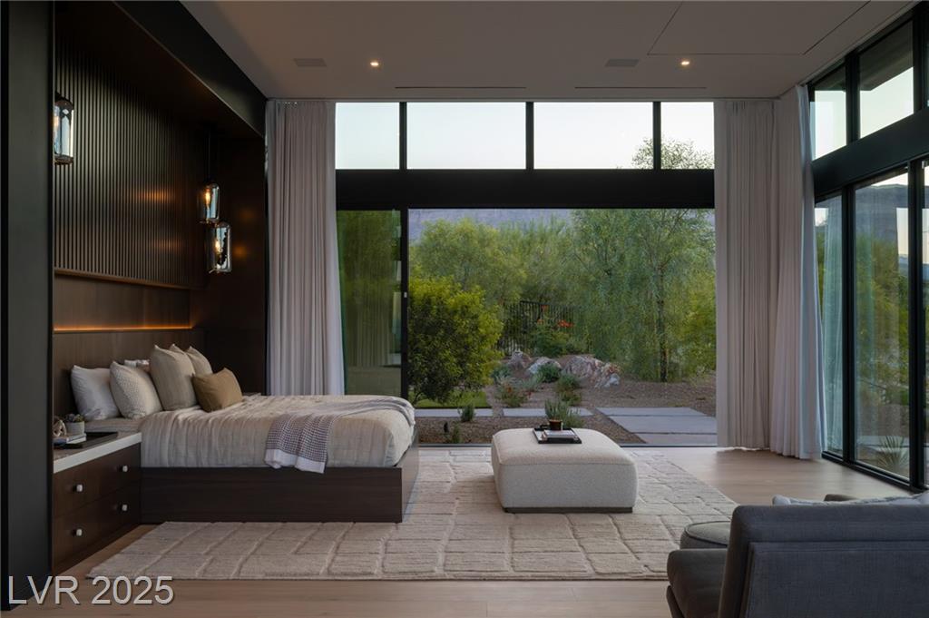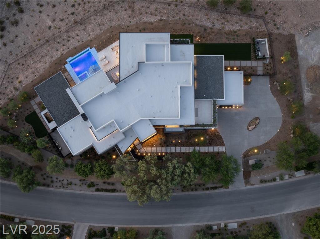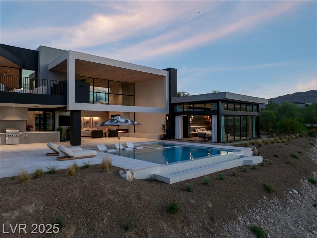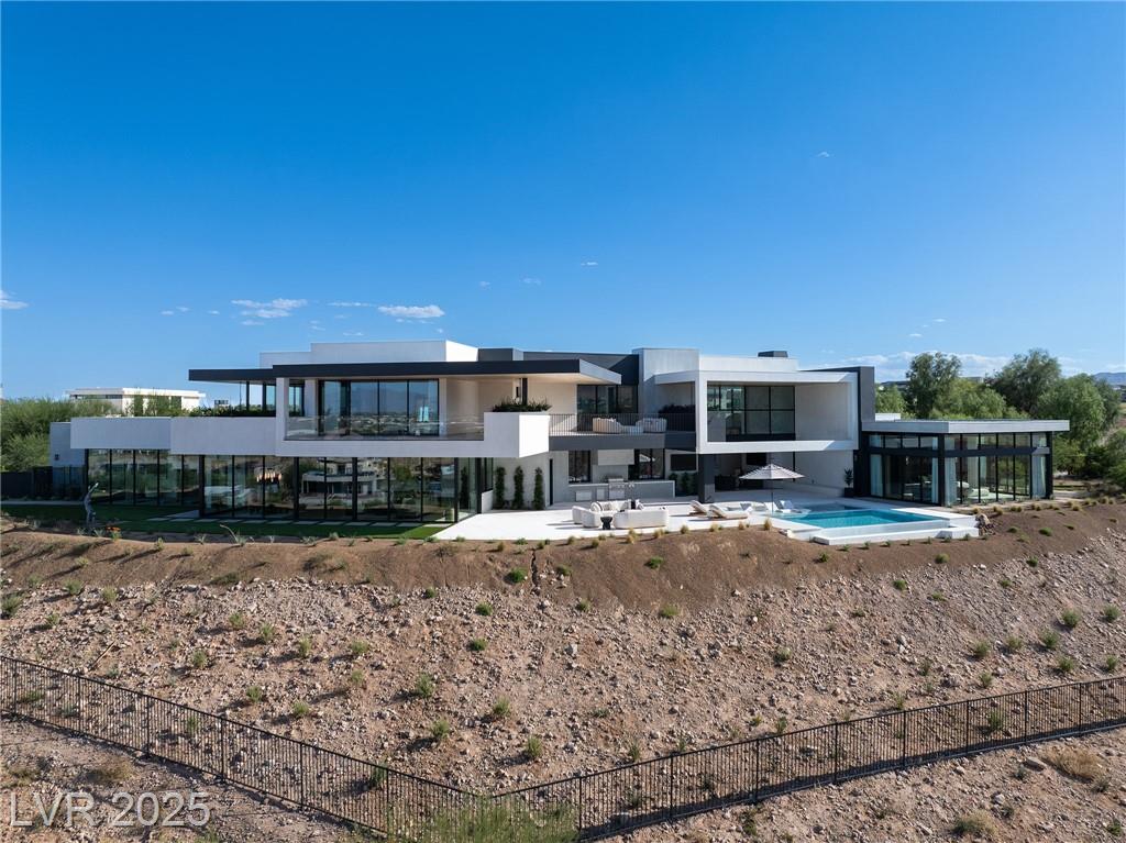 An architectural masterpiece within the prestigious guard gates of The Summit Club in Summerlin, this custom estate designed by Tilt 23 Studios and developed by Jewel Homes defines modern luxury at its finest. Encompassing 11,126 square feet of interior perfection on 1.35 acres, the residence offers 6 bedrooms, 9 baths, and a seamless blend of design and technology. Highlights include a state-of-the-art movie theater, Full Swing golf simulator, expansive wellness suite with fitness room and infrared sauna, glass-enclosed wine display, and Crestron home automation. A side-loading 4-car garage, circular driveway, and drop-down TVs that preserve panoramic views further elevate the lifestyle. Beyond the home, The Summit Club spans 500+ acres of desert beauty with a golf course Crafted by world-renowned golf architect Tom Fazio, world-class dining, a private clubhouse, 24-hour security, and unrivaled amenities. Minutes from top-rated schools, Downtown Summerlin, and the Las Vegas Strip.