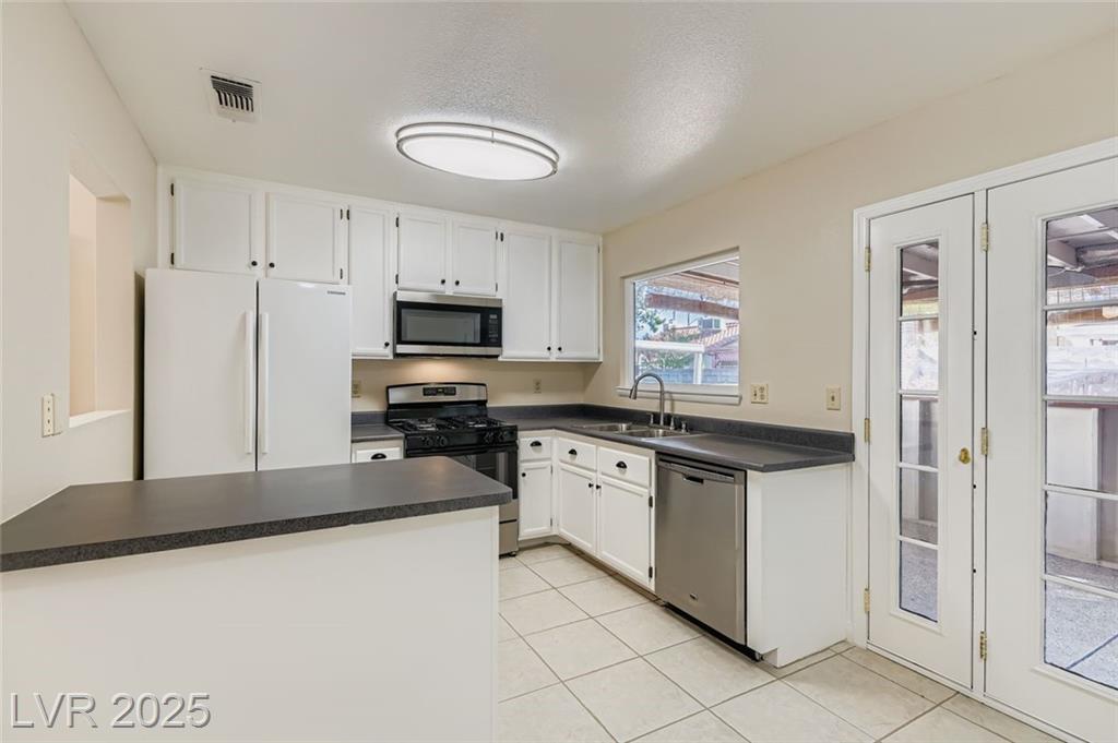 Fantastic price—just reduced to $349,490! Charming single-story 2 bed, 2 bath home in the heart of Las Vegas (89107) offering comfort, convenience, and value. Features an open living and dining area with cozy gas fireplace, bright kitchen with breakfast nook, and spacious bedrooms. Primary suite includes walk-in closet and adjoining bath. Enjoy low-maintenance desert landscaping, fenced backyard, and covered patio perfect for entertaining. All appliances, patio TV, surround sound, and camera system stay with the home! One-car garage with epoxy flooring and no HOA. Prime location near shopping, dining, and freeway access. Inquire about the 2-1 Interest Rate Buydown Incentive—limited-time offer!