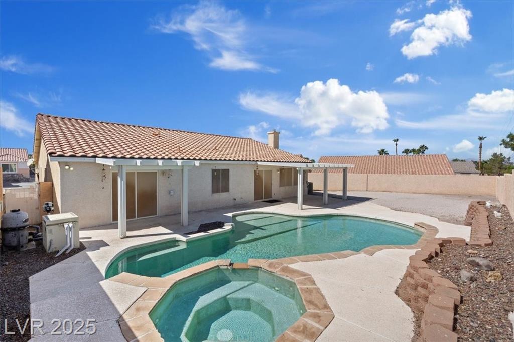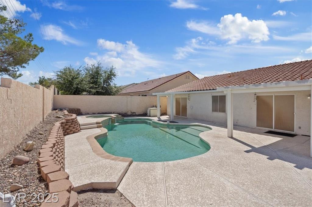 Beautiful single story home featuring 4 bedrooms, 2 bathrooms, and a 2 car garage. The lovely kitchen offers granite countertops, stainless steel appliances, and a peninsula with breakfast bar seating. Enjoy a cozy family room with a fireplace plus a separate living room at the front of the home. The spacious primary suite includes backyard access and an ensuite bathroom with double sinks, a separate shower, and a soaking tub. The oversized backyard is perfect for entertaining, complete with a covered patio, sparkling pool, and relaxing spa.