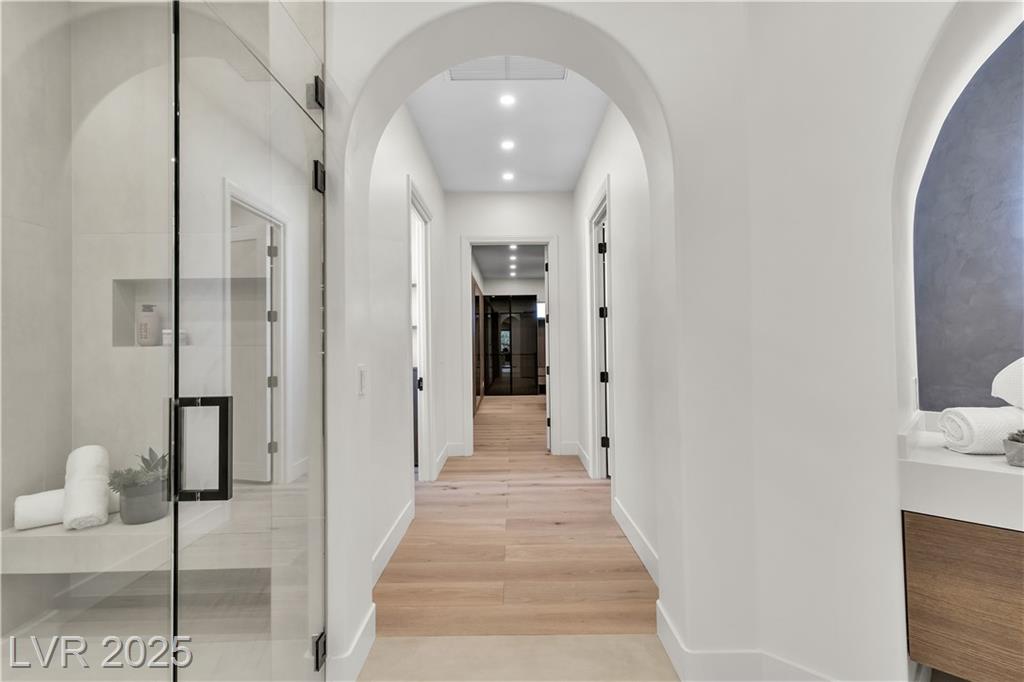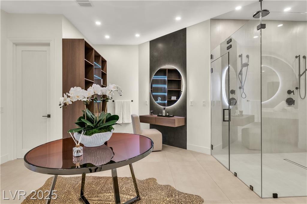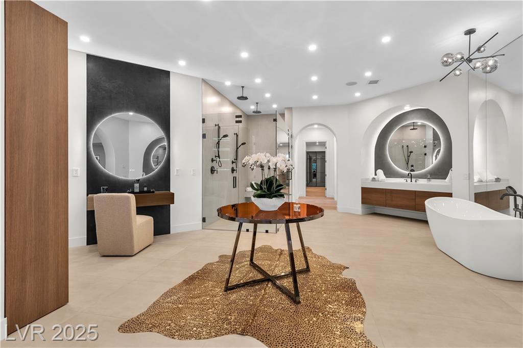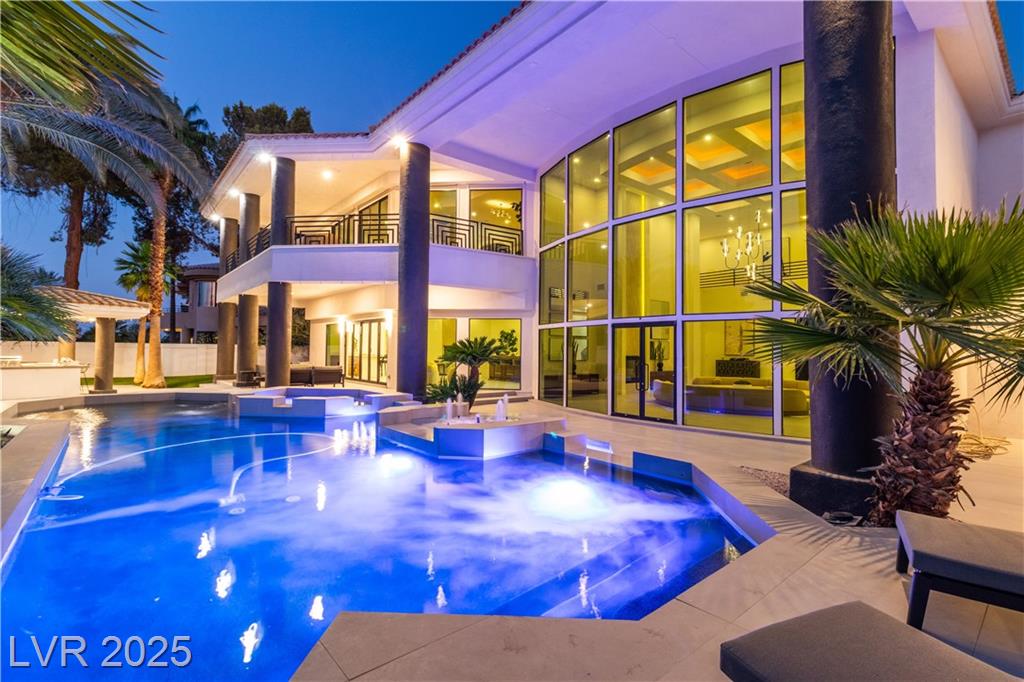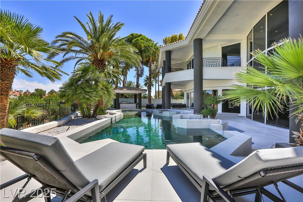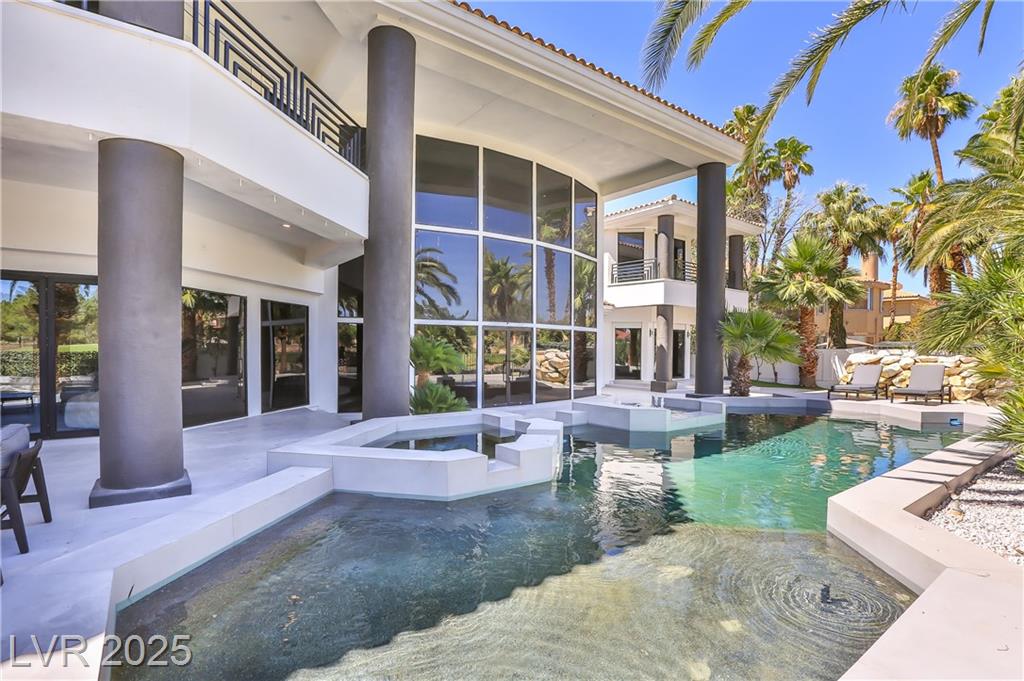 WELCOME TO THIS NEARLY 12,000sqft CUSTOM HOME WITHIN THE GUARD GATED SPANISH TRAILS COUNTRY CLUB with beautiful golf course views, luxury finishes and custom features throughout. Every detail exudes luxury with soaring ceilings that elevate the home’s grandeur, while the expansive great room and resort-style pool and spa offer the ultimate indoor-outdoor living. The stunning kitchen showcases brand new white oak hardwood floors, imported Spanish porcelain tile, Taj Mahal Quartzite and Caesar Stone countertops, Wolf and Sub Zero appliances and custom cabinetry from Italy. the primary bedroom is fully equipped with sweeping views of the golf course, designer custom bathroom and his and her closets with Miele washer and dryer. This home exemplifies elegance, comfort, and modern design with breathtaking finishes and undeniable curb appeal. Set on a private lot within a world-class golf community and Innisbrook Estates, this is a rare opportunity to own a true Las Vegas showpiece.