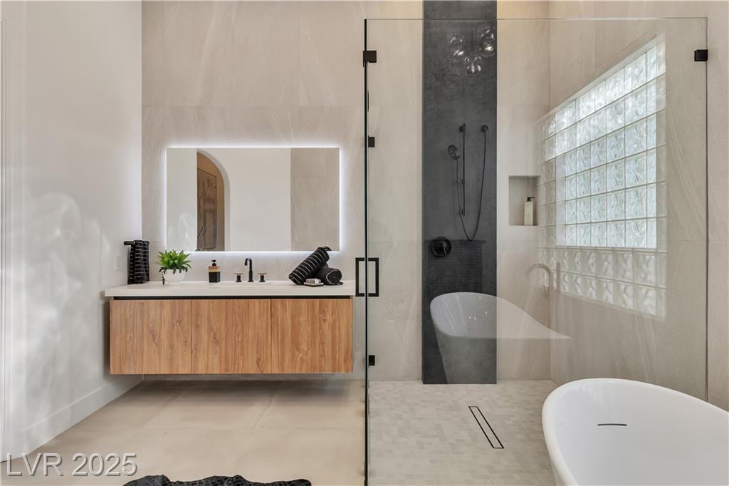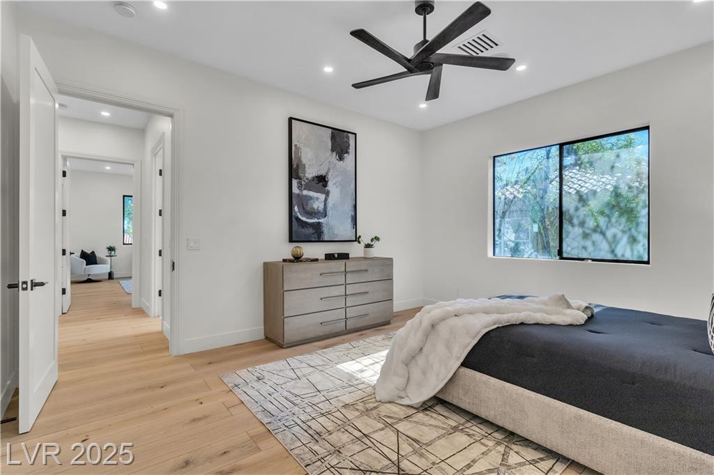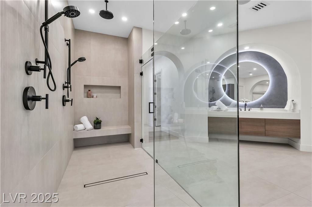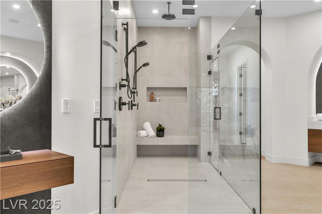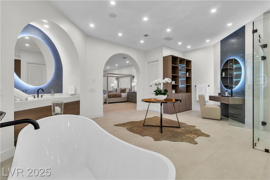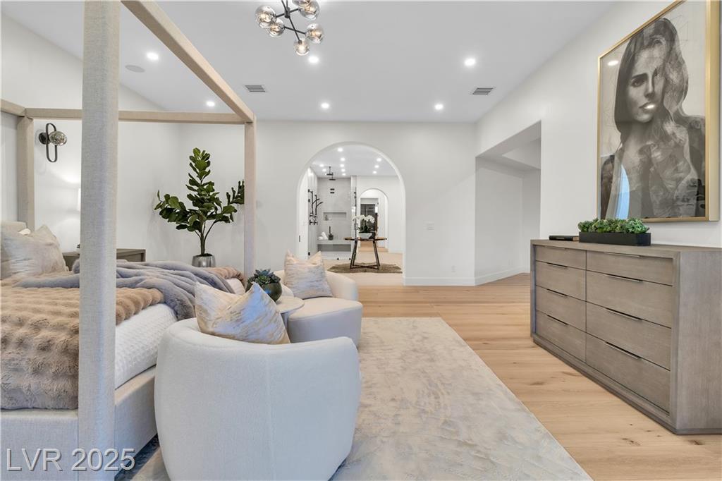 WELCOME TO THIS NEARLY 12,000sqft CUSTOM HOME WITHIN THE GUARD GATED SPANISH TRAILS COUNTRY CLUB with beautiful golf course views, luxury finishes and custom features throughout. Every detail exudes luxury with soaring ceilings that elevate the home’s grandeur, while the expansive great room and resort-style pool and spa offer the ultimate indoor-outdoor living. The stunning kitchen showcases brand new white oak hardwood floors, imported Spanish porcelain tile, Taj Mahal Quartzite and Caesar Stone countertops, Wolf and Sub Zero appliances and custom cabinetry from Italy. the primary bedroom is fully equipped with sweeping views of the golf course, designer custom bathroom and his and her closets with Miele washer and dryer. This home exemplifies elegance, comfort, and modern design with breathtaking finishes and undeniable curb appeal. Set on a private lot within a world-class golf community and Innisbrook Estates, this is a rare opportunity to own a true Las Vegas showpiece.