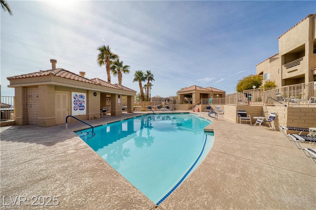 “Chance Opportunity” to own a condominium at the Colorado Bay Club in Laughlin Nevada, a gated community. And priced so that you can make it your own. This second story offers quiet times relaxing on those cold winter nights in front of its wood-burning fireplace, no neighbors above you. Includes kitchen appliances, stackable washer, and dryer. 2 bedrooms, 2 bathrooms with a balcony off the living room, the primary bedroom has its own separate balcony. Boat or RV parking up to 26’. The community pool is heated all year, spa, pool area has several cabanas (what more could you want?). And, if you ever want to venture out of this oasis, you could wonder down to the Laughlin Casinos, their restaurants, or the Colorado River for fun in the sun, and it is only a hop, skip and a jump away. HOA covers MGMT, trash, water, exterior maintenance. Not age restricted. Two pets under 35 pounds are welcome. You may use as a rental if its longer than 30 days.