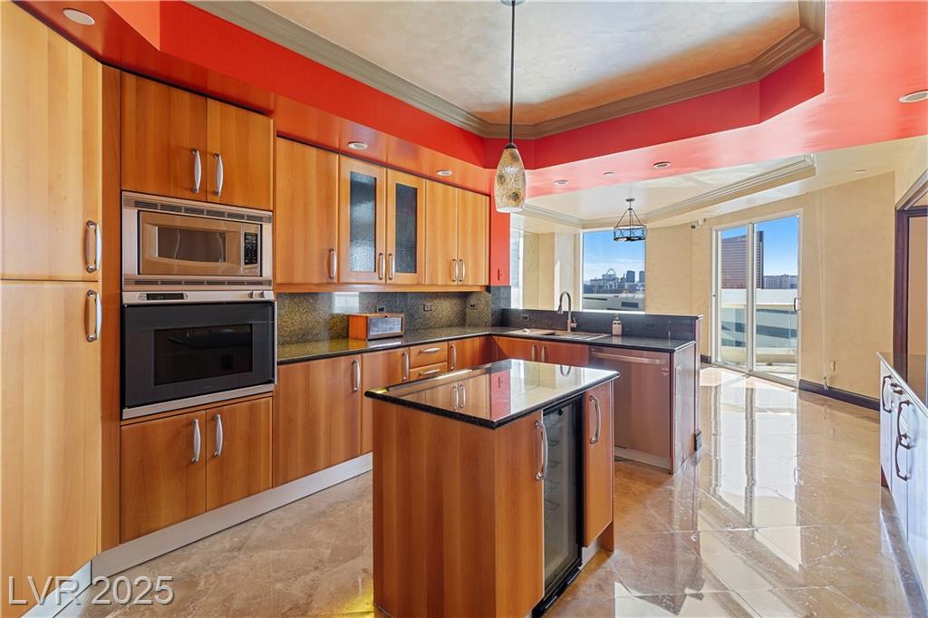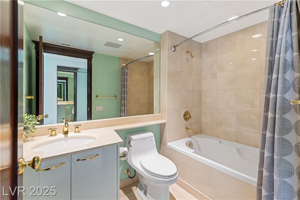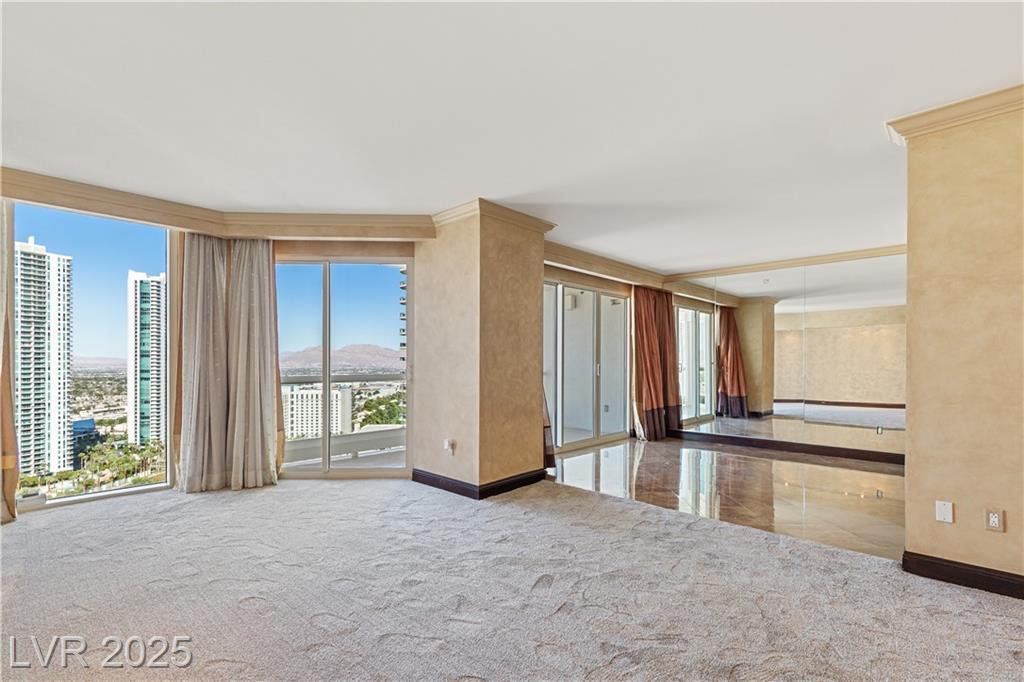 Welcome to Turnberry Towers, where sophistication meets convenience in the heart of Las Vegas. This expansive high-rise residence isn’t just a condo — it’s a lifestyle. Step from your private elevator lobby into a grand entry foyer that sets the tone for the home’s elegance and privacy. Inside, a bright and open great room flows effortlessly, designed for both relaxing and entertaining. Remote-controlled shades, newly polished floors and more exude pure elegance. The primary suite is exceptionally large — expanded to create a true retreat — with two walk-in closets, a spa-like bathroom with soaking tub, separate shower, bidet, and dual vanities. The second bedroom offers its own ensuite bath, perfect for guests or family. Enjoy Sweeping strip views from the Great Room and Mountain views from the bedrooms. Turnberry Place offers tons of lifestyle amenities including concierge services, free limo, valet parking and more. Primary BR can be converted back to 3 Bedroom config.