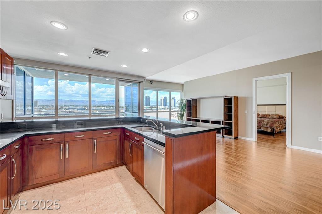 In Demand Open Floor Plan with Huge Mountain Views! Prime 2 bedroom, 2 bath residence at Panorama Towers featuring an expansive living area, powered blinds and spacious kitchen with ample cabinetry & wrap-around breakfast bar, ideal for entertaining. Stainless steel GE appliances with built-in oven & cooktop. Large primary suite offers dual walk-in closets, generous bath with dual vanities, soaking tub & separate shower. Stunning west-facing mountain views from living room, kitchen, primary bedroom & balcony. Panorama Towers delivers resort-style amenities in a premier location, directly across from CityCenter and just west of the Las Vegas Strip. Outstanding proximity to the city’s top venues: within 1 mile of Allegiant Stadium & T-Mobile Arena, minutes to the future MLB Stadium site at Tropicana & Las Vegas Blvd, and under 10 minutes to Harry Reid International Airport. Experience the ultimate Las Vegas lifestyle in one of the city’s most sought-after high-rise communities-Must See!!