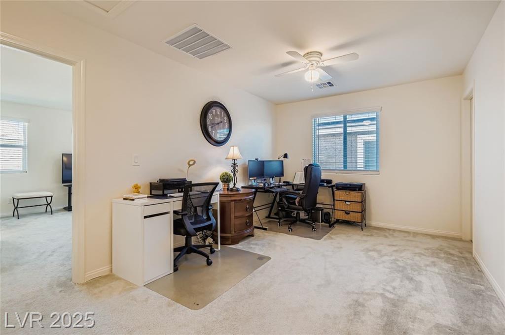 Seller offering interest rate BUYDOWN! Welcome home to modern comfort and style in the heart of southwest Las Vegas. This 2019-built Richmond American Dogwood floorplan offers 2,037 sq ft, 3 bedrooms + loft (flex space for office or play), and 2.5 baths—designed for today’s lifestyle. The open-concept main level features a sleek kitchen with granite counters, stainless appliances, and an oversized island flowing into the family room and dining area. Upstairs, the loft bridges privacy between the bedrooms—perfect for study, media, or lounge. The low-maintenance yard and attached two-car garage round out the package. Situated in a growing, desirable neighborhood with access to shopping, commutes, and schools, this home blends value and sophistication. Don’t miss your chance to own one of the few modern, move-in ready homes offering this layout in 89113!