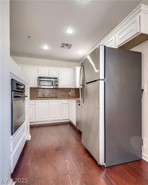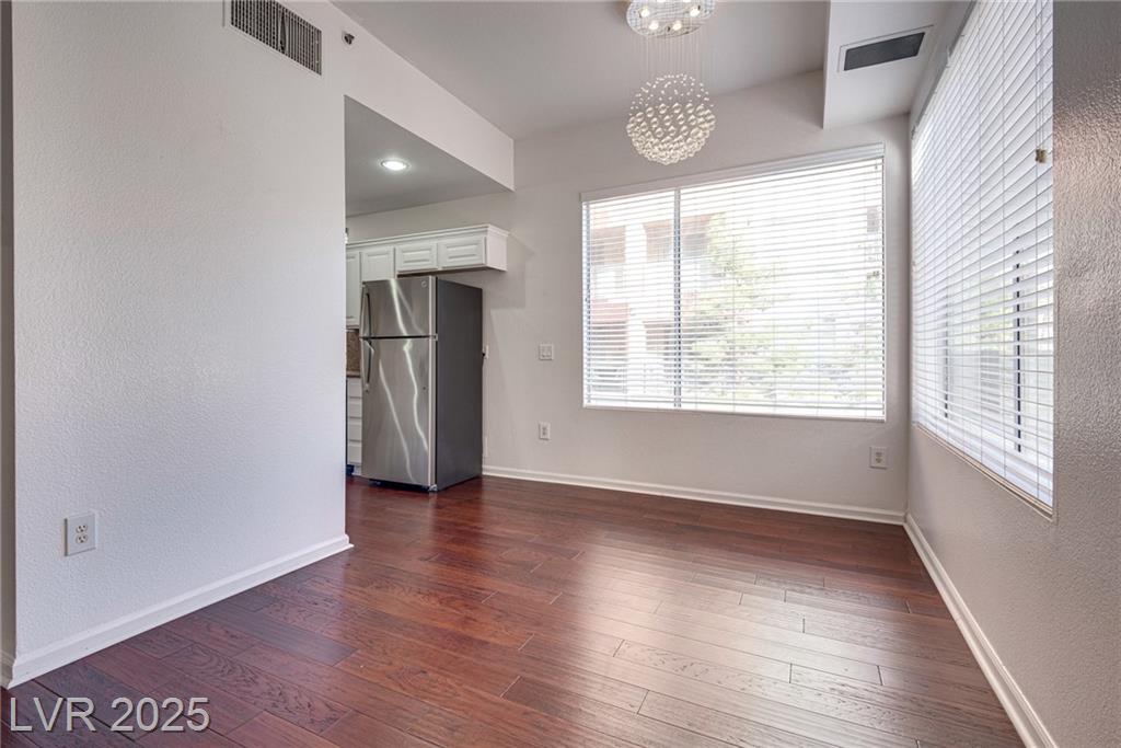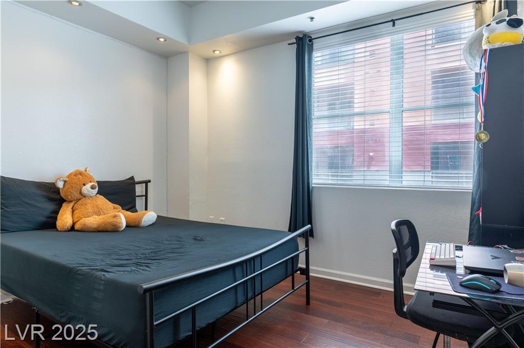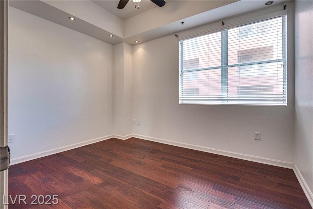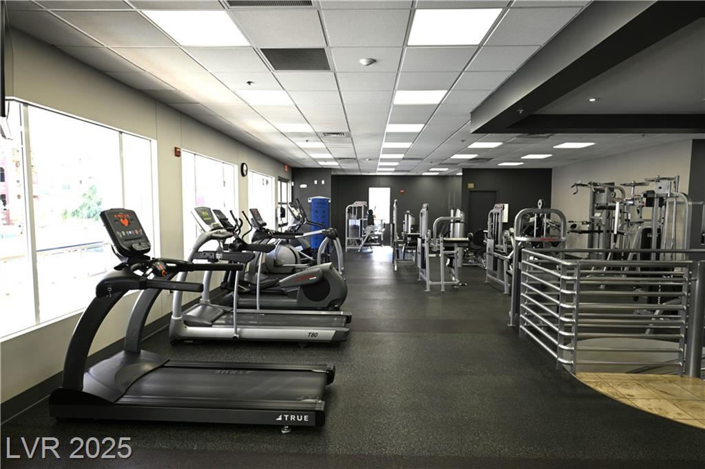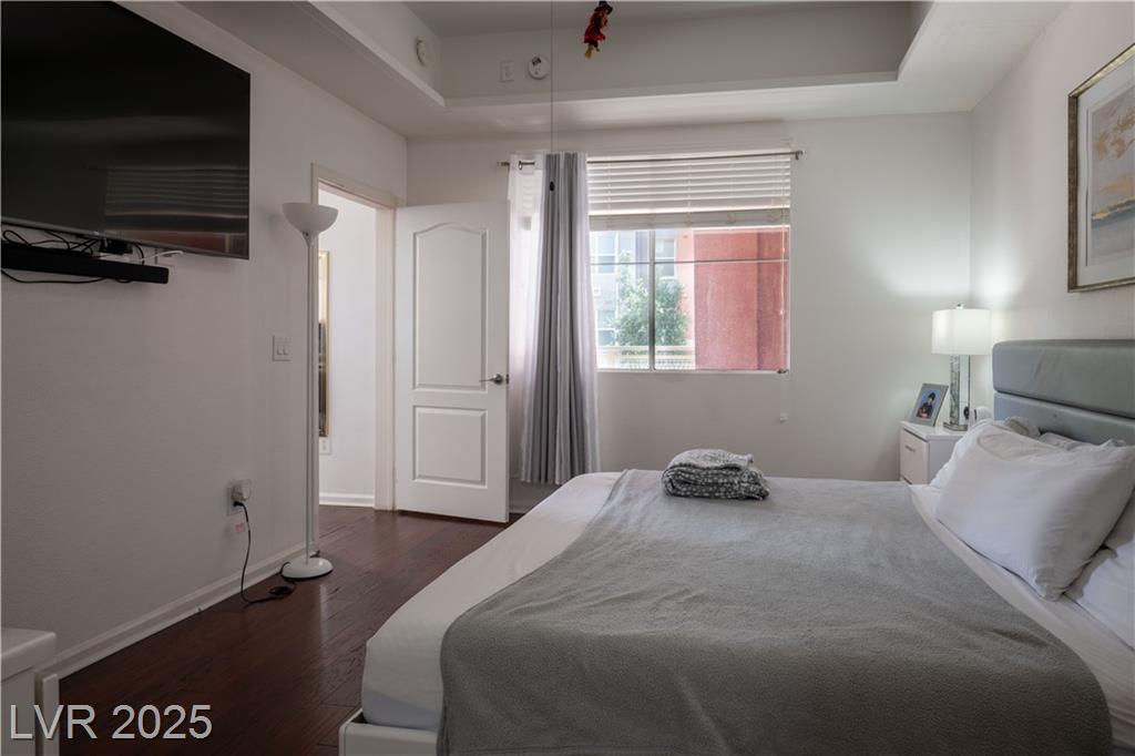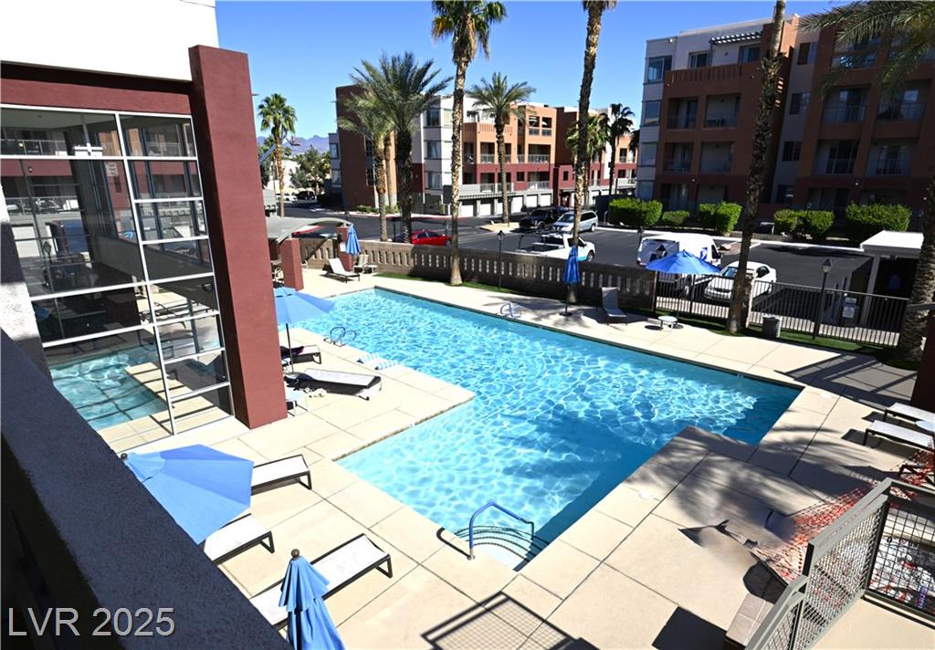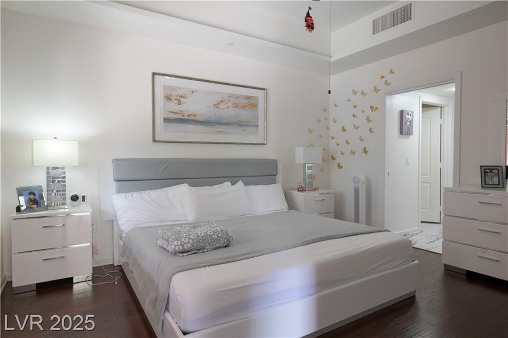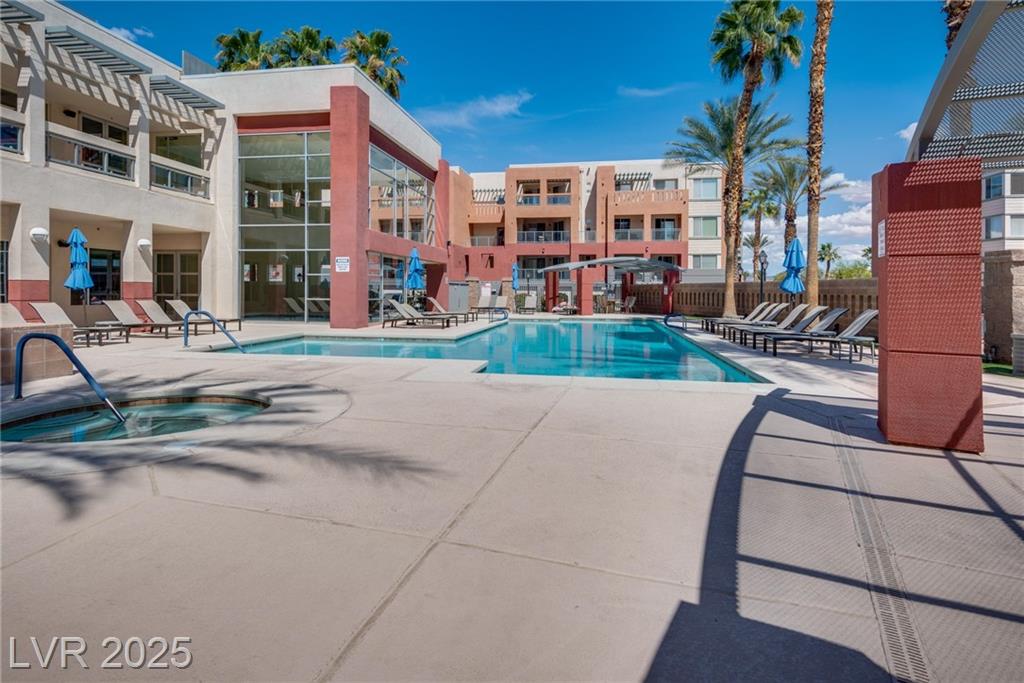 Stylish condo in Las Vegas! This beautifully maintained unit offers comfort and convenience in a guard-gated community with secure underground parking and elevator access. Spacious open layout with modern finishes, granite counters, and a huge private balcony. Primary bedroom separate from 2nd bedroom for added privacy. No through traffic as building is located in the far edge of the community. Enjoy resort-style amenities including a pool, fitness center, clubhouse and more. Just minutes from the Strip, dining, shopping, and freeway access. Need another perk? HOA pays for water & sewer.