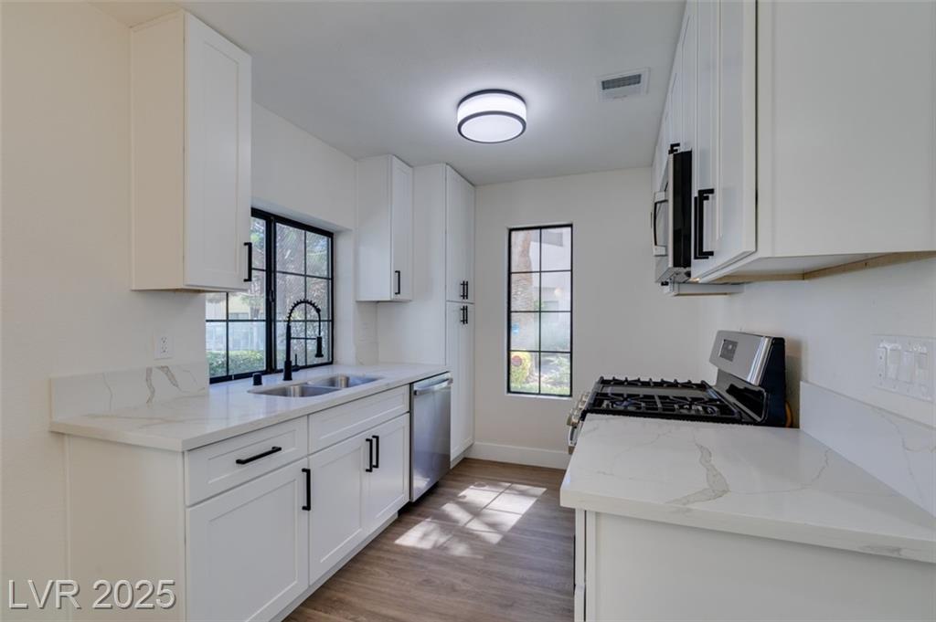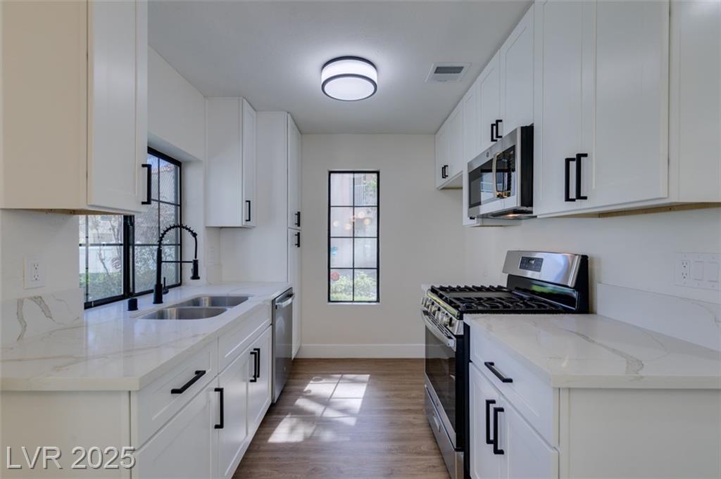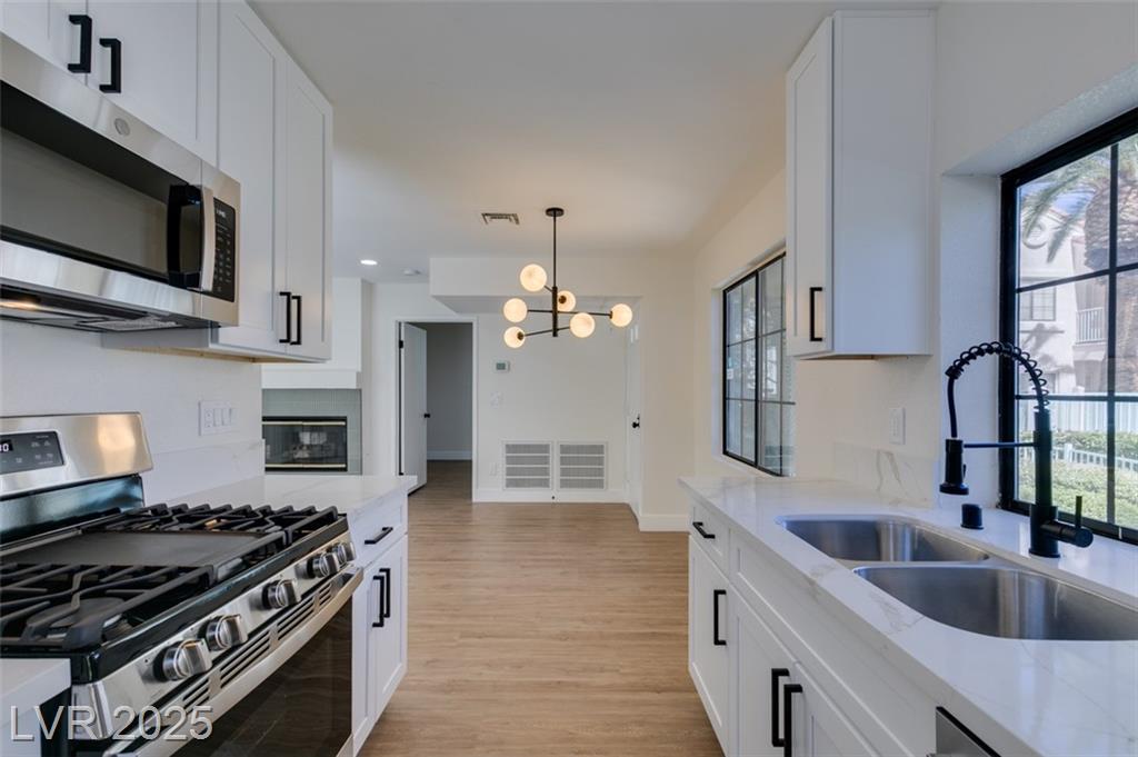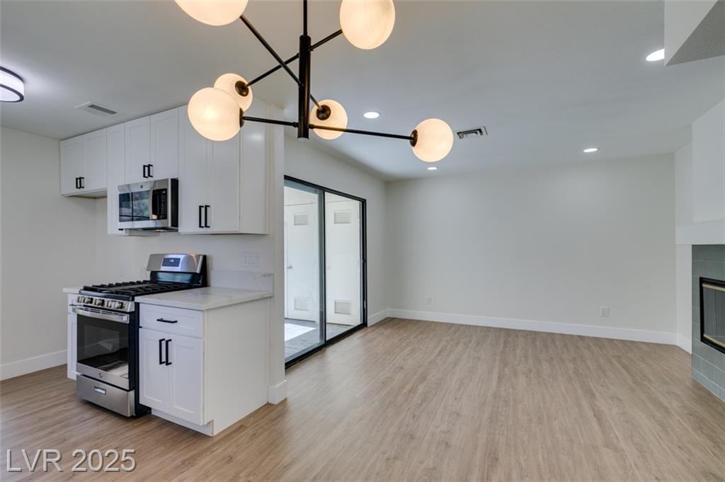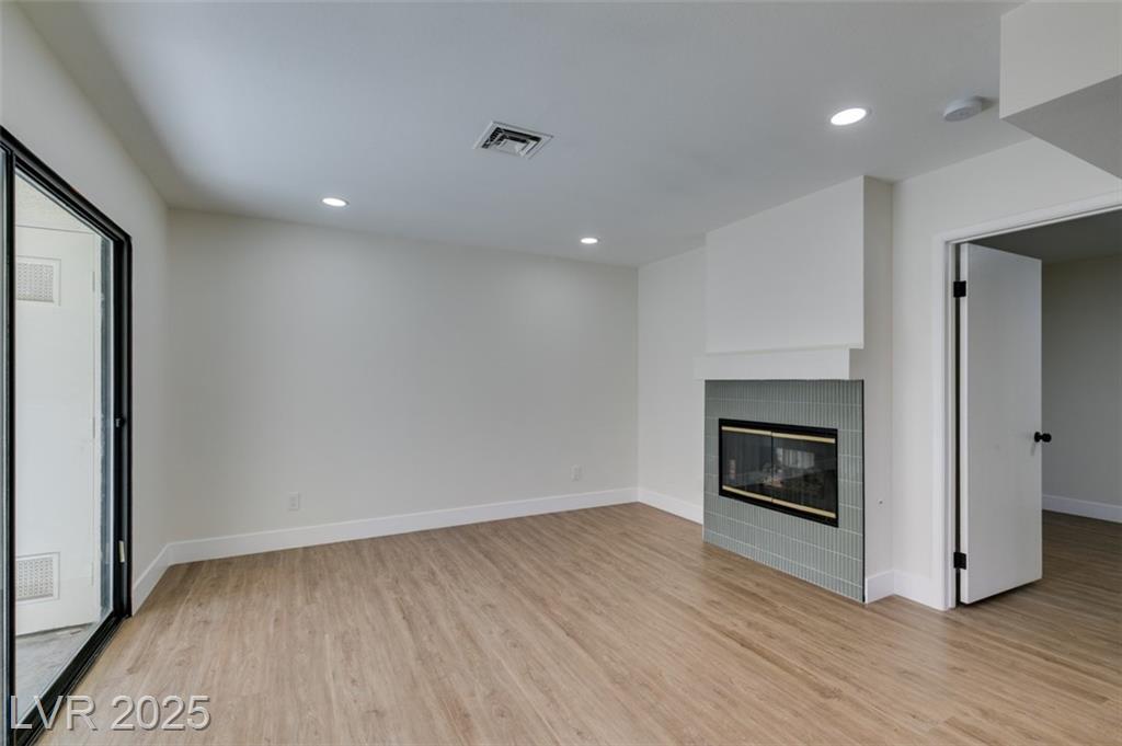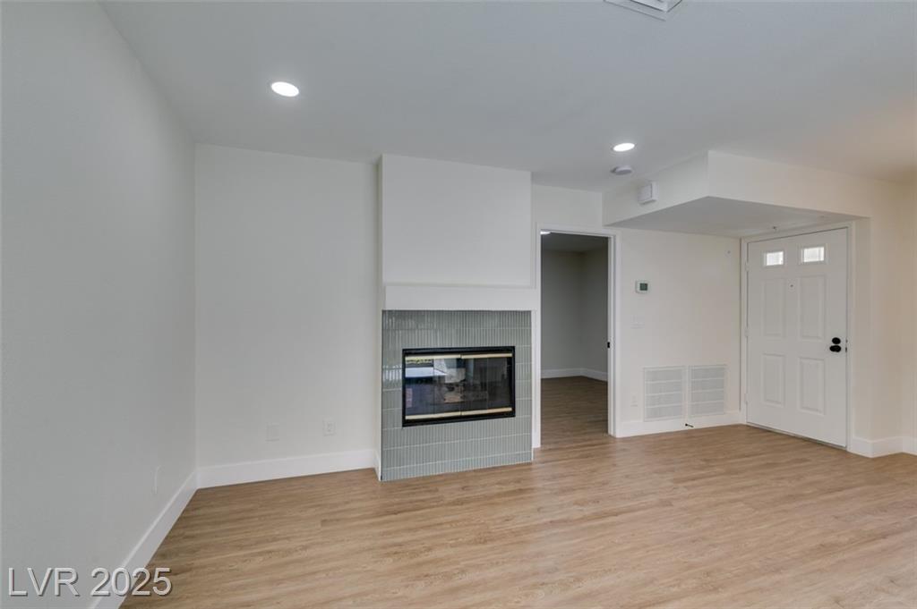 Stunning fully renovated condo transformed into a brand new masterpiece featuring luxurious vinyl tile flooring throughout, fresh paint, elegant 5-inch raised baseboards, and a breathtaking tiled gas fireplace with recessed lighting, a completely redesigned kitchen boasting new cabinetry, striking quartz countertops with gold veining, new stainless steel appliances, a modern sink, sleek faucet, and updated light fixtures, plus a pristine bathroom with a new vanity, quartz countertop, stylish mirror, contemporary light fixture, and new plumbing fixtures—move-in ready and a must-see before it’s gone!