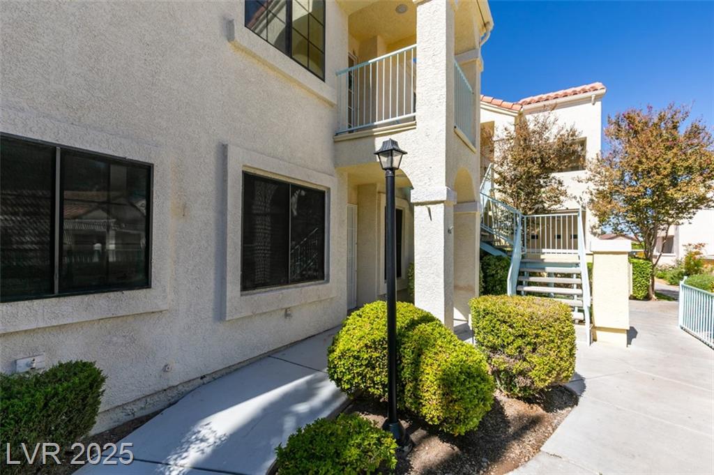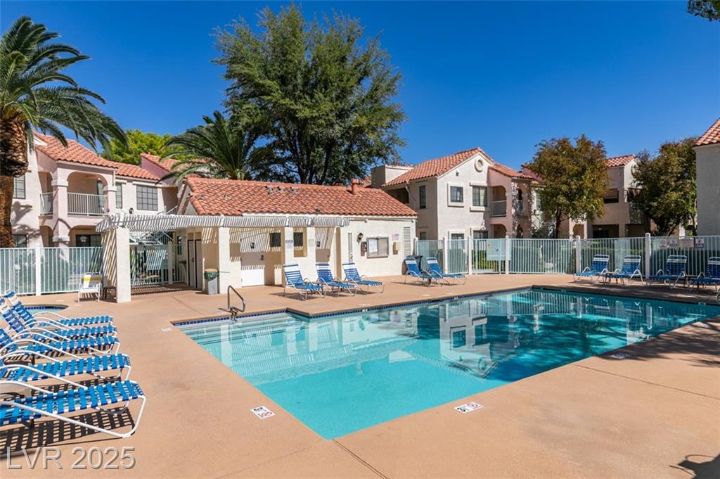 West of Jones or East of Rainbow on Tropicana. North into the entry gate area for Los Verdes Condominium take the northern gate to the property building 4855. Unit is right next to the pool.