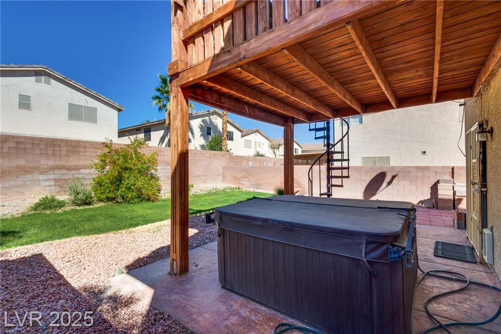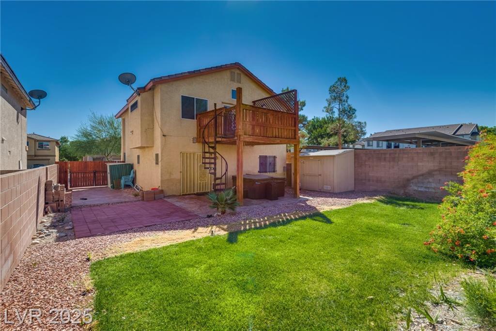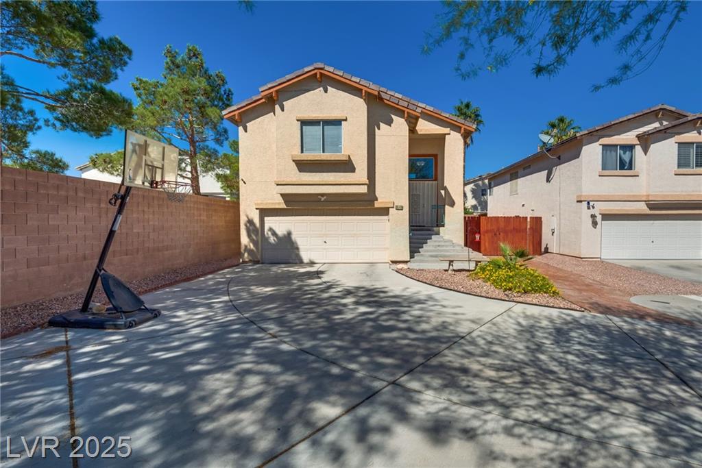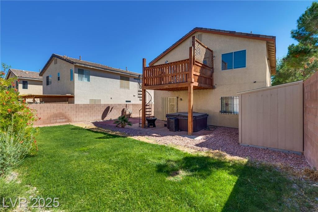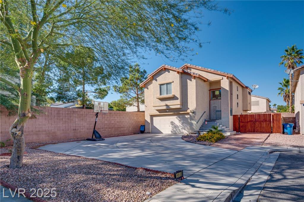 Welcome to this inviting split-level corner home offering 1,658 sq ft of versatile living space, Best part no HOA! The expansive driveway provides plenty of parking, large backyard features mature landscaping and an above-ground spa is perfect for relaxing. A unique highlight is the upstairs balcony, with a spiral staircase leading down to the yard for easy indoor-outdoor living. The upper level features an open layout with a spacious living room that opens to the kitchen, where SS appliances, granite-look counters, and abundant cabinetry create a warm and functional space. The primary suite and a secondary bedroom, ideal as a guest room or office. Downstairs offers incredible flexibility as a private retreat, with a second living room, full bath, and an additional bedroom—perfect for multigenerational living. Home is equip with solar. With its thoughtful floor plan, oversized lot, and prime location close to Summerlin’s amenities, this home combines comfort, convenience, and charm.