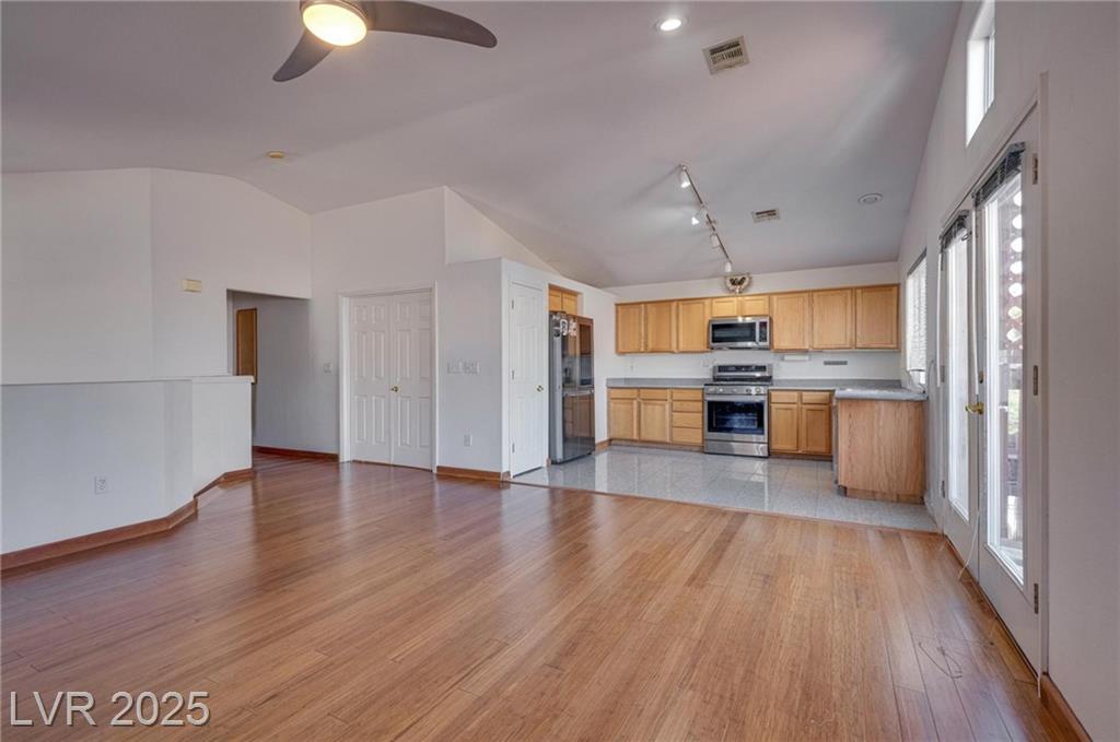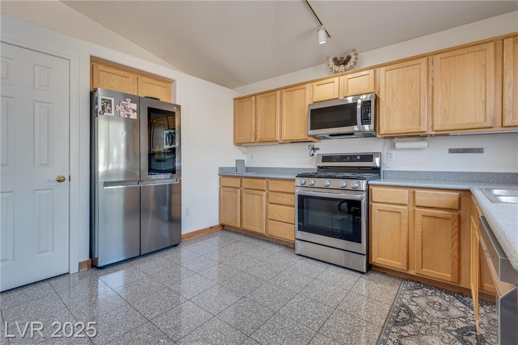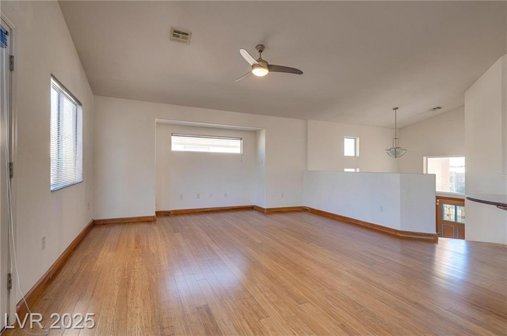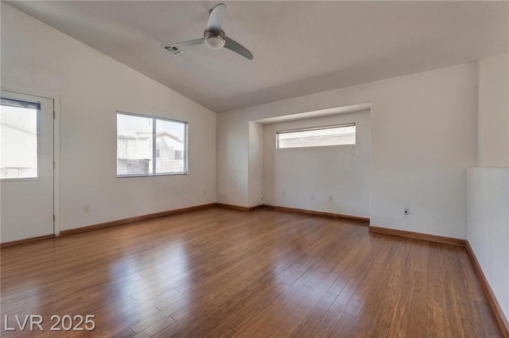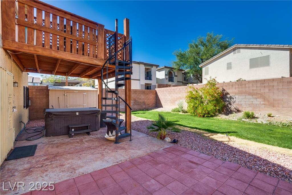 Welcome to this inviting split-level corner home offering 1,658 sq ft of versatile living space, Best part no HOA! The expansive driveway provides plenty of parking, large backyard features mature landscaping and an above-ground spa is perfect for relaxing. A unique highlight is the upstairs balcony, with a spiral staircase leading down to the yard for easy indoor-outdoor living. The upper level features an open layout with a spacious living room that opens to the kitchen, where SS appliances, granite-look counters, and abundant cabinetry create a warm and functional space. The primary suite and a secondary bedroom, ideal as a guest room or office. Downstairs offers incredible flexibility as a private retreat, with a second living room, full bath, and an additional bedroom—perfect for multigenerational living. Home is equip with solar. With its thoughtful floor plan, oversized lot, and prime location close to Summerlin’s amenities, this home combines comfort, convenience, and charm.