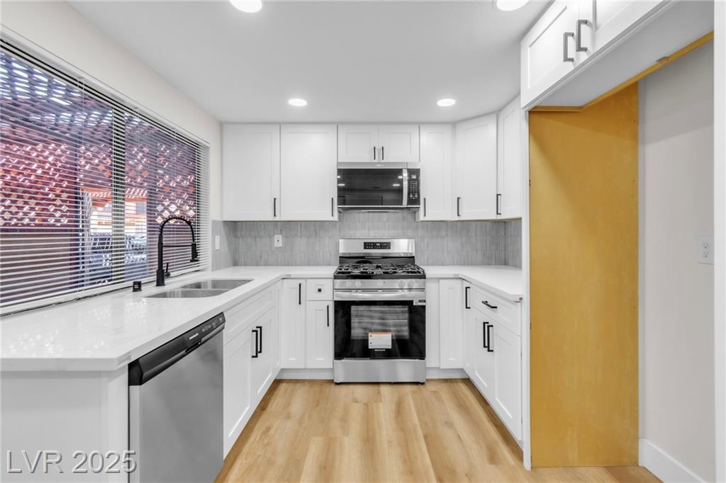Welcome to this stunning fully remodeled 2-bedroom, 3-bathroom townhome with an attached garage, located in a desirable gated community. Every detail has been thoughtfully upgraded with brand new flooring, fresh paint, quartz countertops, soft-close cabinets, and designer-selected tiles and fixtures. Both bedrooms are private suites with their own bathrooms, offering comfort and privacy. Truly move-in ready with brand new everything!
