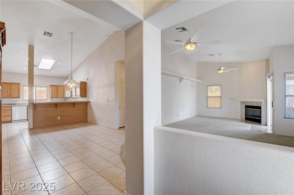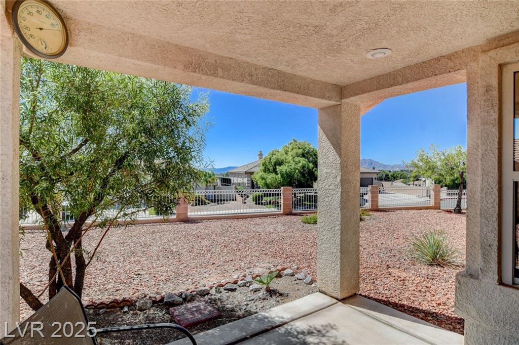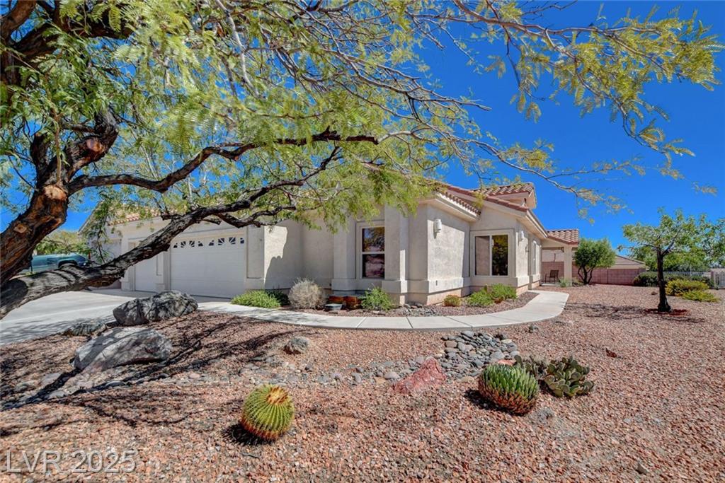 She's a Sleeper, Friends! Discover this sweet one-story home perched on an elevated 8,712 sq/ ft corner lot w/NO HOA! Step into the welcoming foyer & immediately be impressed by the open floor plan, enhanced by architectural touches that include beam &column entry, vaulted ceilings & a kitchen skylight that fills the heart of the home with natural light. The spacious living room features a fireplace and access to a quaint covered patio. The kitchen features solid surface countertops, a breakfast bar, and a spacious walk-in pantry. The primary suite is thoughtfully set apart from the secondary bedrooms. It boasts a remodeled en-suite bathroom, complete with a walk-in shower, dual vanities, walk-in closets & access to another covered patio. The secondary bedrooms are flanked by a full bath—perfect for guests, or a remote work-from-home office. Additional highlights include: 3-car garage (30' x 21.5') with epoxy flooring, work bench, easy-care desert landscaping—beautiful & water-wise.
