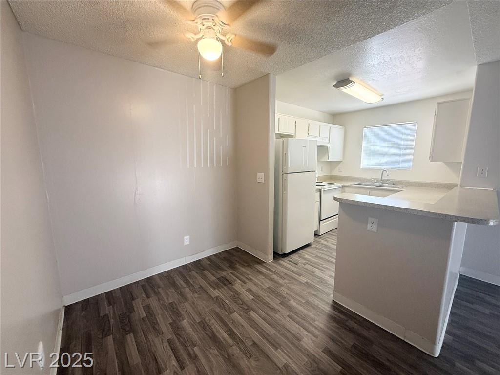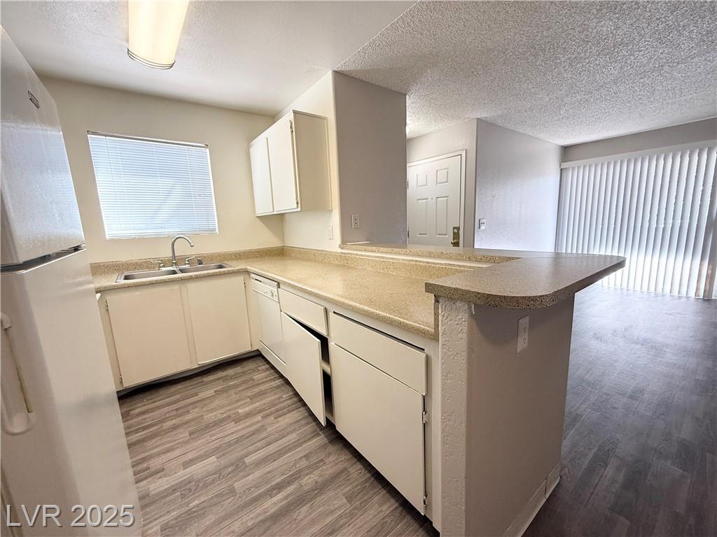 This beautifully updated 1 bedroom, 1 bath condo features vinyl flooring throughout and a fresh, modern look. Located in a gated community, the home offers a bright kitchen with white appliances and a breakfast bar, a separate dining area, and a cozy living room with a fireplace. Enjoy your private balcony with additional storage. Community amenities include a sparkling pool and a peaceful park for outdoor relaxation.