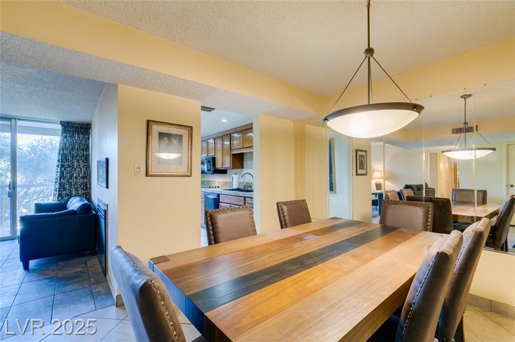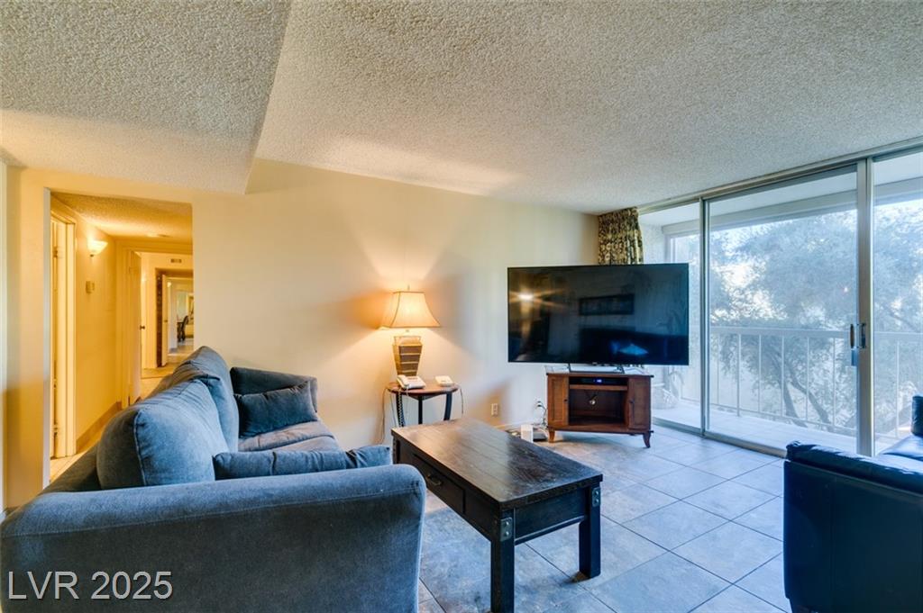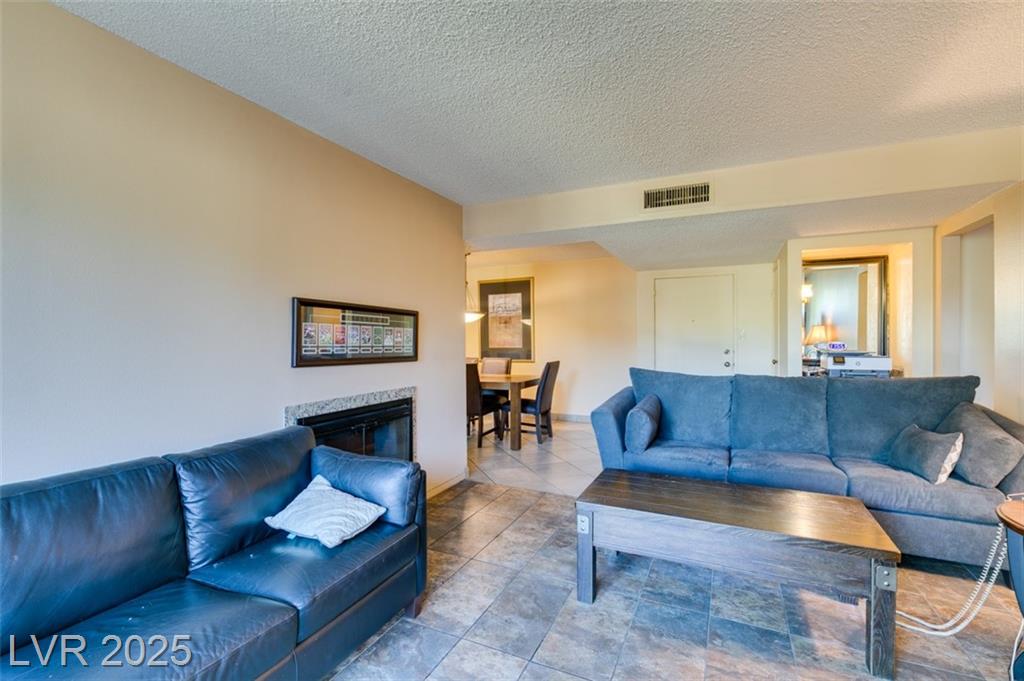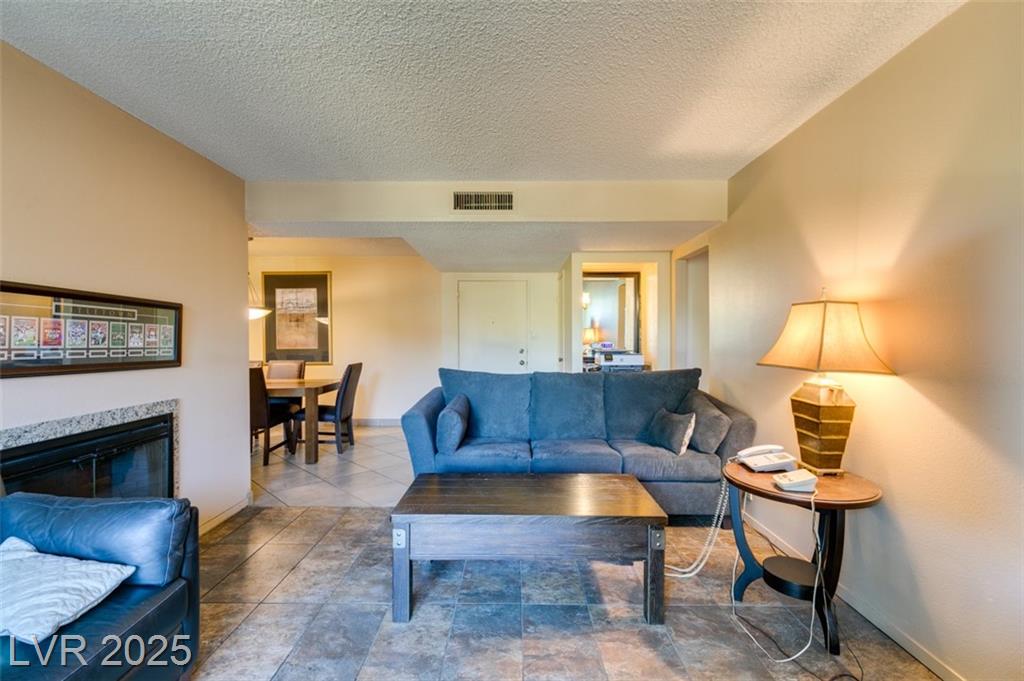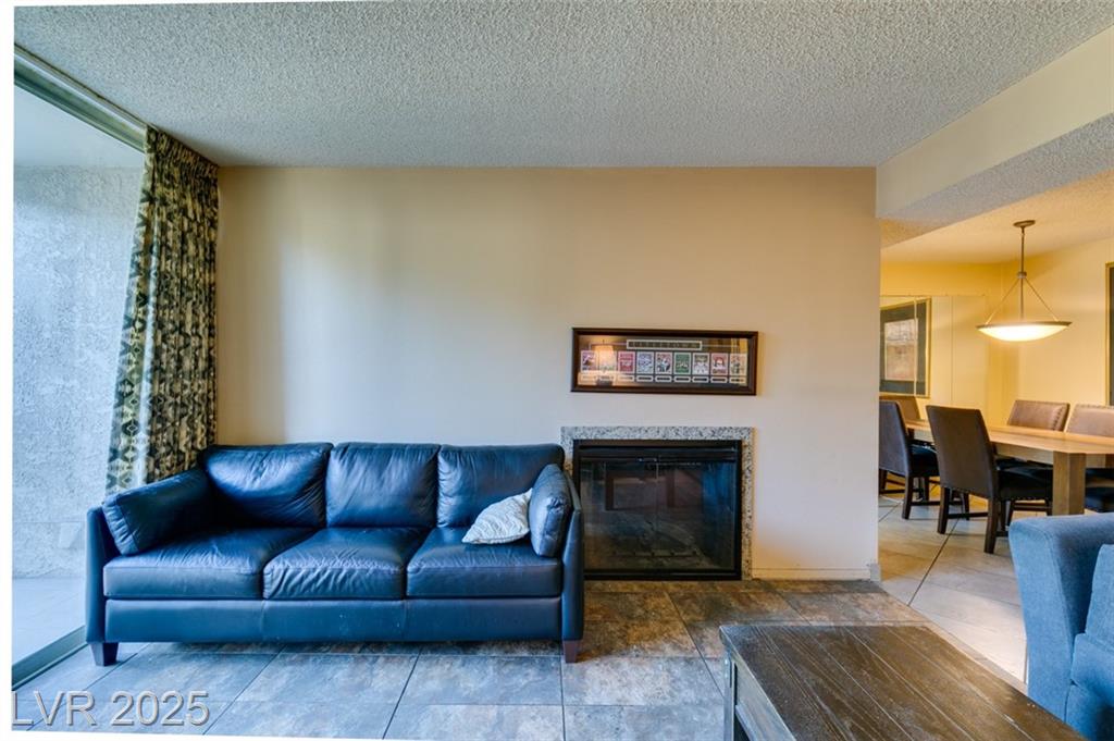 Great Guard Gated, Age Restricted Community close to absolutely everything...Convention Center, MSG Sphere, The Strip, UNLV, Airport, world class shopping and restaurants, no excuse to be bored plus HOA has community calendar, exercise room, heated pool & spa, tennis courts, clubhouse, walking/jogging trails, relaxing center courtyard, always something to do if desired or sit on your terrace with automatic solar screen and enjoy marvelous views of center courtyard area....unit is updated with custom tiling, granite tops in Kitchen & Bathrooms, large living room with fireplace, full size washer & dryer, large dining room for entertaining....a luxury development without the luxury price... relax with peace of mind there's 24/7/365 Guard gated security. A great place to call home