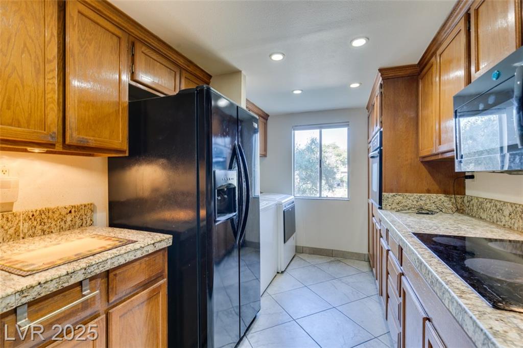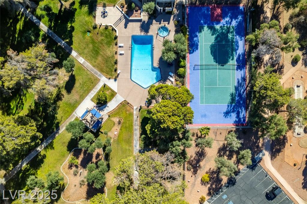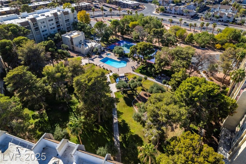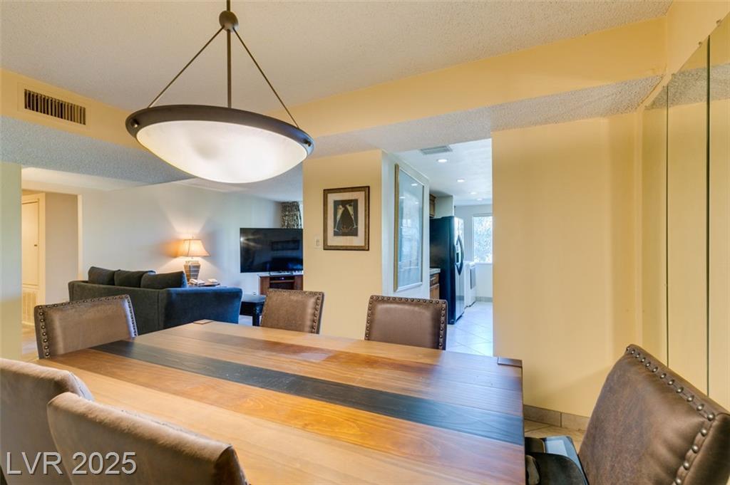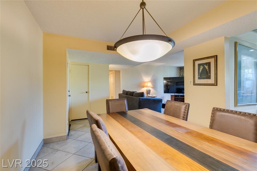 Great Guard Gated, Age Restricted Community close to absolutely everything...Convention Center, MSG Sphere, The Strip, UNLV, Airport, world class shopping and restaurants, no excuse to be bored plus HOA has community calendar, exercise room, heated pool & spa, tennis courts, clubhouse, walking/jogging trails, relaxing center courtyard, always something to do if desired or sit on your terrace with automatic solar screen and enjoy marvelous views of center courtyard area....unit is updated with custom tiling, granite tops in Kitchen & Bathrooms, large living room with fireplace, full size washer & dryer, large dining room for entertaining....a luxury development without the luxury price... relax with peace of mind there's 24/7/365 Guard gated security. A great place to call home