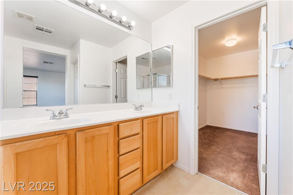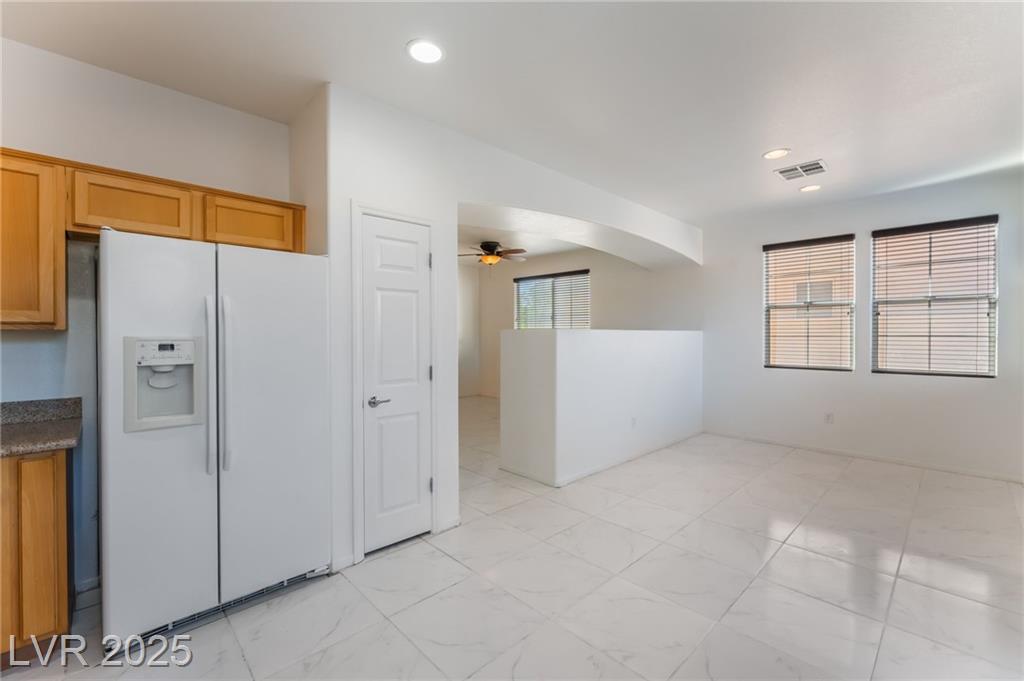 Welcome to an exquisite property nestled in the heart of North Las Vegas, NV. This stunning 3-bedroom, 2.5-bathroom home includes a spacious layout and the perfect oasis for families and professionals alike. Upon entering the home, you will be greeted by a bright and inviting living area, complete with tile flooring, recessed lighting, and large windows that allow natural light to pour in. The open floor plan flows seamlessly into the kitchen, which features sleek granite countertops, all appliances, and plenty of storage space. The dining area is perfect for hosting family dinners or entertaining guests, with direct access to the backyard and patio. Upstairs, you will find the master bedroom with a walk-in closet, an en-suite bathroom with dual vanities, a large soaking tub& a separate shower. The two additional bedrooms are spacious and offer plenty of natural light. Located in a highly desirable community, this property is conveniently located close to parks, shopping, &restaurants.