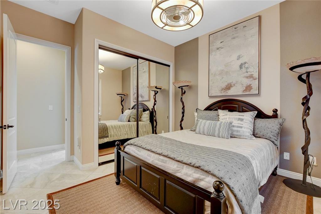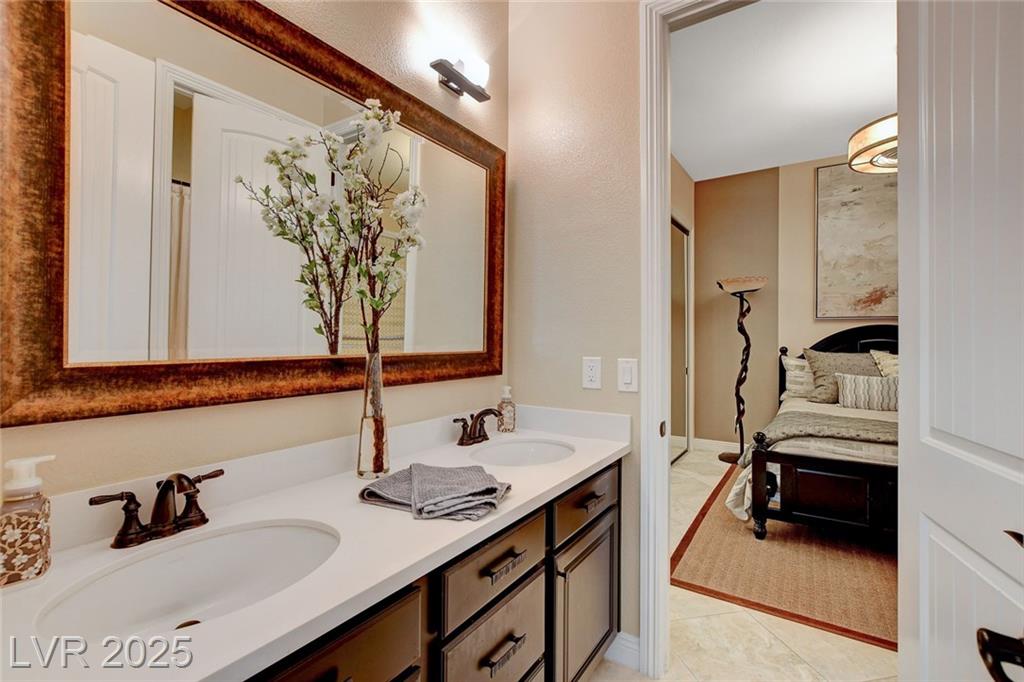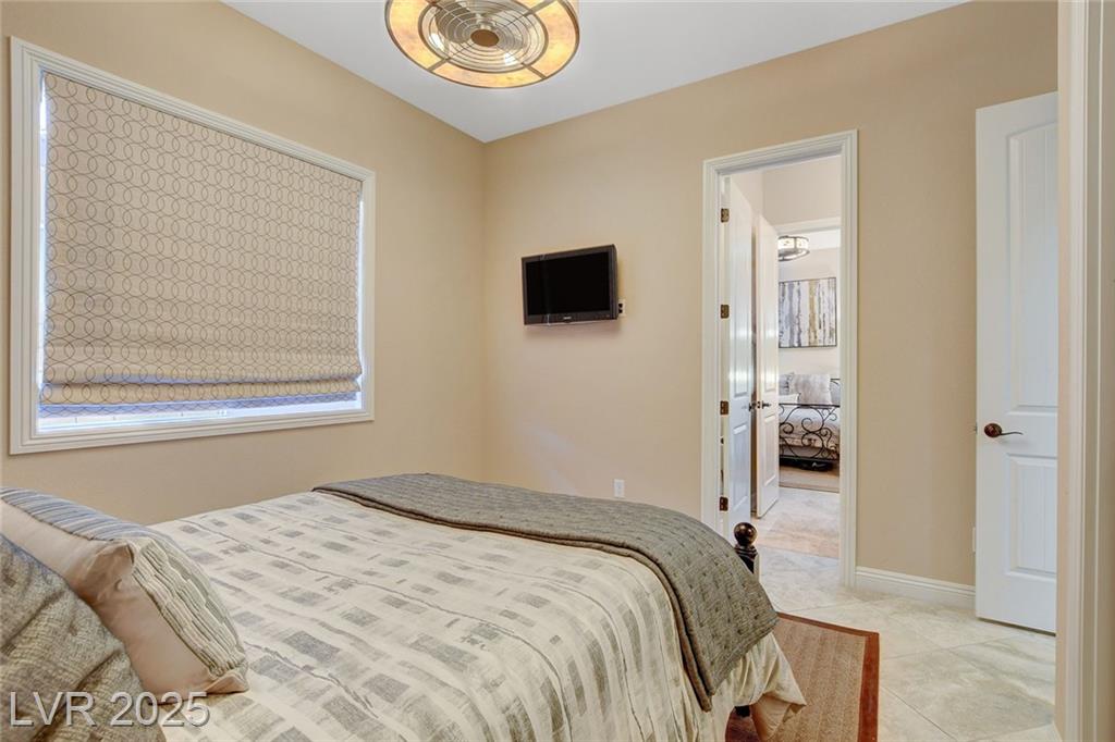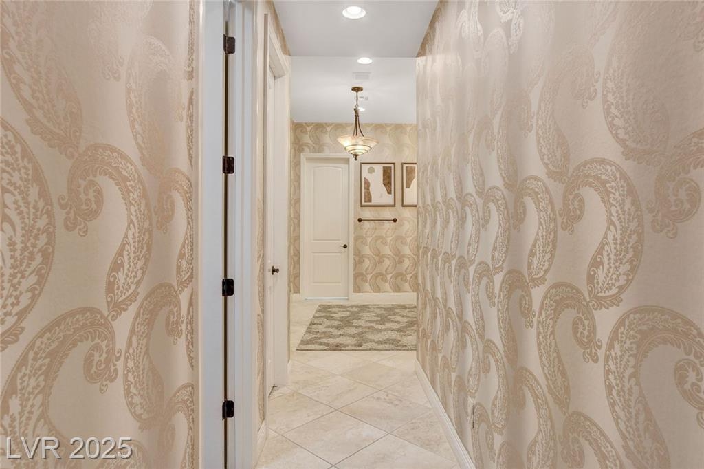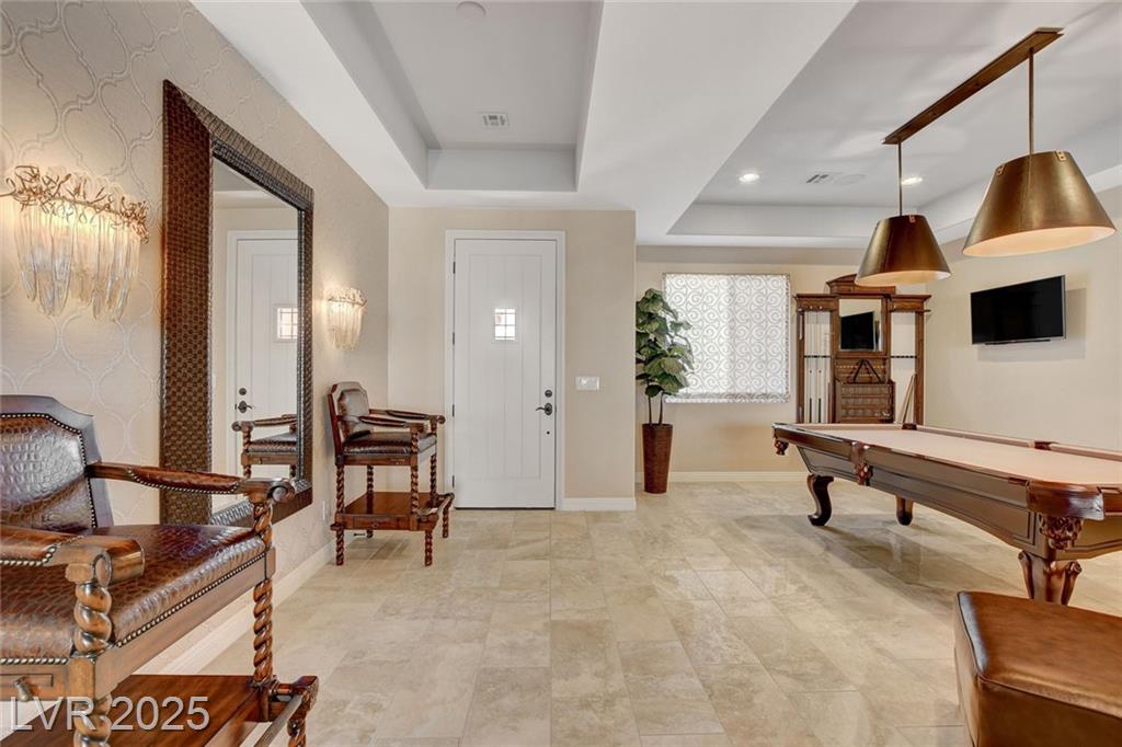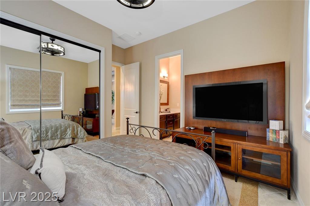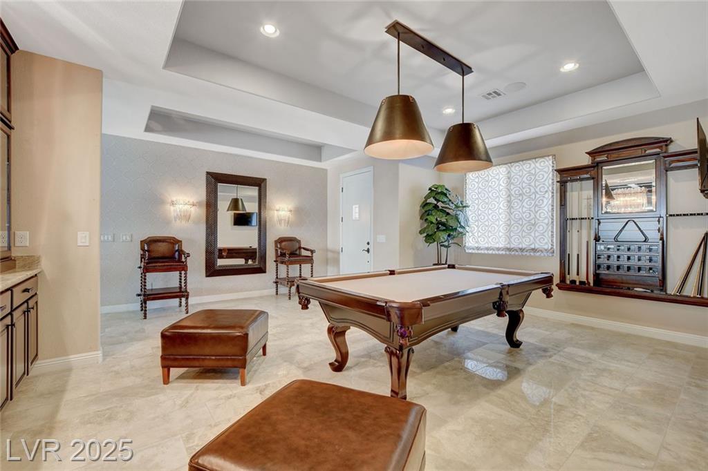 Stunning single-story luxury home located in a prestigious gated Summerlin community. This home offers a spacious 3-car garage that’s pre-wired for an EV charger, inviting courtyard entry, and high-end finishes throughout. The chef’s kitchen opens to the living room and features JennAir double ovens, a large gas cooktop, and generous counter space. The living room is accented with coffered ceilings, custom built-ins, and a large pocket slider that seamlessly connects indoor and outdoor living. Step outside to an entertainer’s dream backyard complete with a covered patio, outdoor kitchen, fire pit, water feature, and multiple seating areas. The primary suite feels like a private retreat, showcasing a spa-inspired bathroom with dual sinks, an oversized shower, 2 separate walk-in closets with custom built-ins. Two additional bedrooms share a Jack-and-Jill bathroom, each offering ample space and comfort. This home blends elegance, functionality, and luxury living in the heart of Summerlin.
