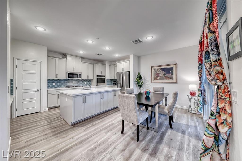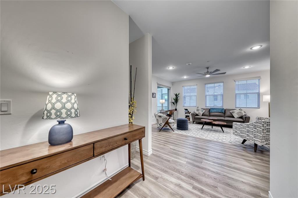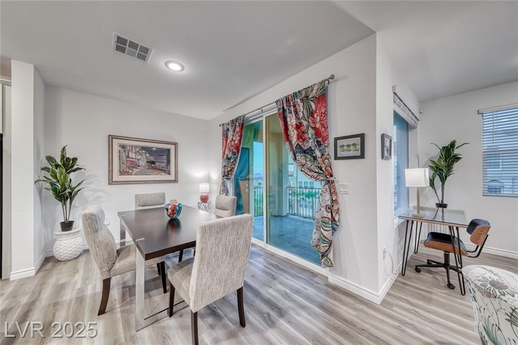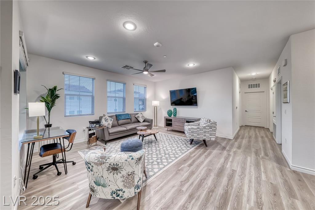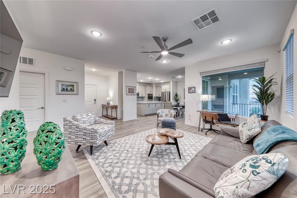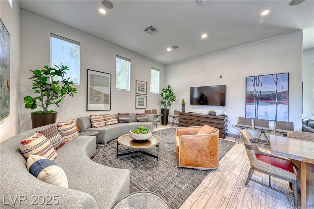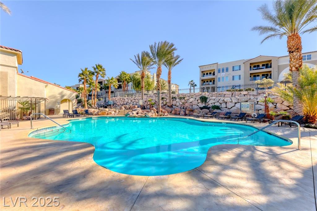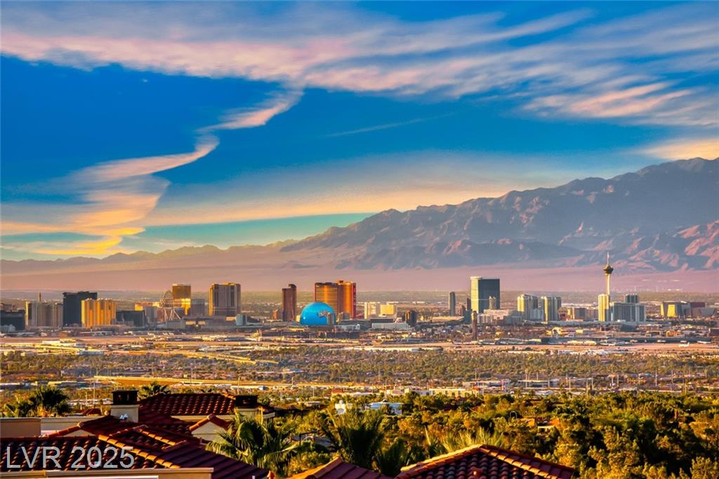 Experience breathtaking Strip & Mountain Views from this Top-Floor Condo at Terra Bella at Anthem. Perched on the most elevated lot in the exclusive Terra Bella at Anthem, this low-maintenance condo showcases sweeping views of the Las Vegas Strip & surrounding mountains. The open layout features luxury vinyl plank flooring, quartz countertops & custom tile backsplash. The chef’s kitchen offers stainless steel appliances, ample cabinetry, custom roll out shelves & generous walk-in pantry. A full-size laundry room with sink & built-in cabinetry adds convenience. Just steps from the clubhouse & pool, you’ll enjoy resort-style amenities including fitness centers, outdoor lounge areas, walking trails & more. Experience premium views, elevated living & vibrant lifestyle in one of Henderson’s most sought-after 55+ gated communities.