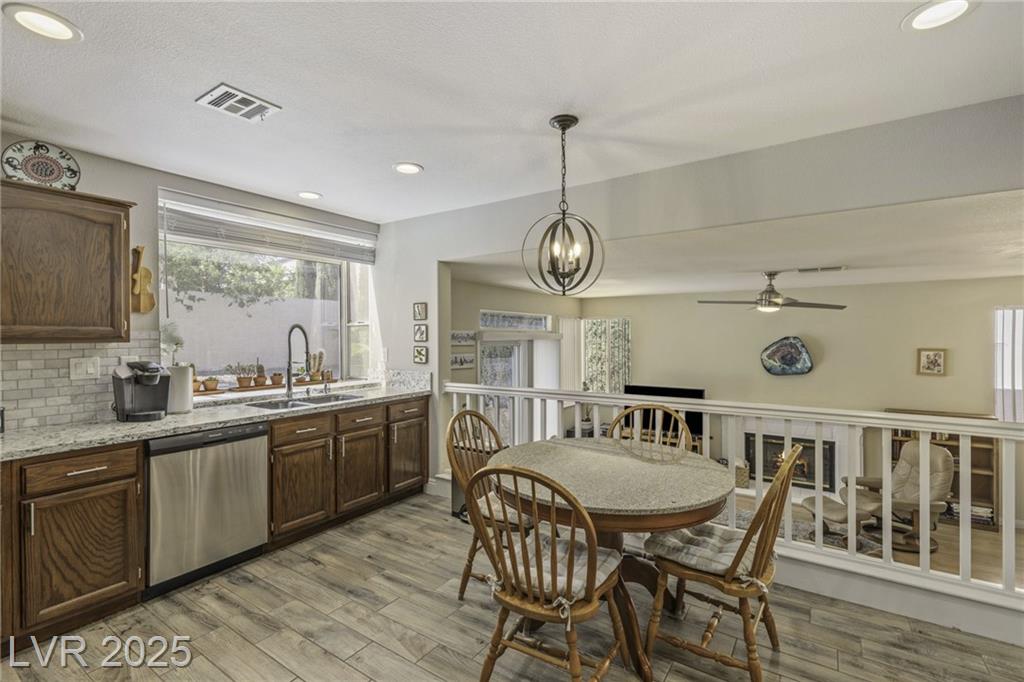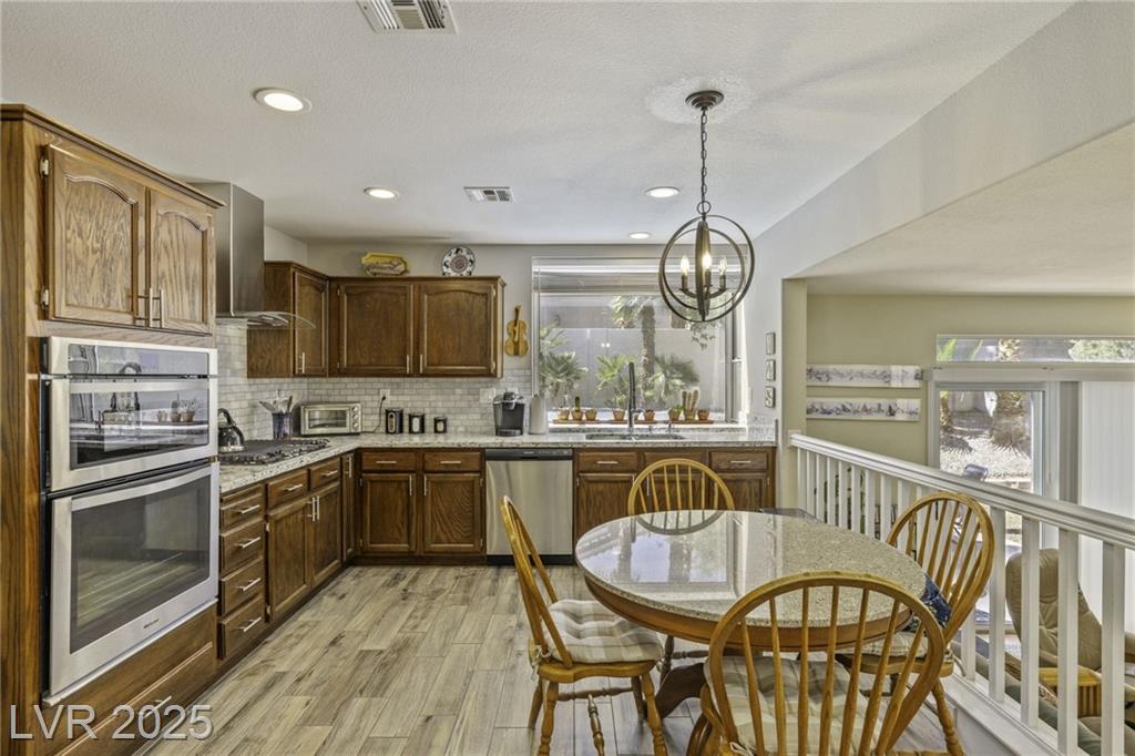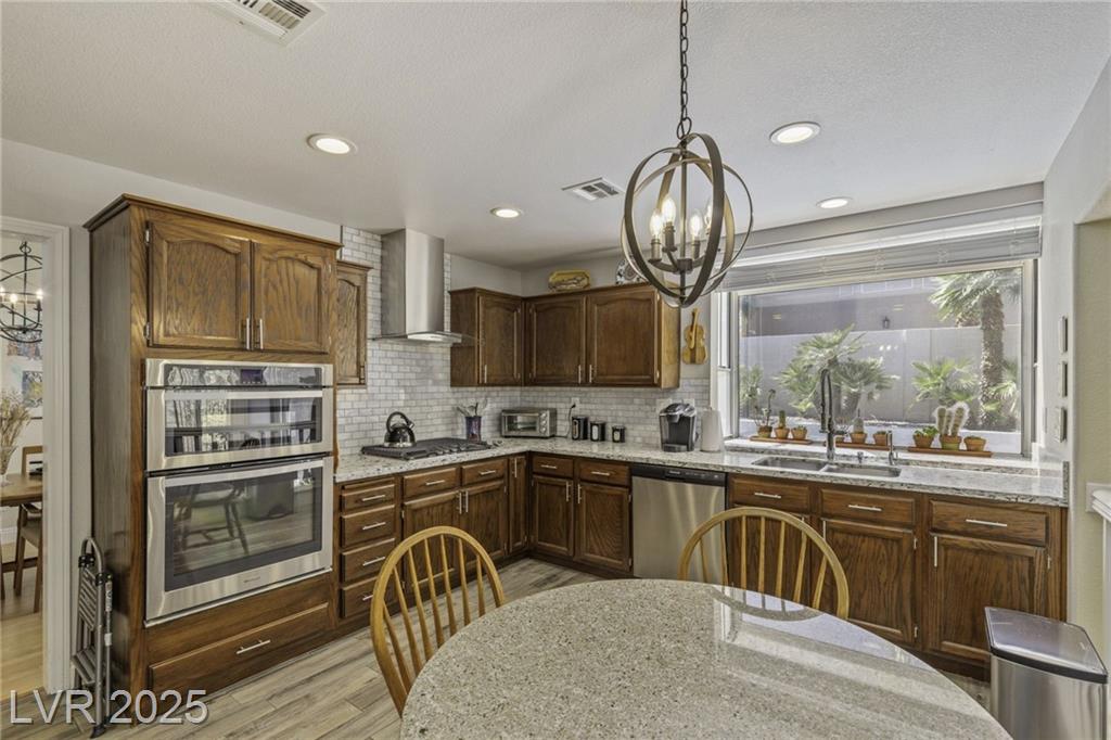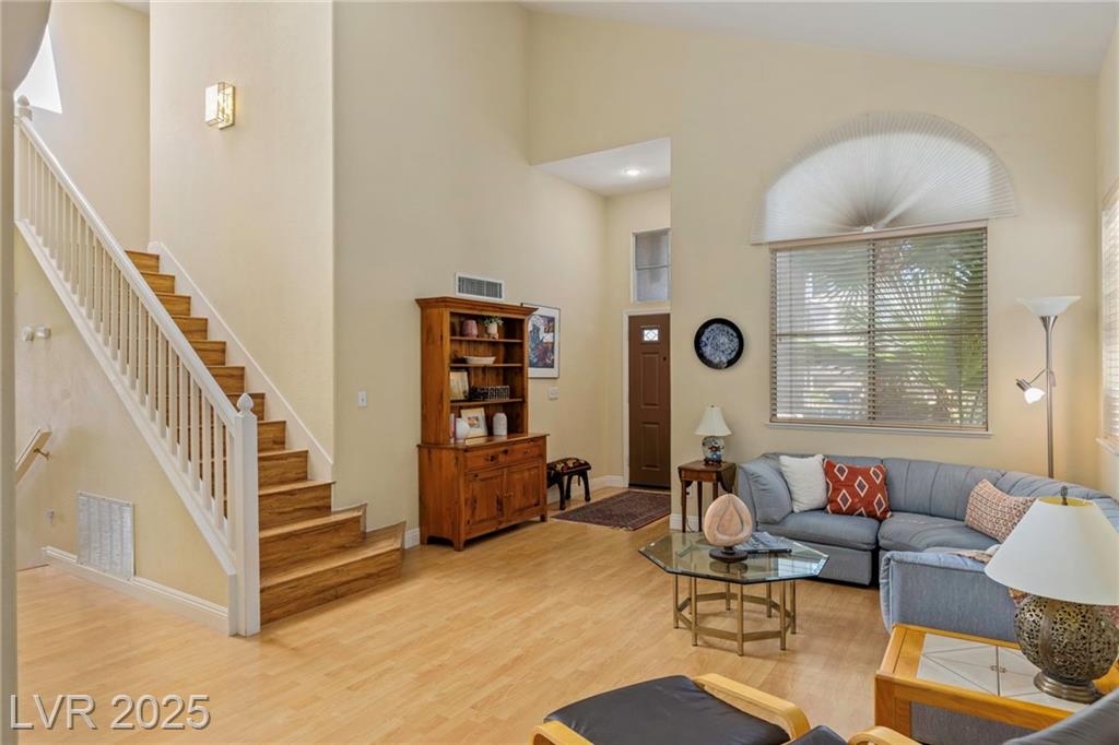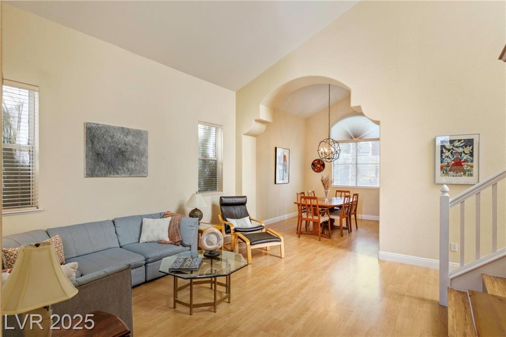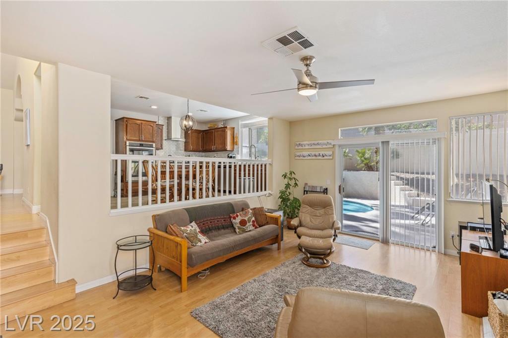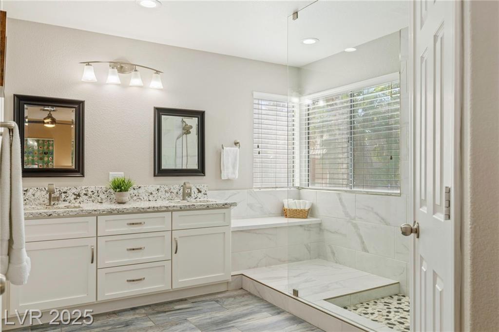 Nestled on a quiet cul-de-sac in the heart of Summerlin North, this 4-bedroom, 2.5-bath home is beautifully updated and full of charm. The kitchen features quartz countertops, marble backsplash, stainless steel appliances, tile flooring, dark-stained wood cabinetry, and a charming garden window. Upstairs you’ll find all 4 bedrooms and the Primary is a stand-out featuring a luxurious ensuite boasting custom cabinetry, quartz counters, and a spacious walk-in shower. Distinctive touches include arched windows and doorways, a skylight at the top of the stairs, and French doors leading to a versatile flex space. Outdoors, enjoy a pool, spacious yard, and 3-car garage. With a newer roof, newer dual A/C units, and walkability to top-rated schools, parks, and trails, this home offers both peace of mind and an exceptional lifestyle. Shopping, dining, and coffee shops are nearby—perfect for Sunday morning strolls with your pup.