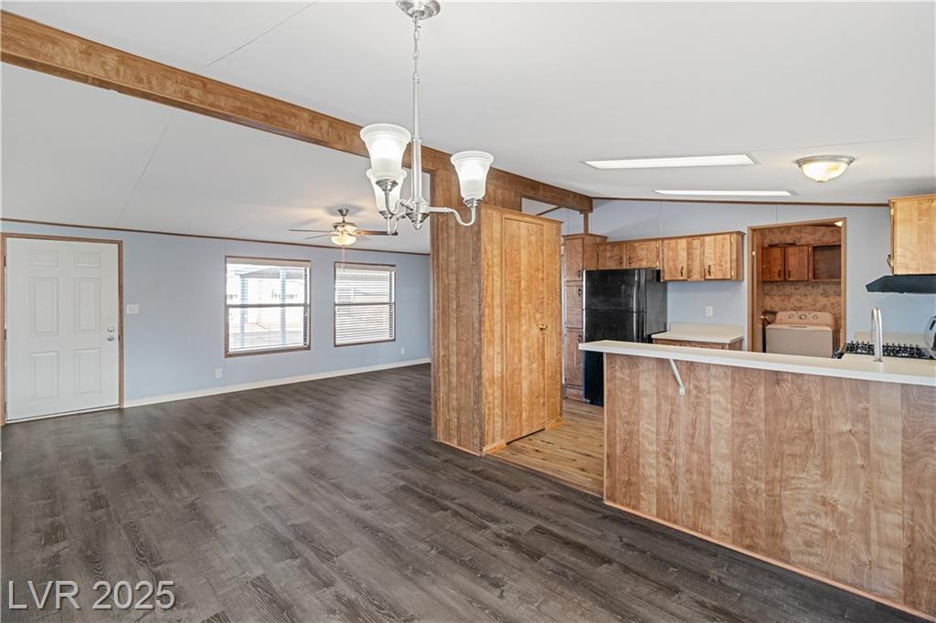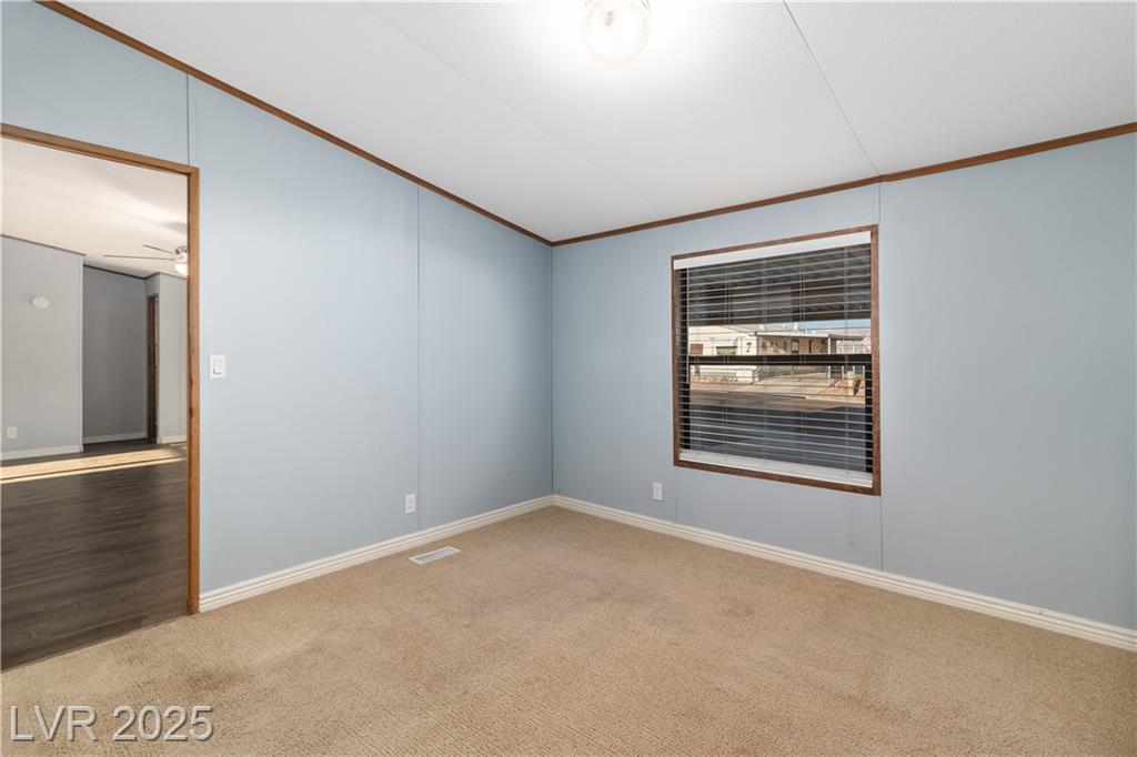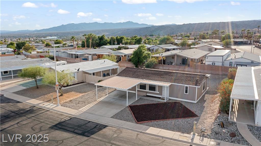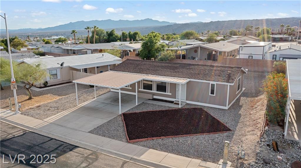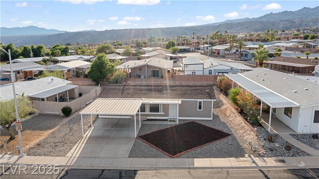 WELCOME TO MONTE DEL SOL, where this inviting 2-bedroom, 2-bath Laughlin home combines comfort, updates, and a quiet community setting just minutes from the Colorado River and casinos. Offering 1,056 sq ft of living space, the split-bedroom layout ensures privacy while upgraded Luxury Vinyl Plank flooring in the main areas pairs perfectly with plush carpet in the bedrooms. The bright kitchen includes a breakfast bar and abundant cabinetry, and a separate laundry room with washer and dryer adds convenience. Outdoors, a covered patio overlooks easy-care desert landscaping and a backyard with room for entertaining or relaxing evenings. A covered carport offers extra parking, and Monte Del Sol residents enjoy a community pool, green park space, and one of the lowest HOA fees in town. Close to shopping, dining, Lake Mohave, and Big Bend State Recreation Area, this property delivers both relaxation and access. Best of all, NEVADA HAS NO STATE INCOME TAX!