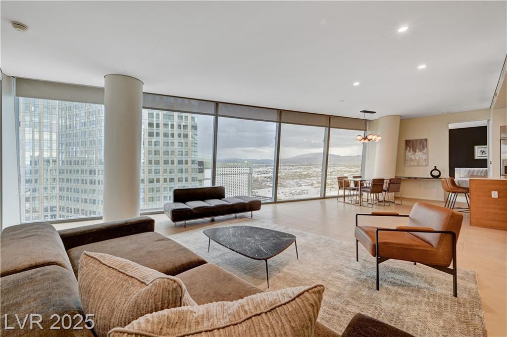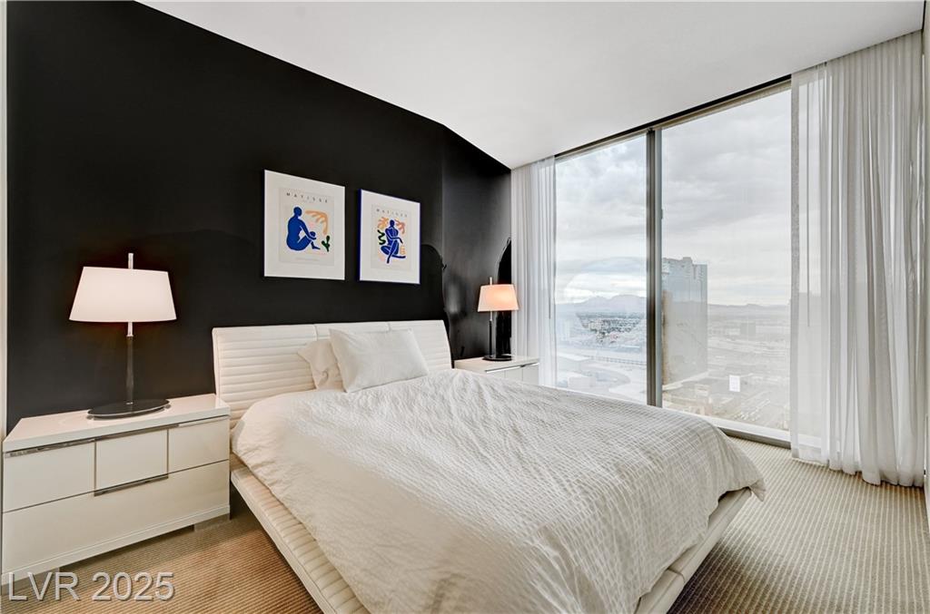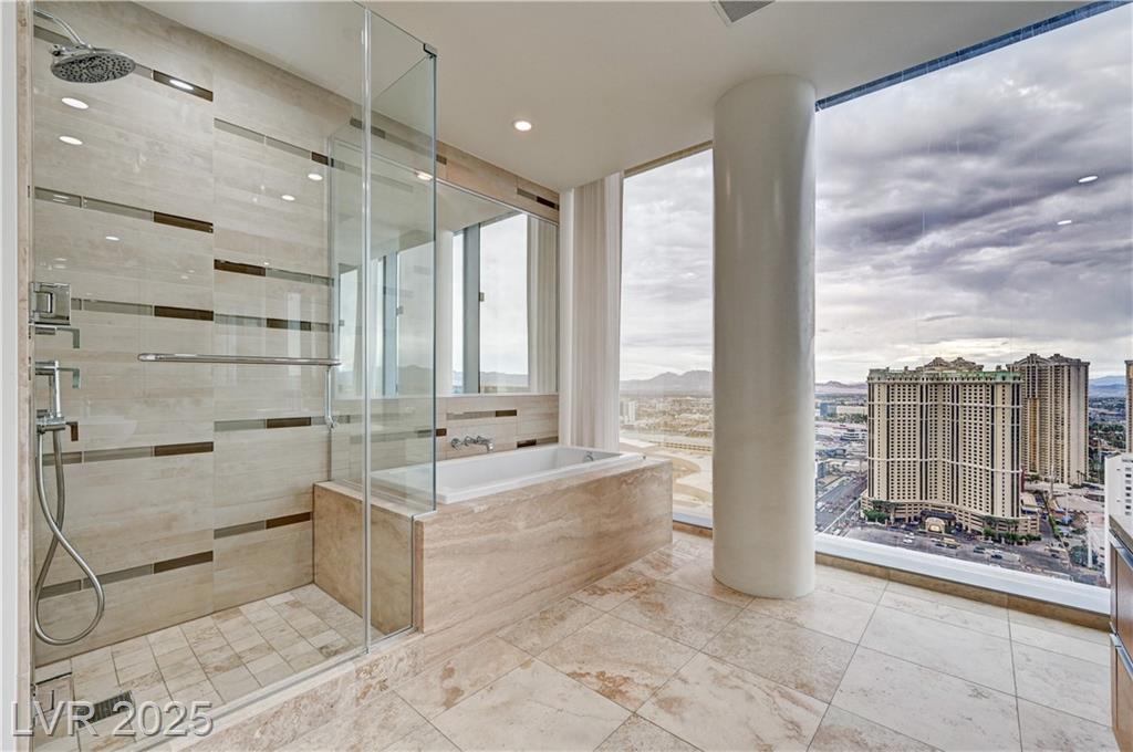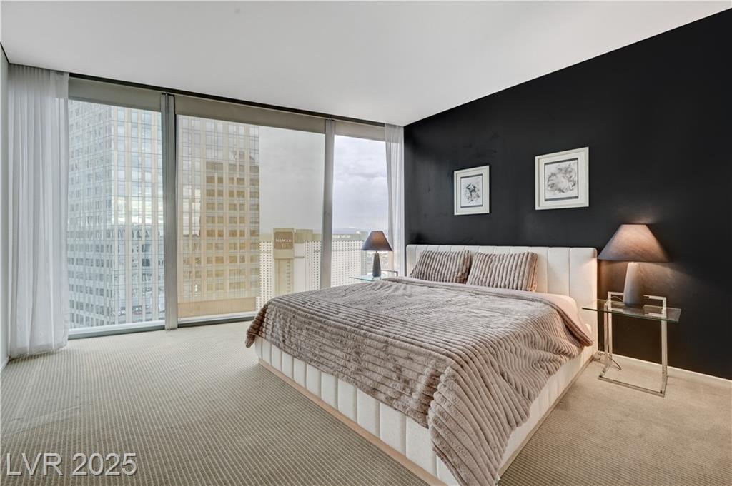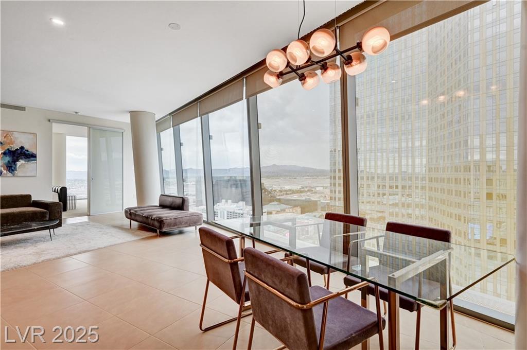 This rare 3-bedroom, 3-bath corner unit offers panoramic views stretching East, South, and West, Strip skyline, desert mountains, and lights. From your floor to ceiling windows, experience the energy of Las Vegas like never before, including front row views of the Vegas Grand Prix, New Year’s fireworks, and the nonstop spectacle of the city below. Inside, the open concept layout features a sleek modern kitchen with quartz countertops, stainless steel appliances, custom European cabinetry, and a spacious storage island overlooking the expansive great room and glittering Strip. Retreat to one of two luxurious primary suites, one with a deep soaking tub, perfect for unwinding after a night out. Whether you’re hosting guests or enjoying a quiet night in, this high-rise sanctuary delivers elevated living with effortless style. Enjoy resort-style amenities including a rooftop infinity pool, spa, fitness center, outdoor kitchen, and exclusive concierge service. With valet parking