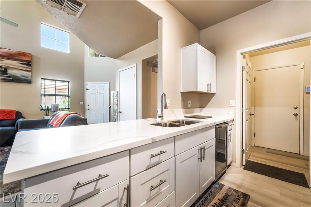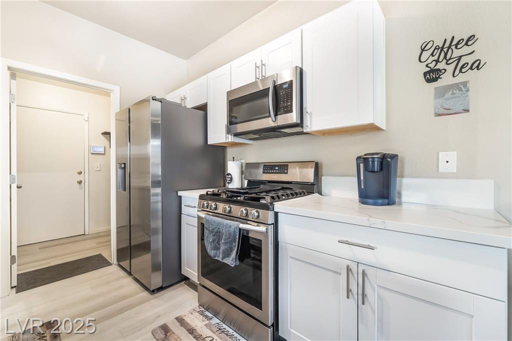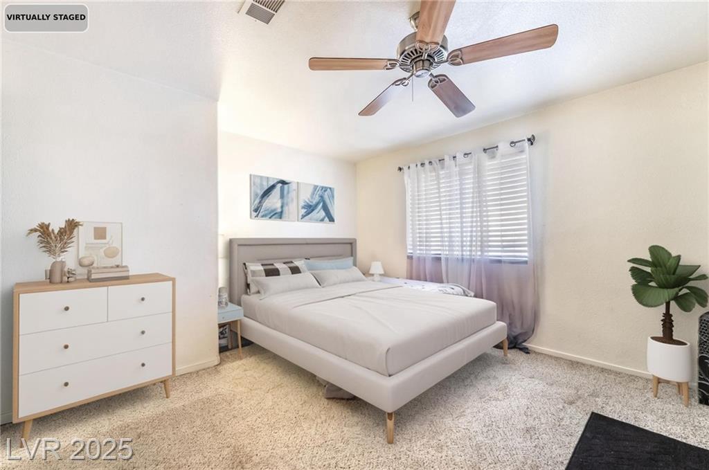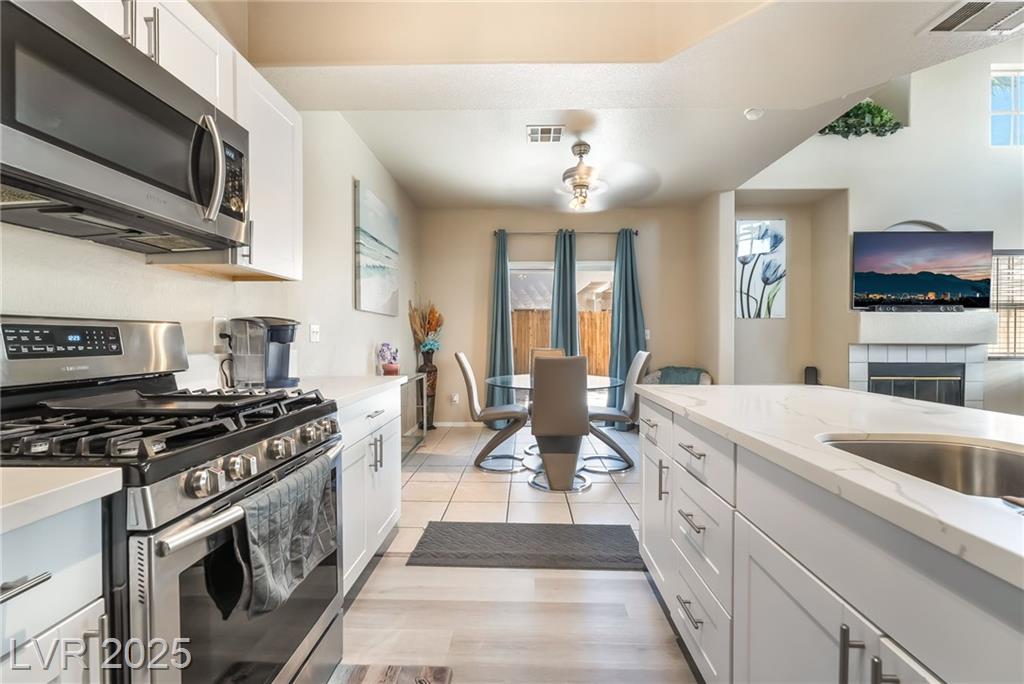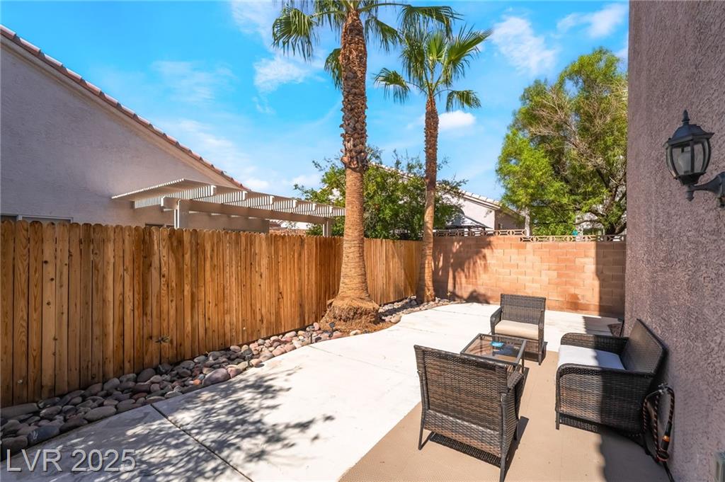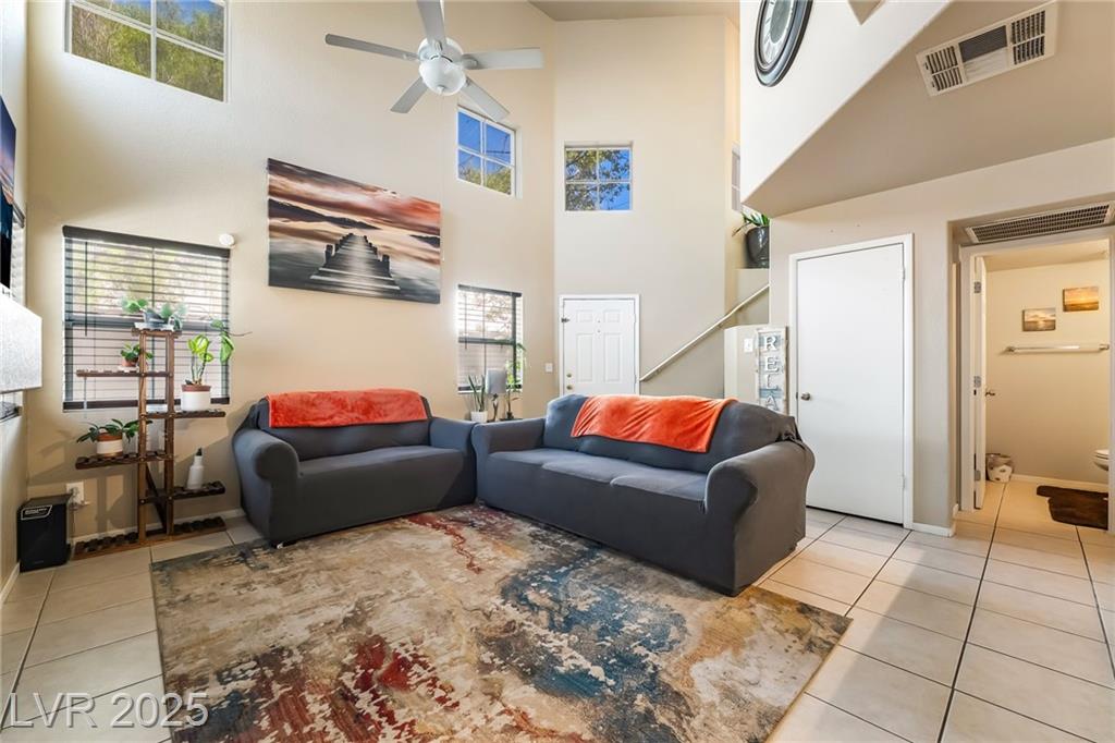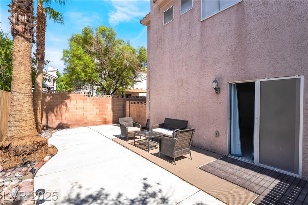 Charming 3-bedroom, 2.5-bath townhouse in a gated Las Vegas community. This home offers 1,338 sq. ft. of living space with vaulted ceilings, natural light, and a cozy fireplace in the living room. The functional layout includes a separate dining area, kitchen with ample cabinet space, and a dedicated laundry area. Upstairs features three well-sized bedrooms, including a primary suite with private bath. The property also includes a 2-car attached garage and a private backyard with low-maintenance landscaping. Community amenities include gated access and exterior maintenance. Conveniently located near the airport, UNLV, shopping, dining, and the Las Vegas Strip, this home combines comfort, function, and accessibility in a desirable setting.