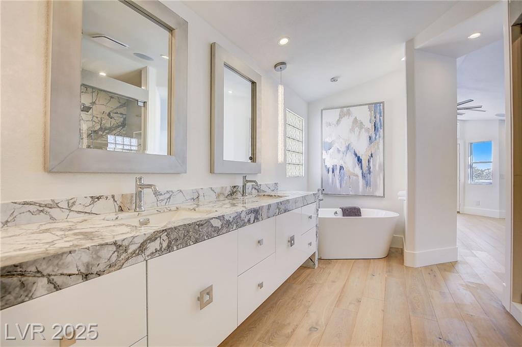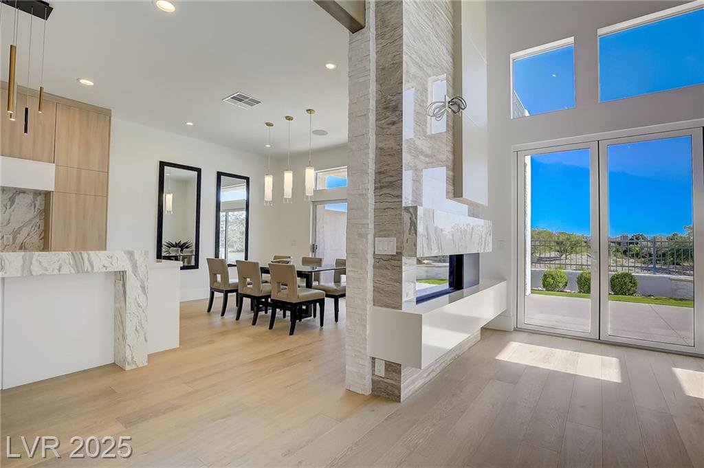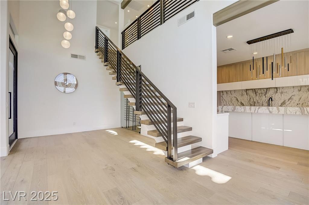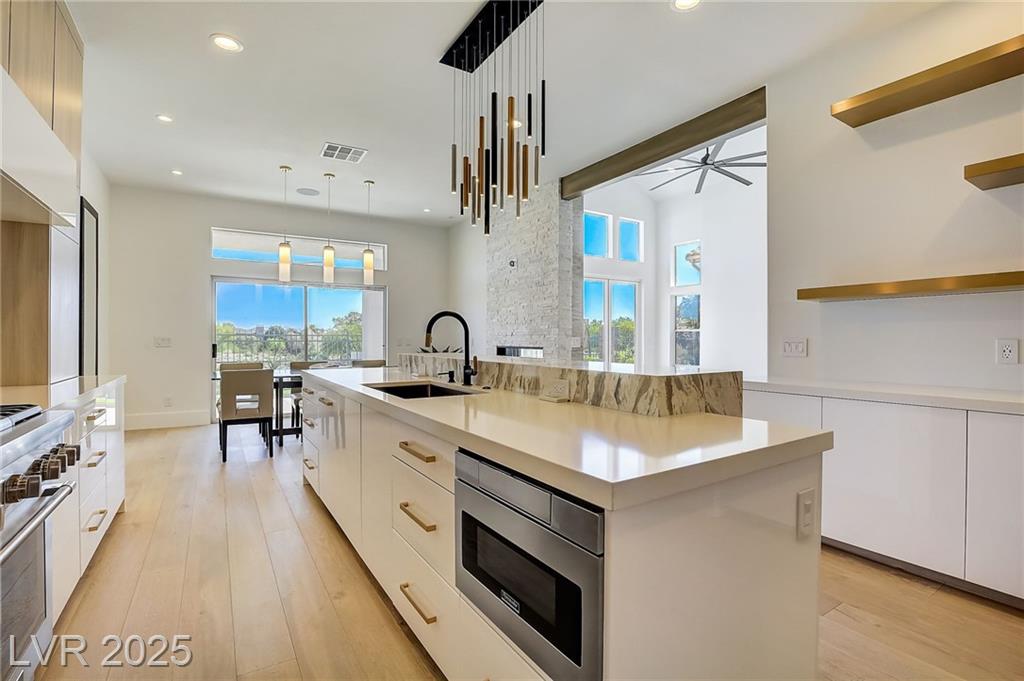 CUSTOM DESIGNED SUMMERLIN HOME WITH TPC GOLF COURSE VIEWS*STUNNING HOME WITH NO EXPENSE SPARED*HIGH-END UPGRADES THROUGHOUT*9' GLASS PIVOT FRONT DOOR*CUSTOM FLOATING STAIRCASE*GLASS WALL/WINE DISPLAY*LINEAR FIREPLACE ENCASED IN 22' OF MARBLE*12' GLASS DOORS ON BACK WALL OF HOME OPEN FOR AMAZING VIEWS & TO EXTEND YOUR ENTERTAINING SPACE*GOURMET KITCHEN WITH 48" THERMADOR RANGE, 72" GAGGENAU REFRIGERATION, ELM STEVENSWOOD & BIANCO CRYSTAL CABINETS WITH WHITE QUARTZ & ITALIAN MARBLE & LUXURIOUS EUROPEAN WHITE OAK FLOORING*PRIMARY SUITE ALSO HAS TPC GOLF & CITY VIEWS*SPA-INSPIRED PRIMARY BATH WITH CRYSTAL PENDANT LIGHTING, DUAL WATERFALL MARBLE VANITY & KOHLER DTV & DIGITAL SHOWER EXPERIENCE*OVERSIZED PRIMARY DRESSING ROOM FEATURES LIGHTED VANITY*WORLD-CLASS LOCATION WITH ACCESS TO DOWNTOWN SUMMERLIN RETAIL & RESTAURANTS, SUMMERLIN PARKS, POOLS, TENNIS COURTS & WALKING/JOGGING TRAILS, RED ROCK RECREATION AREA, LAS VEGAS BALLPARK, GOLDEN KNIGHTS PRACTICE FACILITY & TOP RATED SCHOOLS*