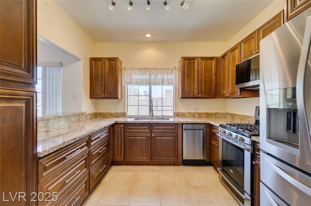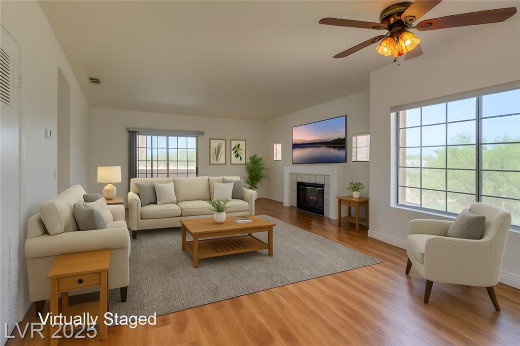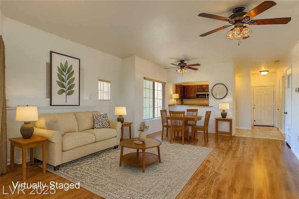 Looking for a great condo in Green Valley with a low HOA fee? This is it! Price reduced $10,000 for a quick sale—don’t miss this beautifully updated second-floor unit in a prime neighborhood. Featuring 2 private bedrooms and 2 full bathrooms, enjoy sunrise views from the covered patio and an open-concept living/dining area with a cozy fireplace. The kitchen offers custom soft-close cabinets, granite countertops, oversized pantry with roll-out shelves, Lazy Susan, slide-out trash drawer, farmhouse sink, and stainless steel appliances. Bathrooms include matching cabinets and granite. Ample storage throughout plus an oversized 2-car garage with 24” deep heavy-duty shelving, newer door opener/springs, water heater, and Samsung washer/dryer. Freshly painted and move-in ready. Community amenities include 2 resort-style pools and spas. Conveniently located with fast access to I-215 & 95.
