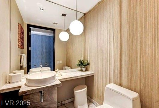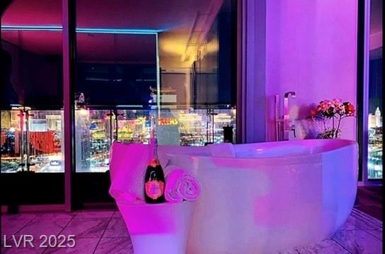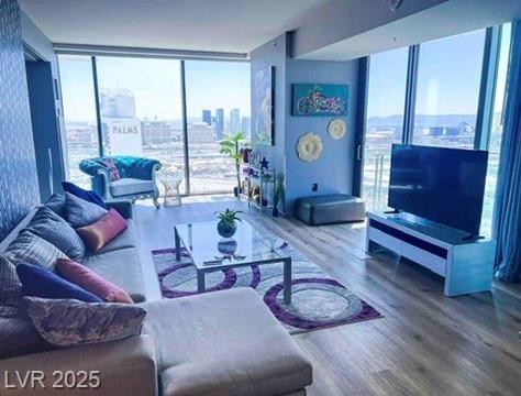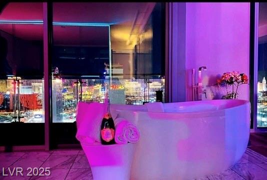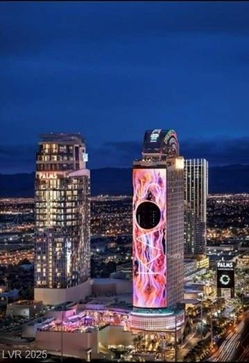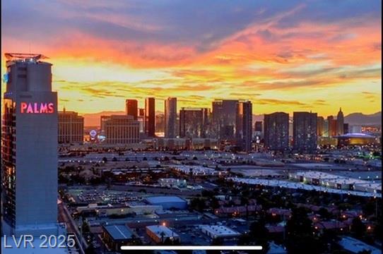 Experience luxury living in this stunning, fully furnished 1-bedroom, 1.5-bath condo on the 33rd floor of Palms Place. Enjoy panoramic views of the Strip, city, & mountains through floor-to-ceiling windows. The spacious layout feels like two bedrooms, thanks to a living room sofa with a pullout bed. The kitchen opens to the living area & has been upgraded beyond the standard units, featuring stainless steel appliances, custom cabinetry, modern lighting, hood, & sleek tile and laminate flooring. The primary suite offers the ultimate retreat with floor-to-ceiling closets, marble flooring, dual vanities with marble counters, a glass-enclosed walk-in shower, & a soaking tub positioned to take in the stunning views—right beside balcony doors for indoor-outdoor flow. Palms Place Resort amenities include 24/7 valet, security, fitness center, pool/spa, on-site dining, nightlife, movie theater, casino, and more—with direct sky bridge access to the Palms Casino. HOA dues cover all utilities.