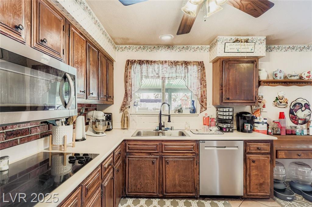Welcome home to a truly unique custom home with all of the amenities on almost a half acre of land! Built in BBQ, glass enclosed pool, huge front and backyard with grass and all appliances included in the sale. Custom built ins in two bedrooms and lots of room for your buyers own touches to update and make it their own! Septic tank, leased solar panels and storage shed to convey.