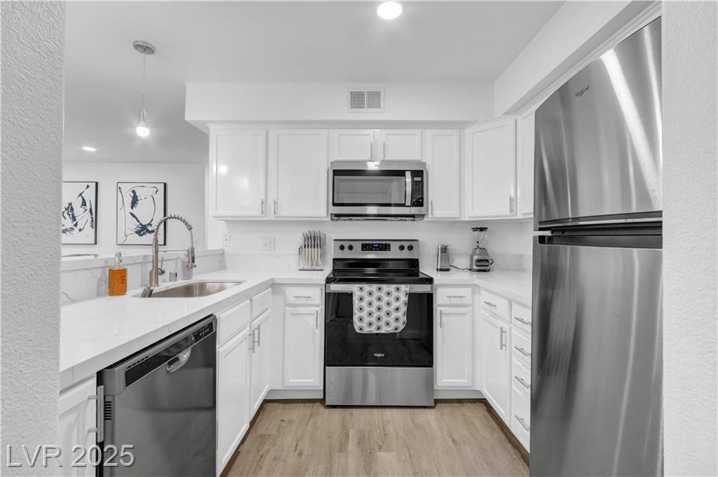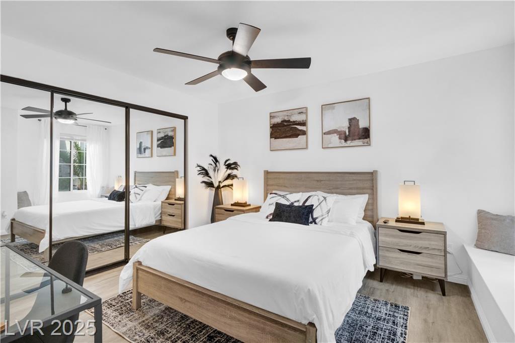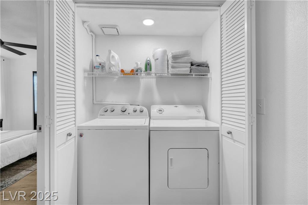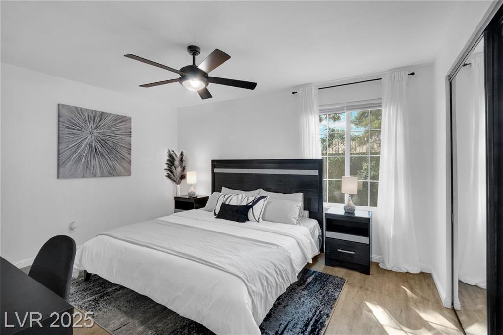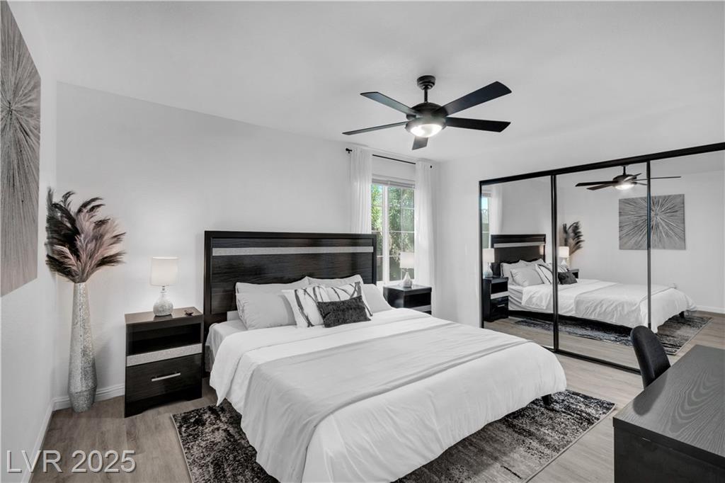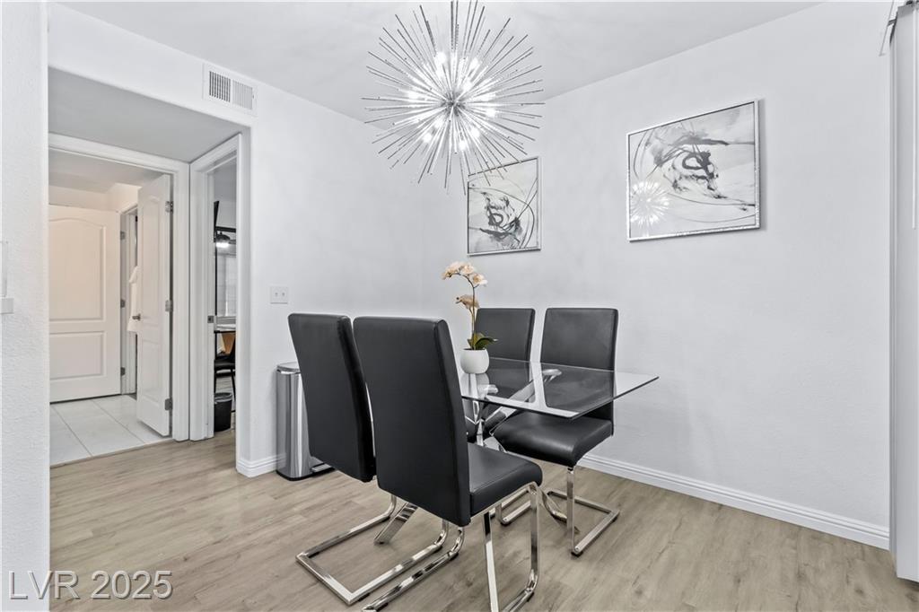 This beautifully designed 2-bedroom, 2-bath condo offers comfort, convenience, and style—all just minutes from the Las Vegas Strip, shopping, and easy freeway access. The upgraded kitchen features quartz countertops, a breakfast bar, stainless steel appliances, and elegant pendant lighting. The spacious living area is highlighted by a cozy fireplace and luxury vinyl flooring for easy maintenance and a modern touch. Just off the dining area, the private patio provides a perfect spot to relax or enjoy your morning coffee. Additional features include upgraded bathrooms with granite, ceiling fans throughout, and an in-unit laundry room for added convenience. The community offers a sparkling pool, relaxing spa, fitness center, BBQ area and ample guest parking. HOA fees cover water and trash services, making budgeting simple. Don’t miss out on this move-in-ready gem in a prime location!