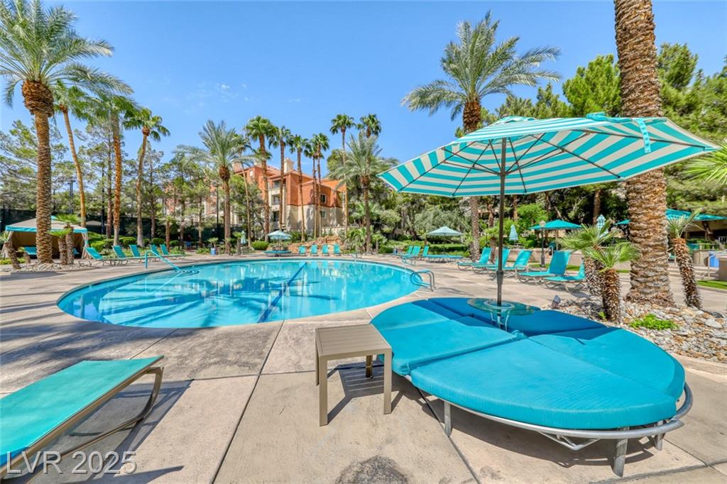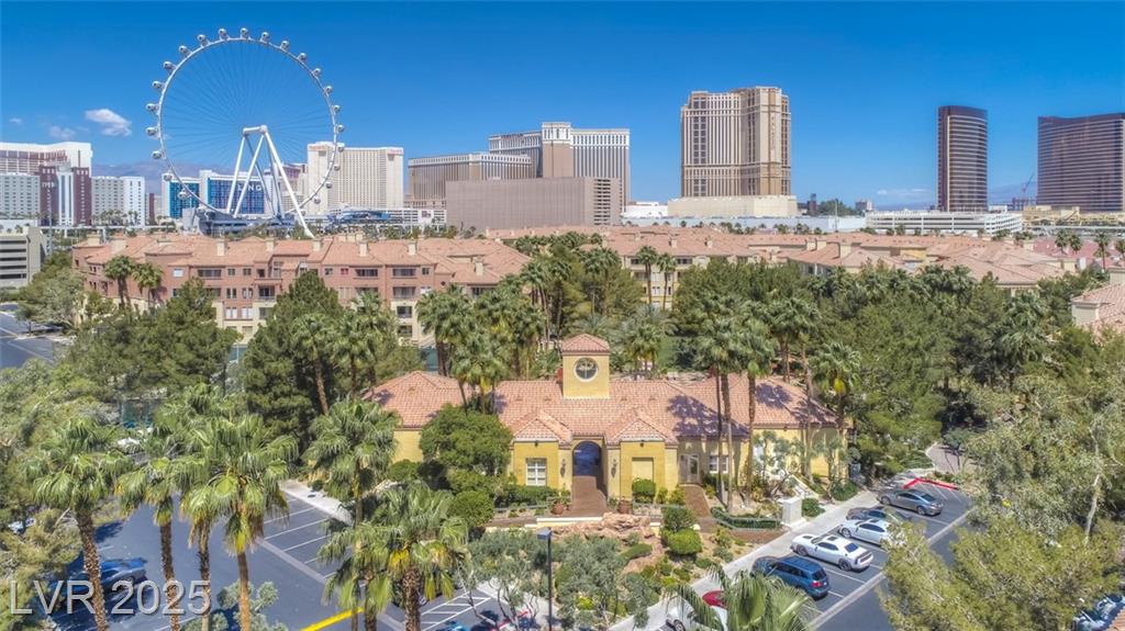 Fully furnished luxury condo with partial Strip and Sphere views, just minutes from the Las Vegas Strip. Features include new luxury vinyl flooring in the bedroom, stone flooring throughout, granite countertops, stainless steel appliances, and an in-unit washer/dryer. The covered patio features city and Strip views, or enjoy the amenities of a lush 16-acre resort-style community offering, cobble stone and walk paths around the property, two pools (main pool heated in the winter time), spa, gym, sauna, and courts for tennis, pickle-ball, and racquetball. Poolside cabanas, BBQ areas, and 24-hour access to most amenities provide the perfect mix of comfort and convenience, all just 1.5 blocks from the Strip.