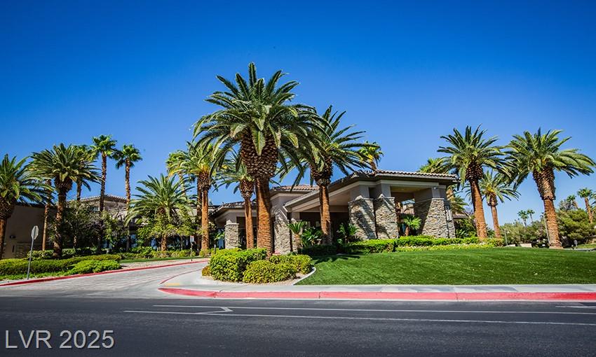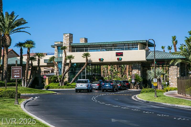 215 & S. Durango to Rhodes Ranch Guard gate, through gate to the Collections, Right on Red Tee, Left on Hidden Hole to property.