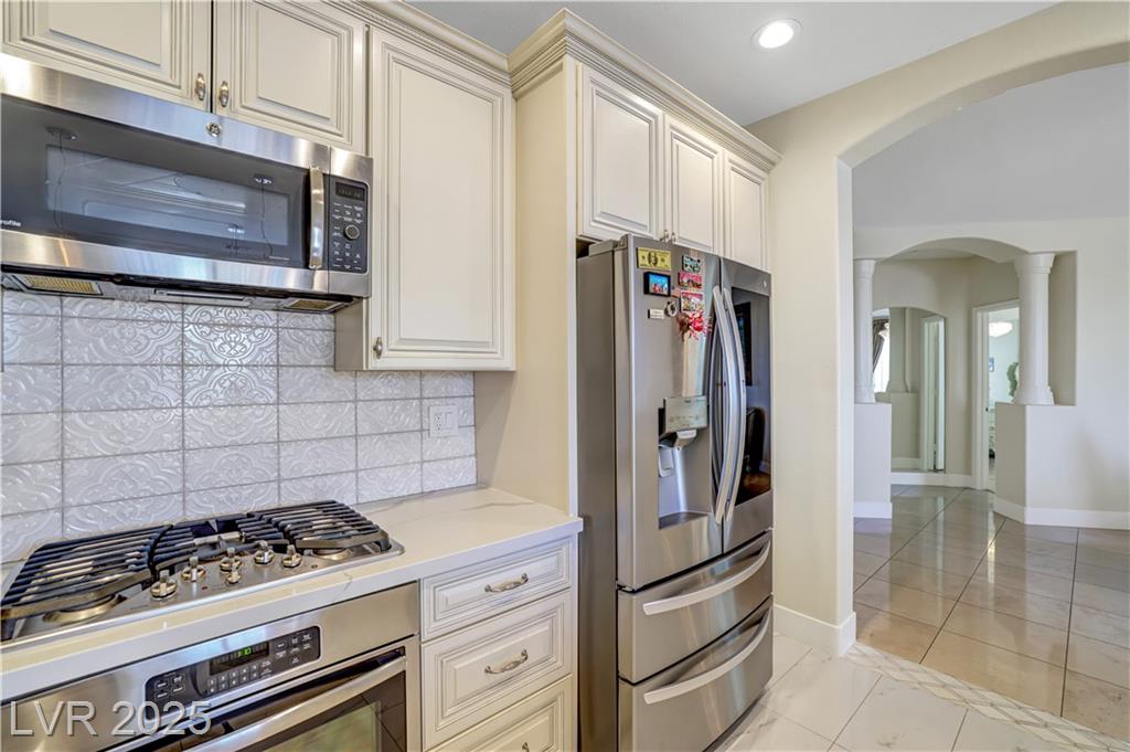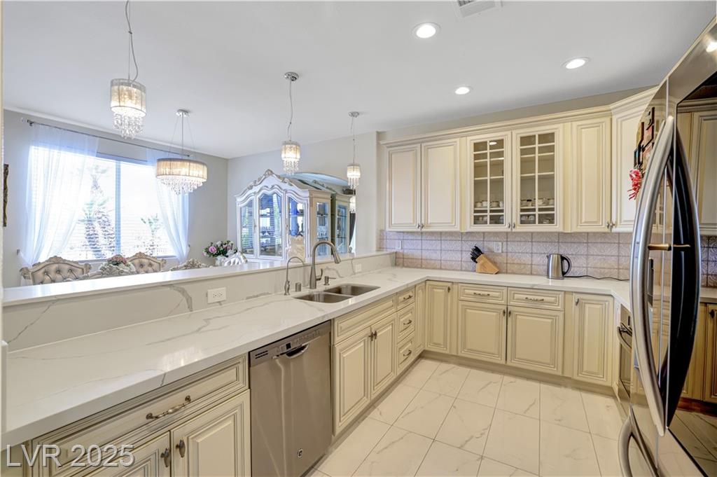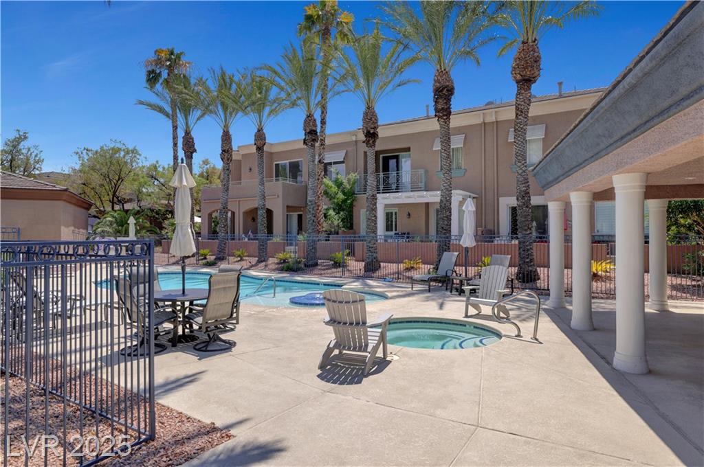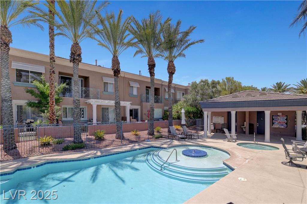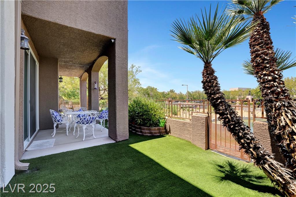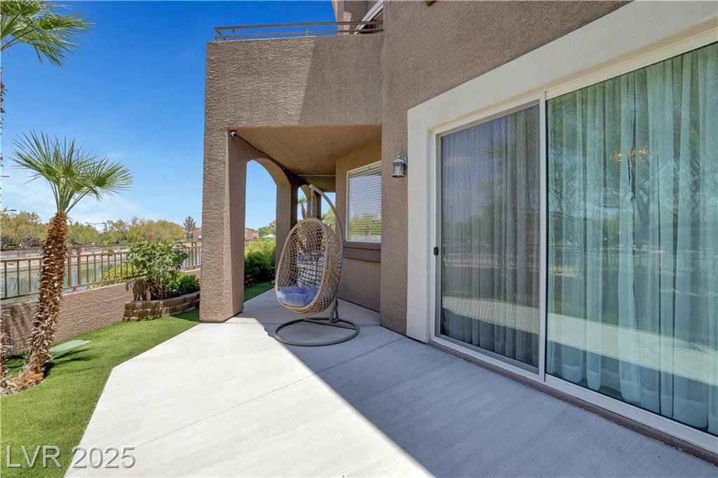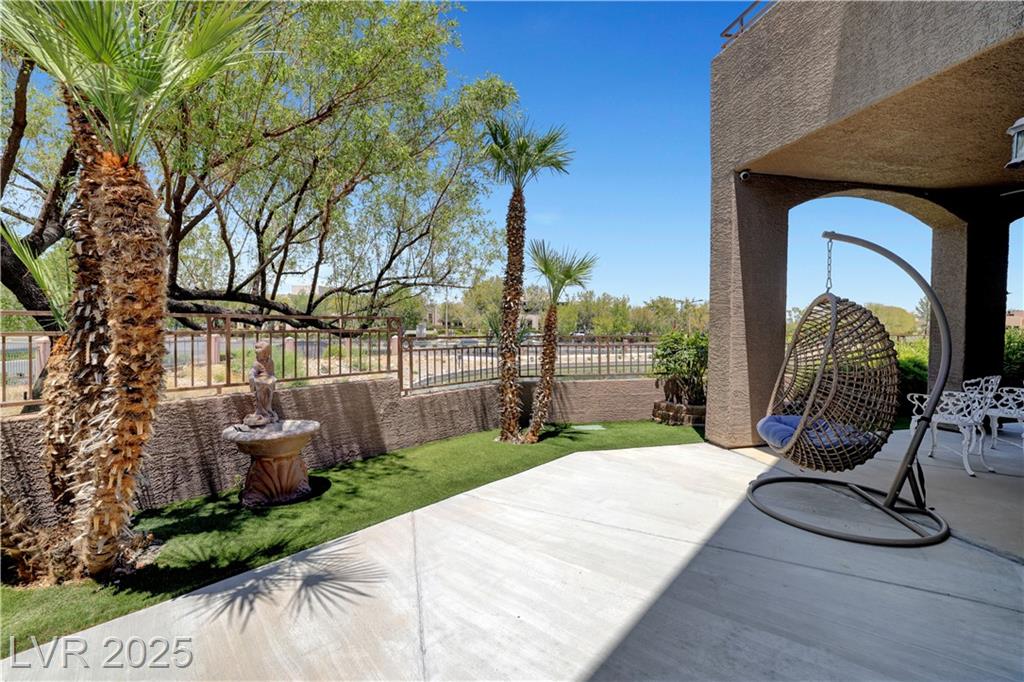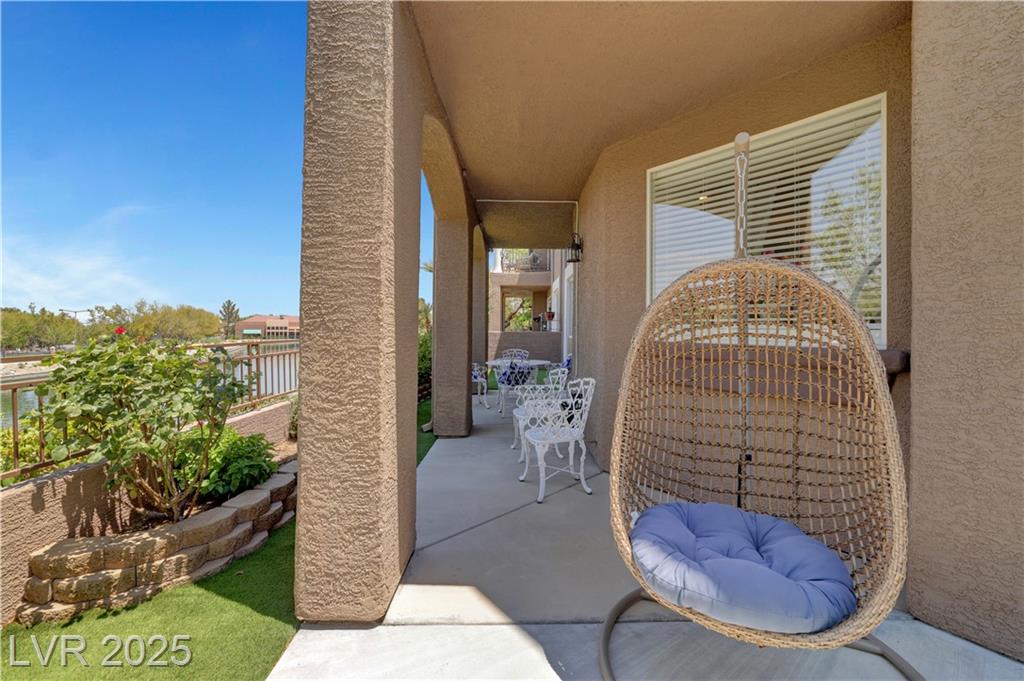 Step into luxury beautifully appointed 2-bed, 2-bath condo in the gated Terraces in Summerlin. Approximately 1,481 sq ft of open-concept living space, this first-floor residence offers abundant natural light, panoramic lagoon views, a chef’s kitchen with sleek quartz countertops, custom cabinetry, and stainless-steel appliances. Spacious living and dining areas with high ceilings and designer finishes. Primary suite with walk-in closet, dual vanities, glass-enclosed shower, and direct access to a private patio or balcony overlooking the water. Guest or second bedroom offering generous space. Enjoy the mornings and sunset on your patio with water view. Community amenities including a gated environment and a resort-style pool for residents. Attached garage plus extra storage or detached garage nearby. Located in the heart of Summerlin, you’ll enjoy proximity to shopping, dining, and recreation. This is your opportunity to experience luxury living.