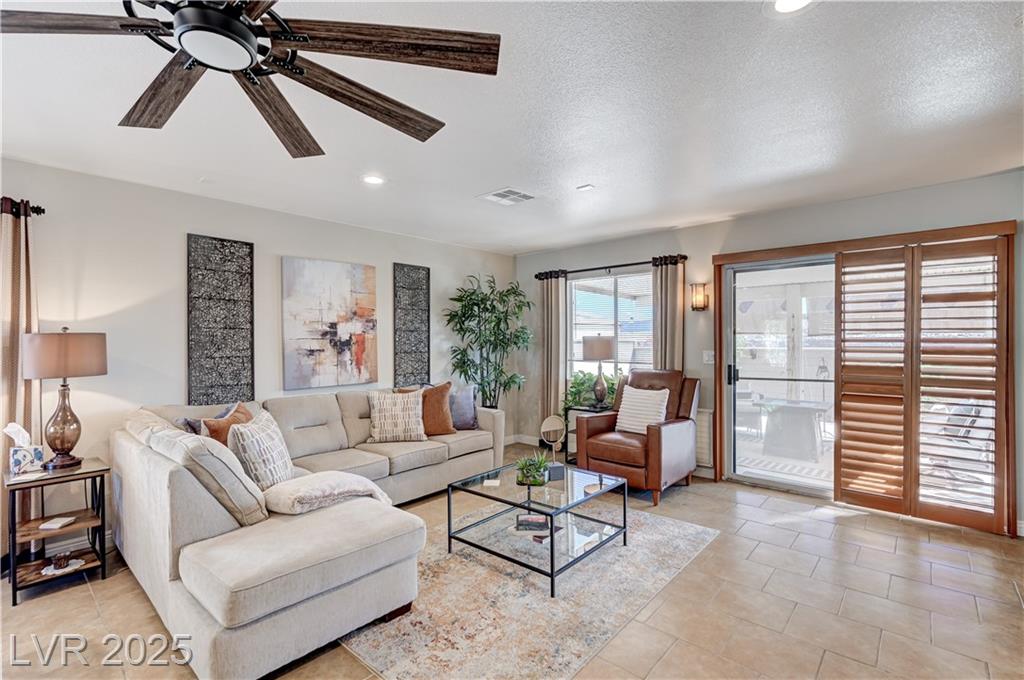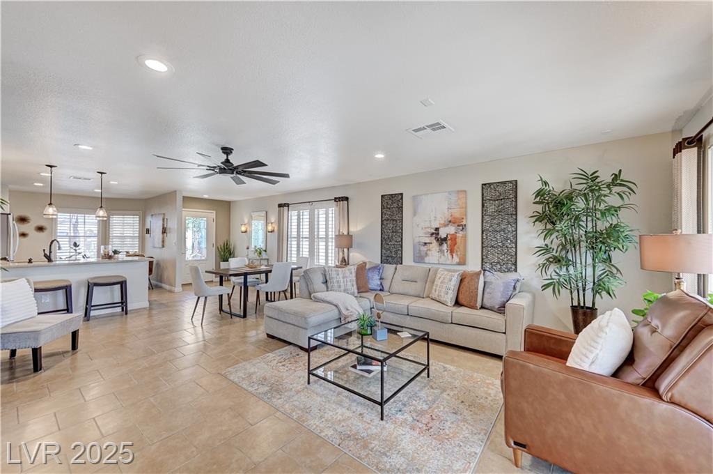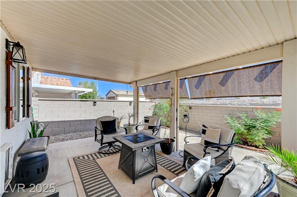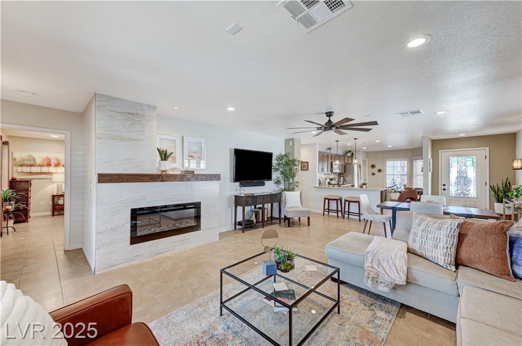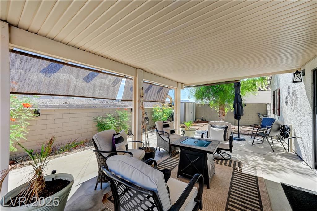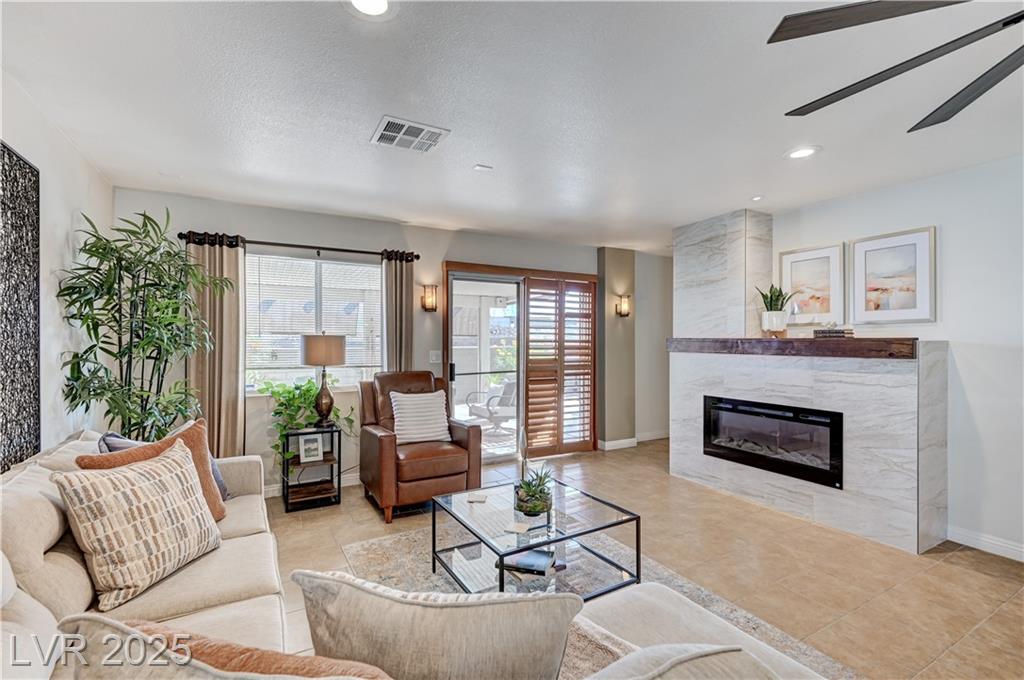 Welcome to this stunning single-story 3 bedroom, 2 bath home with a two-car garage that shows like a model and radiates pride of ownership. Remodeled within the last two years, every space feels fresh, inviting, and thoughtfully designed. The open floor plan features granite countertops, a striking tiled fireplace, and tile flooring throughout for style and easy maintenance. The home is filled with natural light, complemented by LED recessed lighting with dimmers to set the perfect mood. Solar screens add energy efficiency, while every detail has been carefully maintained to keep the property in excellent condition. Step outside to your private retreat: a covered patio with a sunshade perfect for morning coffee, barbecues, or evening relaxation. Best of all—there are no backyard neighbors, offering rare peace, privacy, and open views. This home is a true gem inside and out, combining comfort, design, and pride of ownership in every corner.