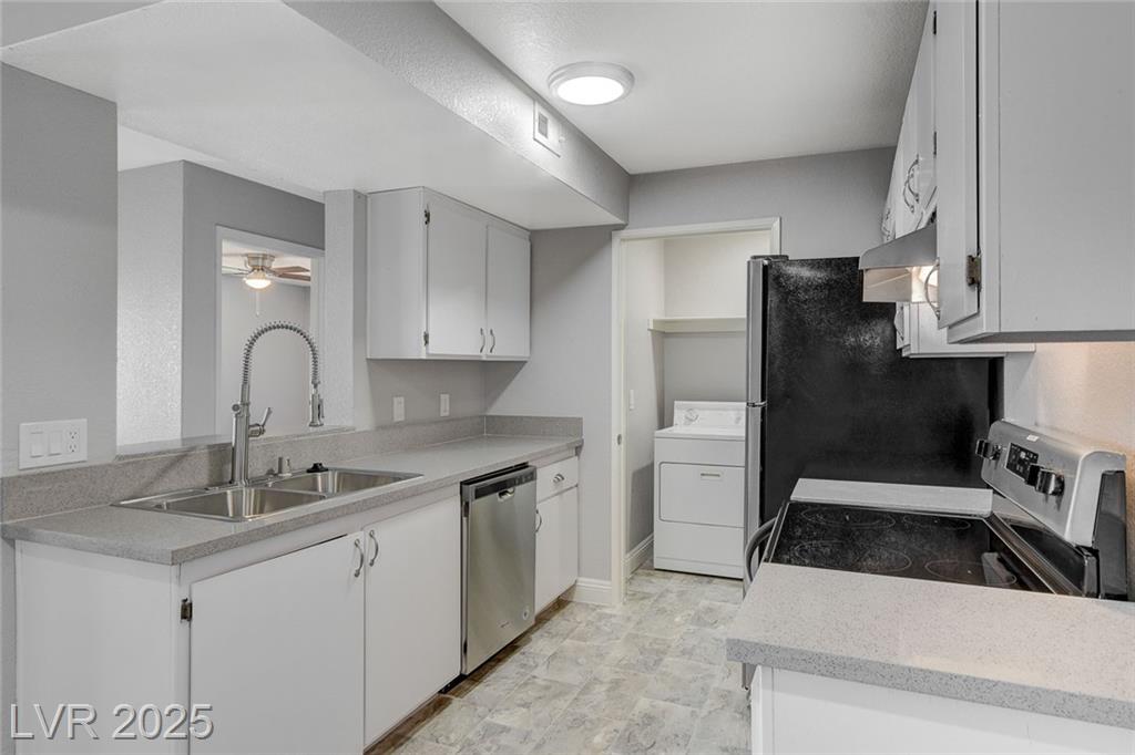 Price reduction $10,000. Renovated condo in a gated community, featuring gently used paint and carpet just 2 years old! This home offers 2 bedrooms on opposite sides, an open living room with a fireplace, quartz kitchen countertops, and a balcony accessible through the living room sliding door. The appliances throughout are newer, including a lightly used washer and dryer that are only 2 years old. The community offers 2 pools, an indoor spa, a central courtyard, and an exercise room for your enjoyment.