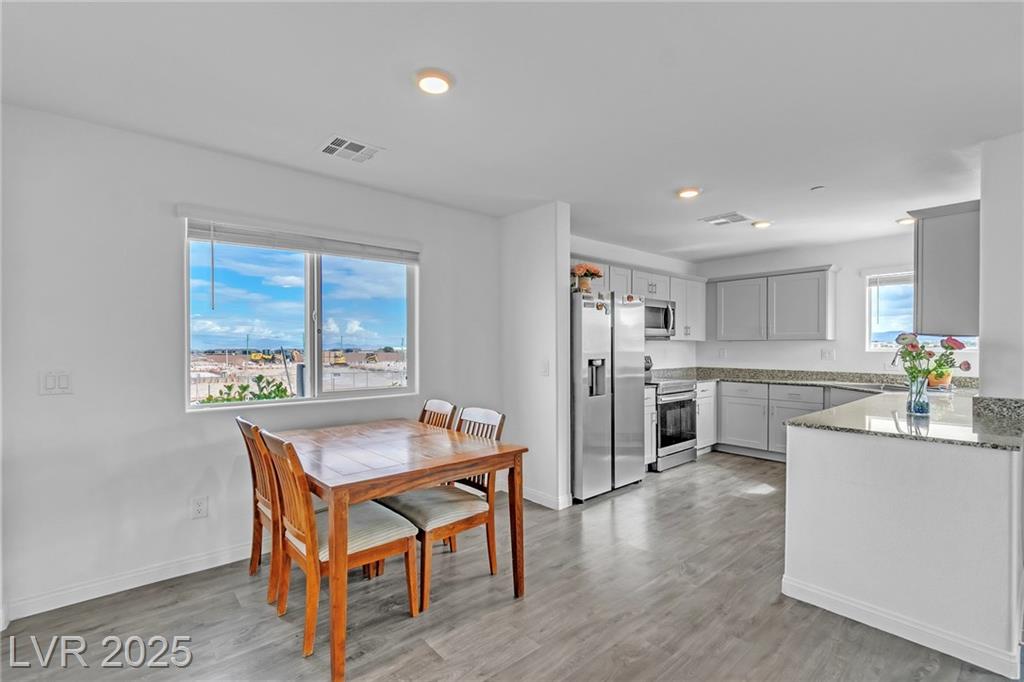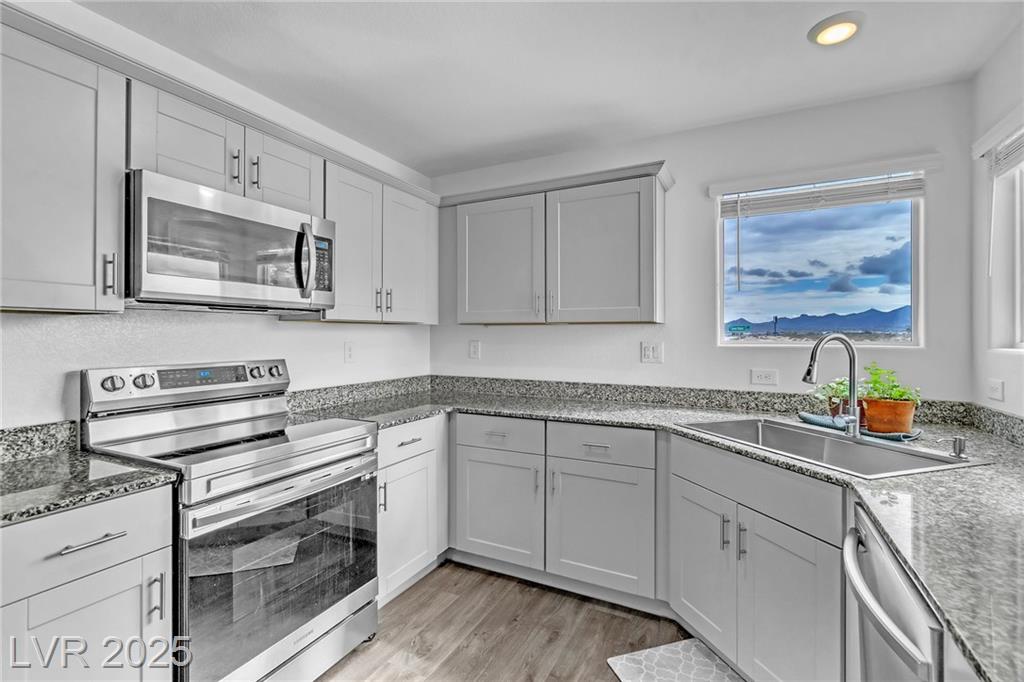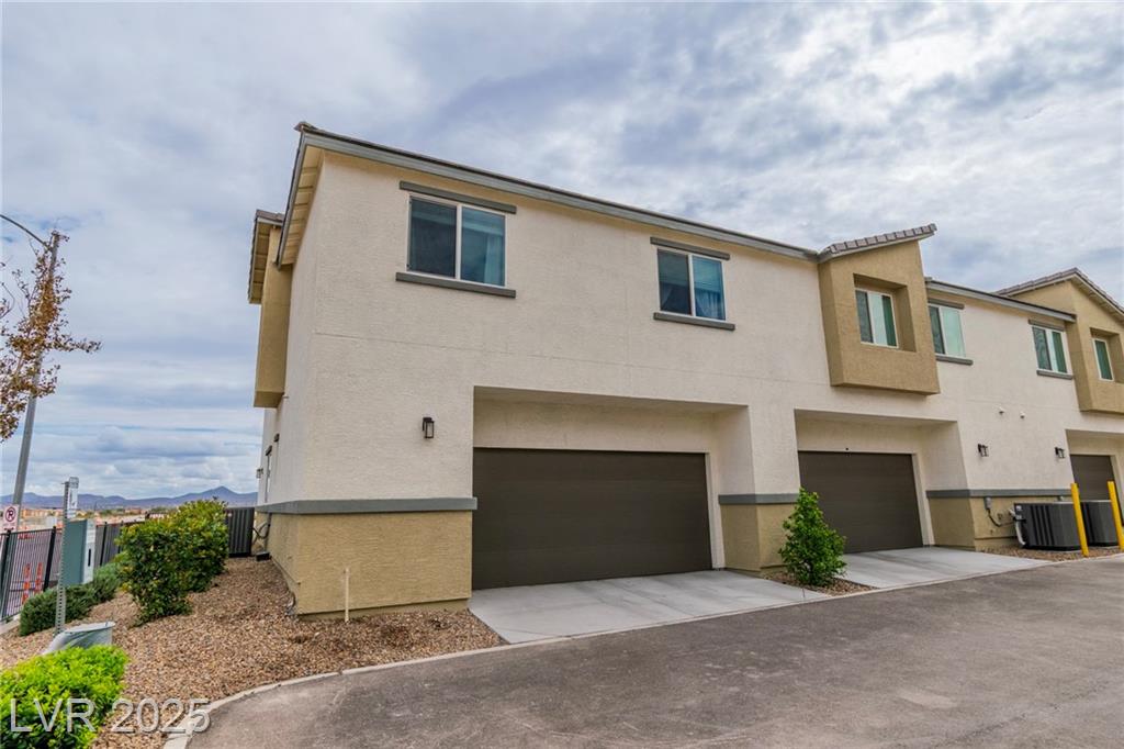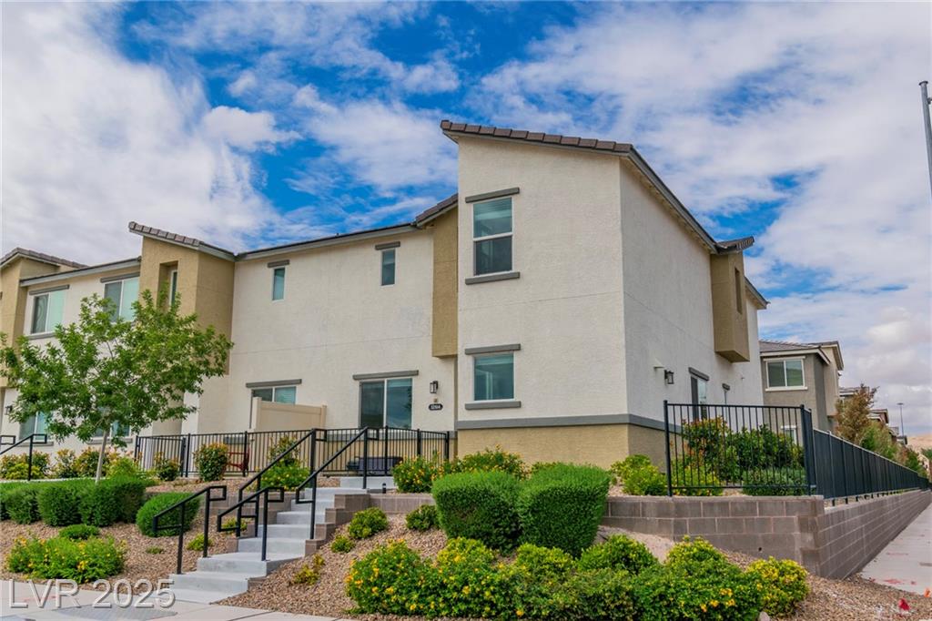 Welcome to this stylish and well-appointed 2023-built corner townhome in the highly desirable 89183 zip code—just minutes from the Raiders Stadium Headquarters, the M Resort and Casino, and with quick freeway access to Los Angeles, CA. This bright and airy home features 3 bedrooms, 2.5 baths, and a 2-car garage, offering modern comfort and convenience. From the dining area, enjoy sweeping views of both the mountains and the Las Vegas Strip—a huge feature in this community! The inviting front porch and quaint garden create a warm welcome. Inside, the open-concept kitchen boasts granite countertops, stainless steel appliances, and sleek shaker cabinets, perfect for entertaining or everyday living. A water conditioning system (owned) adds extra value and peace of mind. Upstairs, the primary suite is extra spacious, complemented by two additional comfortable bedrooms. HOA fees include water and high-speed internet. Community has 3 pools, a pet park, and a playground.