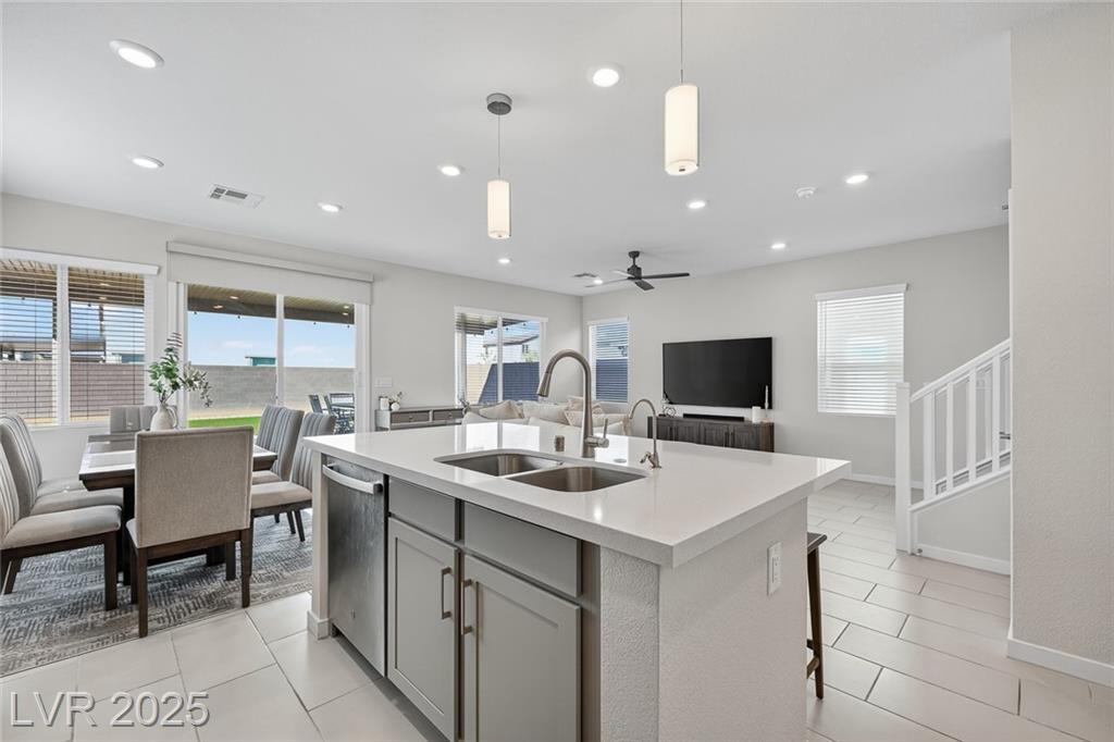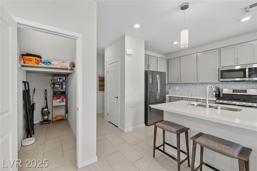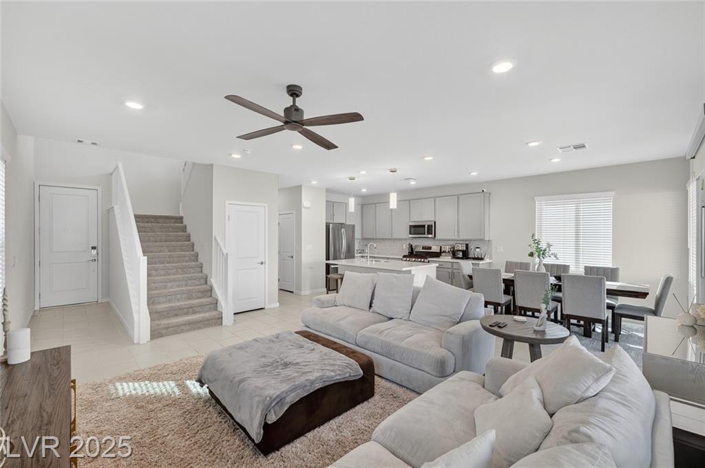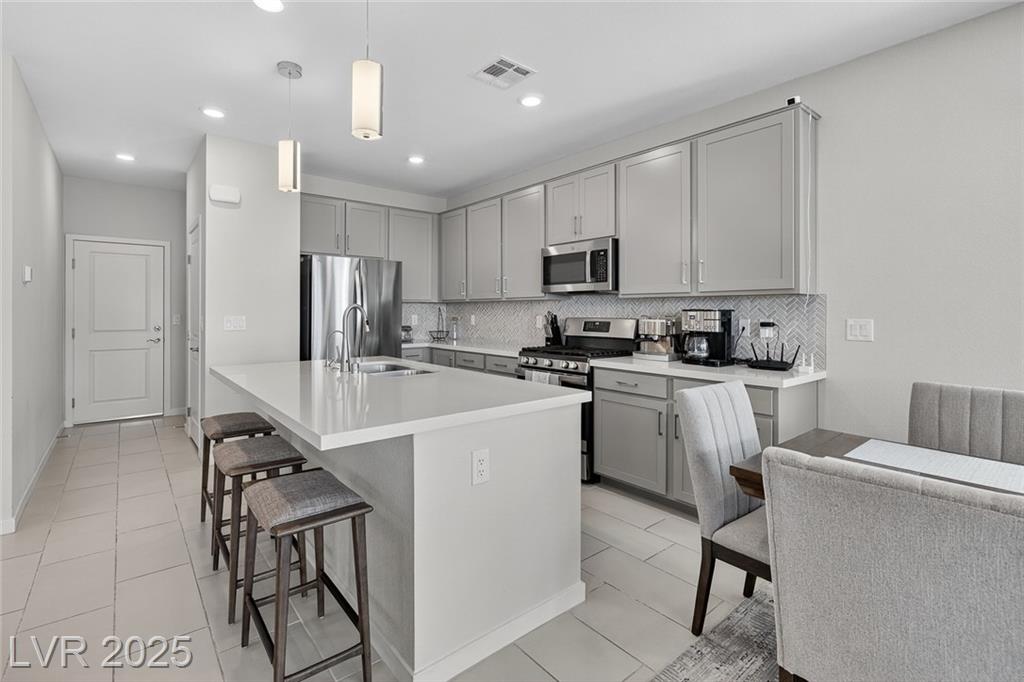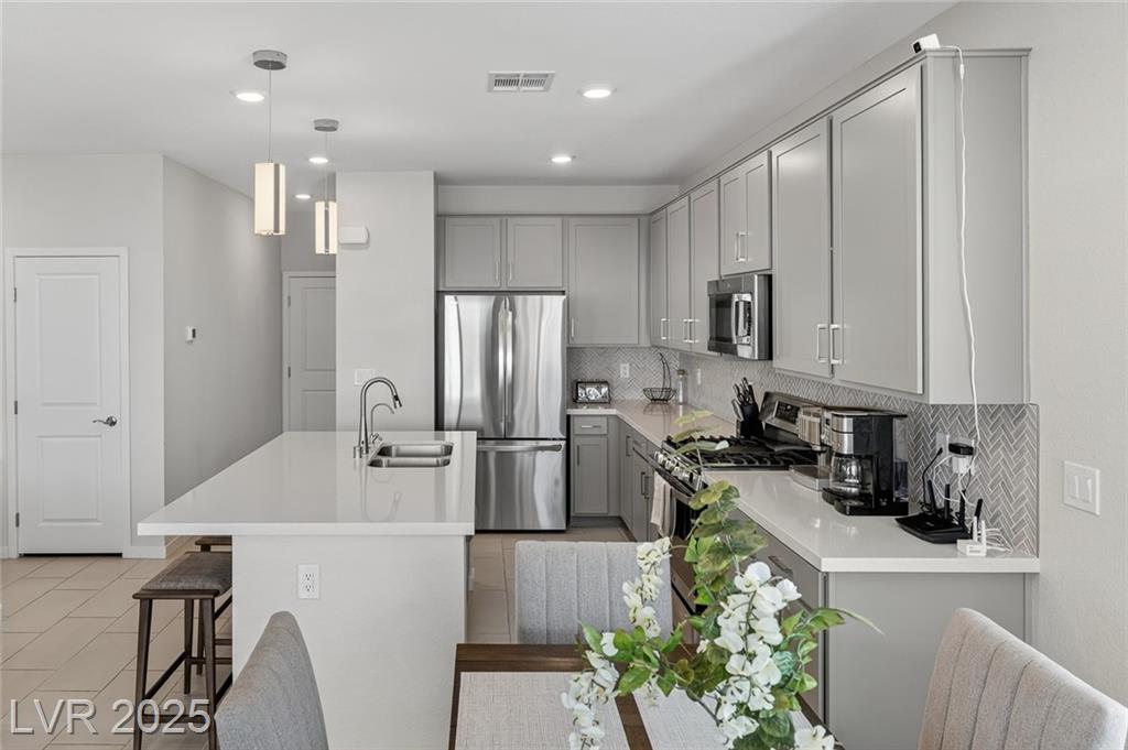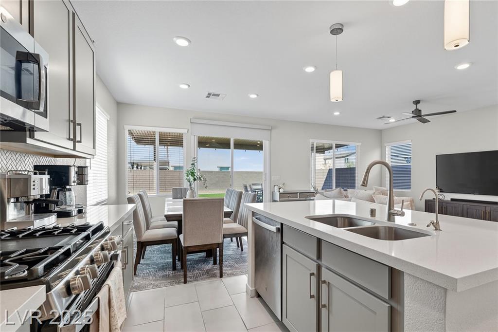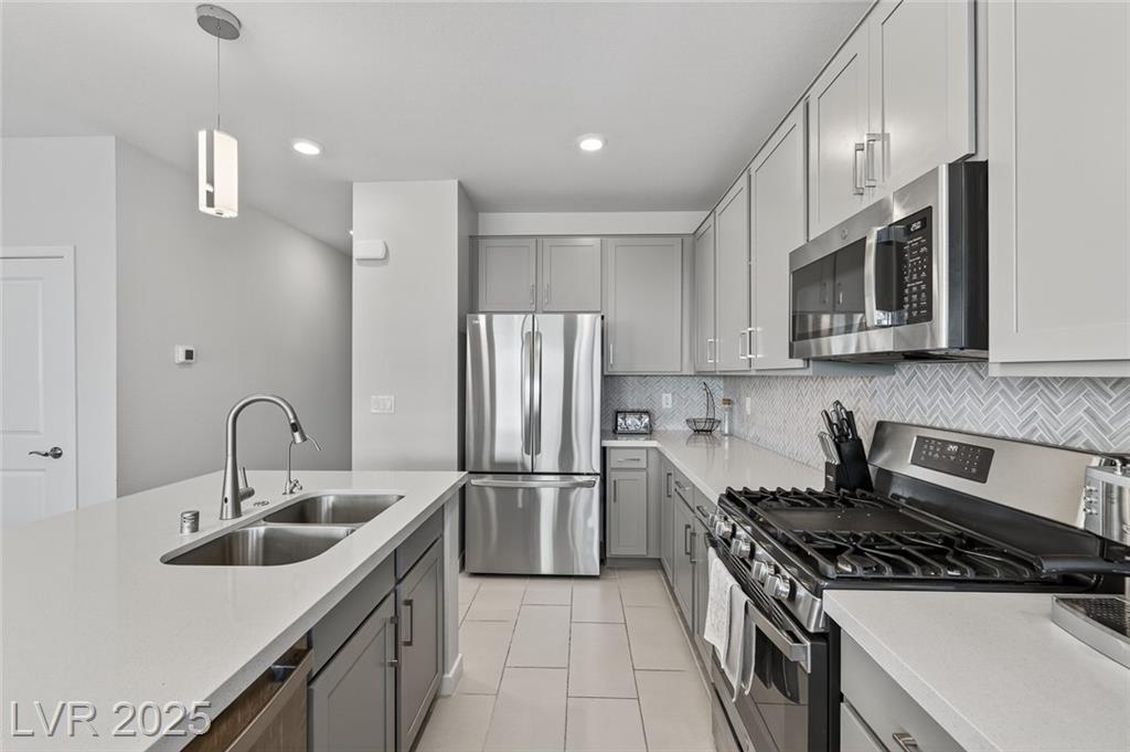 Welcome to your dream home in North Las Vegas, where contemporary living meets convenience. This nearly new, stunning house boasts three cozy bedrooms and a large loft, perfect for both first-time buyers and growing families. Inside, modern finishes shimmer alongside stainless steel appliances and a chic backsplash that will inspire your culinary adventures. Step outside to discover a spacious, landscaped oasis complete with low-maintenance synthetic grass — the ideal setting for relaxing or entertaining. Enjoy the added luxury of a two-car parking space, ensuring ample room for vehicles. The community park offers a serene retreat for leisure and play, while the nearby freeway and shopping centers cater to all your needs with ease. This residence is more than just a house; it's a lifestyle upgrade waiting for you to move in and start making memories.