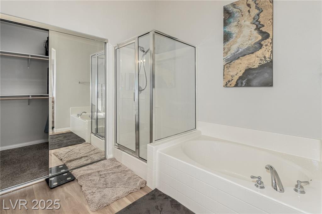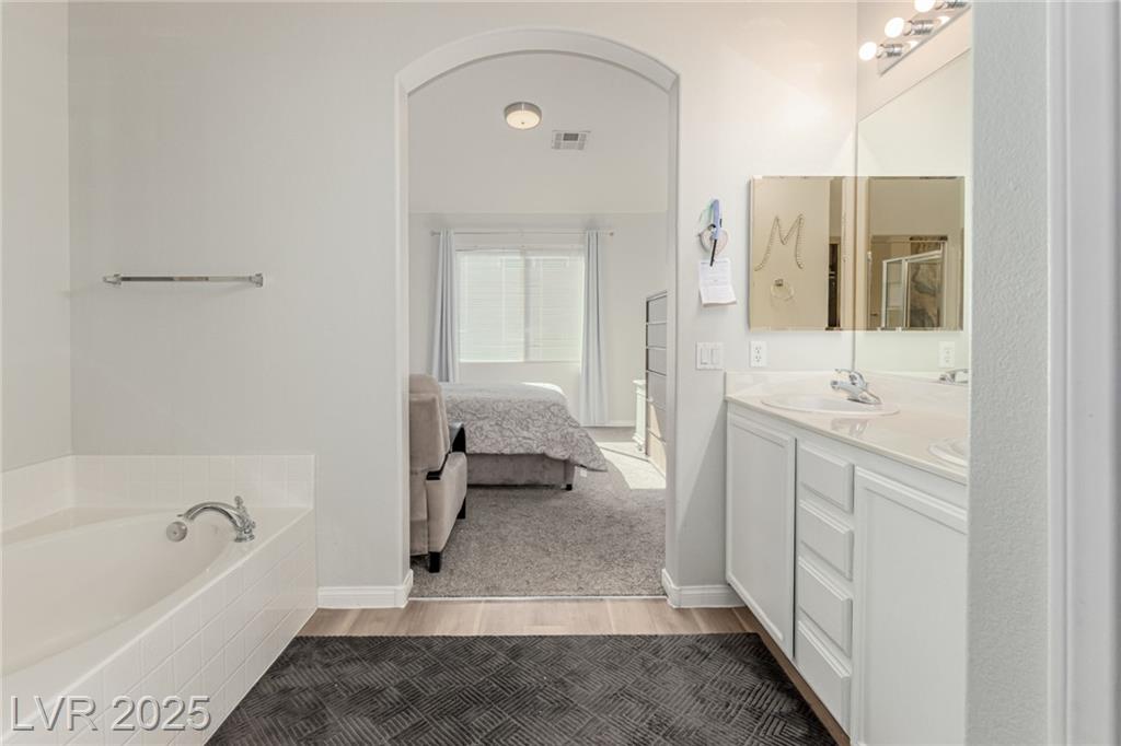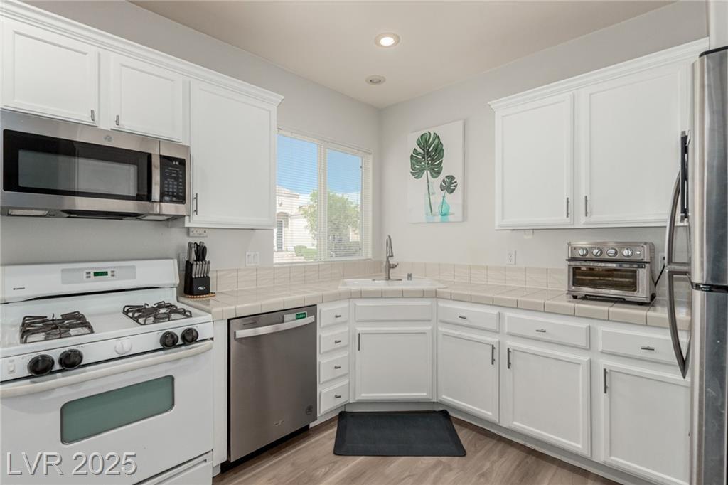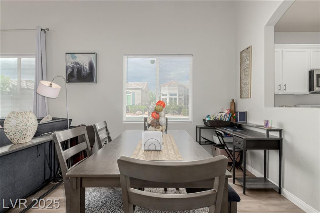 Welcome to this delightful 3-bedroom townhome complete with a 2-car garage! Inside, you’ll find soaring vaulted ceilings and beautiful wood-look floors that create an airy, inviting vibe. The spacious living and dining area is perfect for gatherings or quiet evenings at home. Whip up your favorite dishes in the well-equipped kitchen, offering matching appliances, tile counters, and plenty of cabinetry for storage. The primary suite is your private retreat, featuring a bathroom with dual sinks, a soaking tub for relaxation, and a generous walk-in closet. Outside, the backyard offers a covered patio and a cozy spot for weekend barbecues, morning coffee, or simply enjoying the fresh air. Take advantage of the community pool! Minutes away from parks, schools, and other local amenities! With its charming design, practical layout, and warm ambiance, this home is ready to be yours. Don’t miss the chance to make it your own!