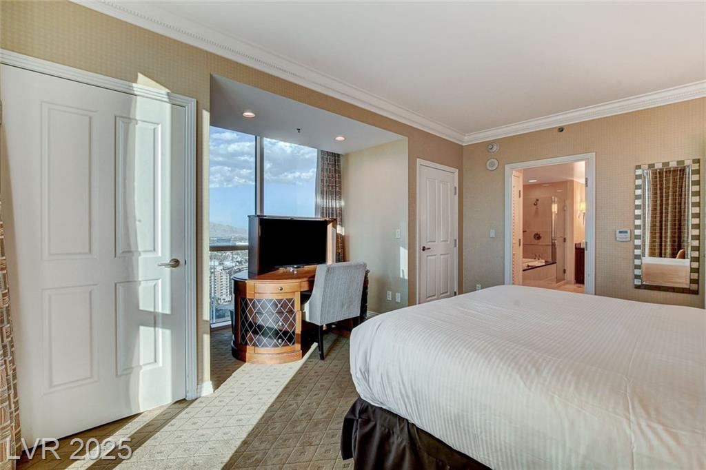 Welcome to this fantastic 1 bed, 2 bath high rise unit in MGM Signature** It is an AirBnB approved unit that is fully furnished with a spectacular view from the living room & terrace** The living room has a built in entertainment center and the kitchen has ample wood cabinetry, granite counters, recessed lighting, built-in appliances, and breakfast bar ** The spacious bedroom has a floor-to-ceiling window, two closets, and an ensuite with dual vanities and a jacuzzi tub. Unit has a private closet with washer & dryer ** Luxury amenities include valet, concierge, fitness centers, heated pools, spas, cabanas, Starbucks and a lounge with a full bar ** Come view this incredible unit located at MGM Signature today **