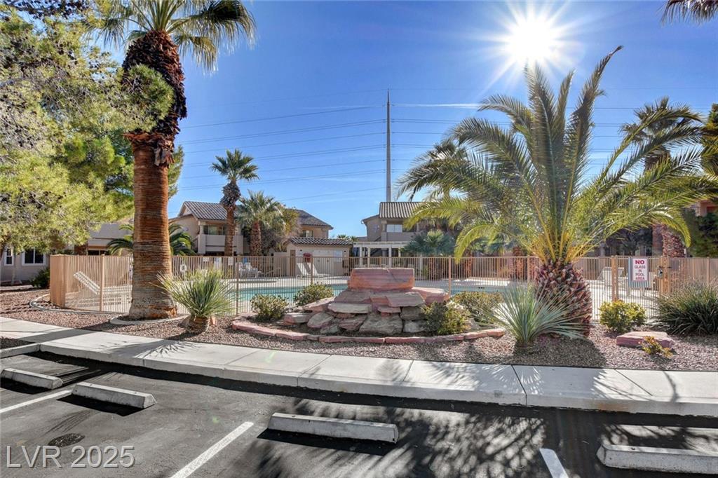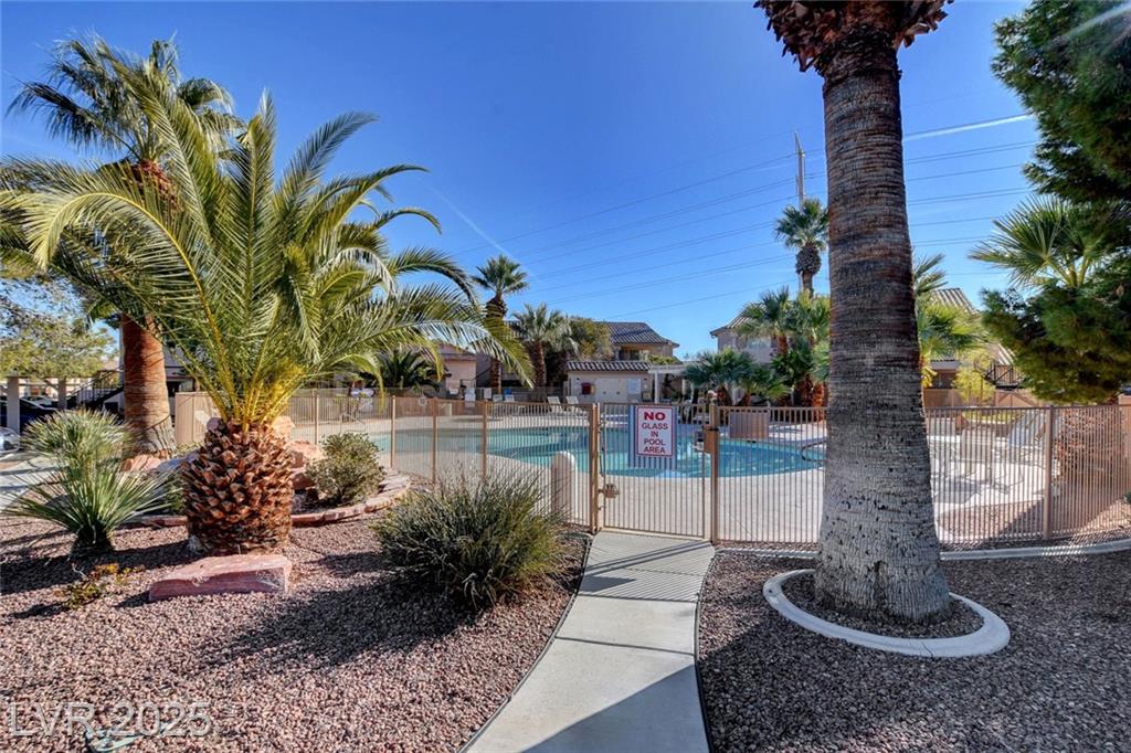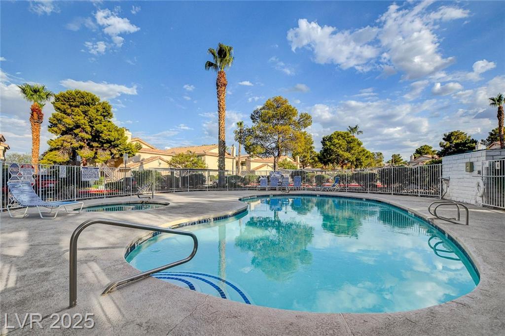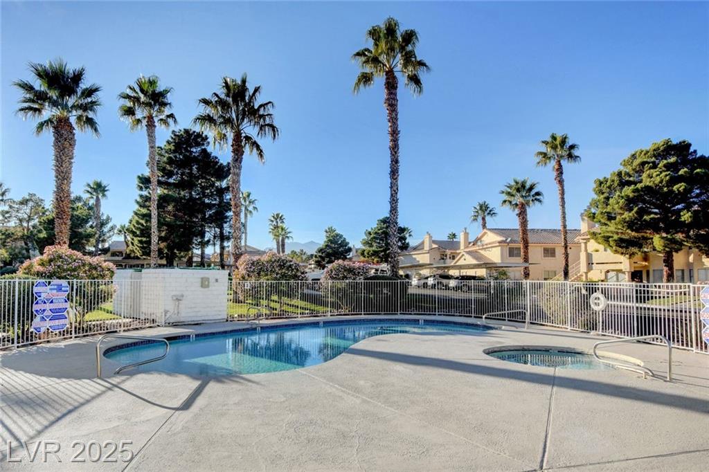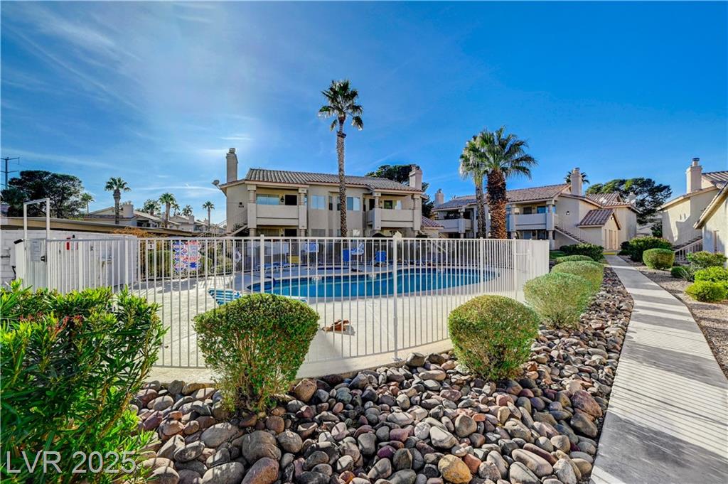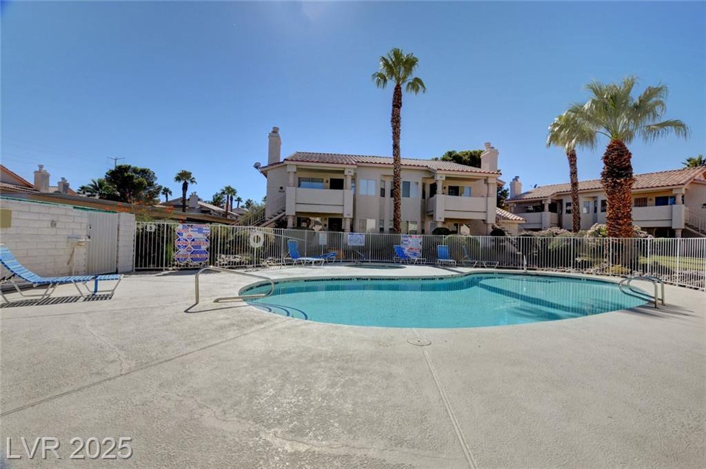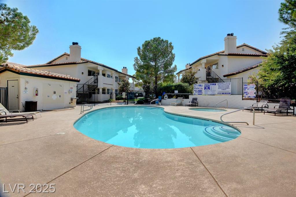 Spacious first-floor condo in Rock Springs Vista, just outside Summerlin! This 2 bedroom, 2 bathroom home offers 1,136 sq ft with an open floor plan featuring a cozy fireplace, breakfast bar, and bright dining nook. Both bedrooms are generously sized. Shaded by mature trees, the private patio creates a lush and relaxing retreat. Enjoy being just steps from the sparkling community pool and spa. Additional highlights include in-unit laundry with washer & dryer included, covered parking, and a prime location close to shopping, dining, and freeway access. A perfect blend of comfort, convenience, and resort-style living!