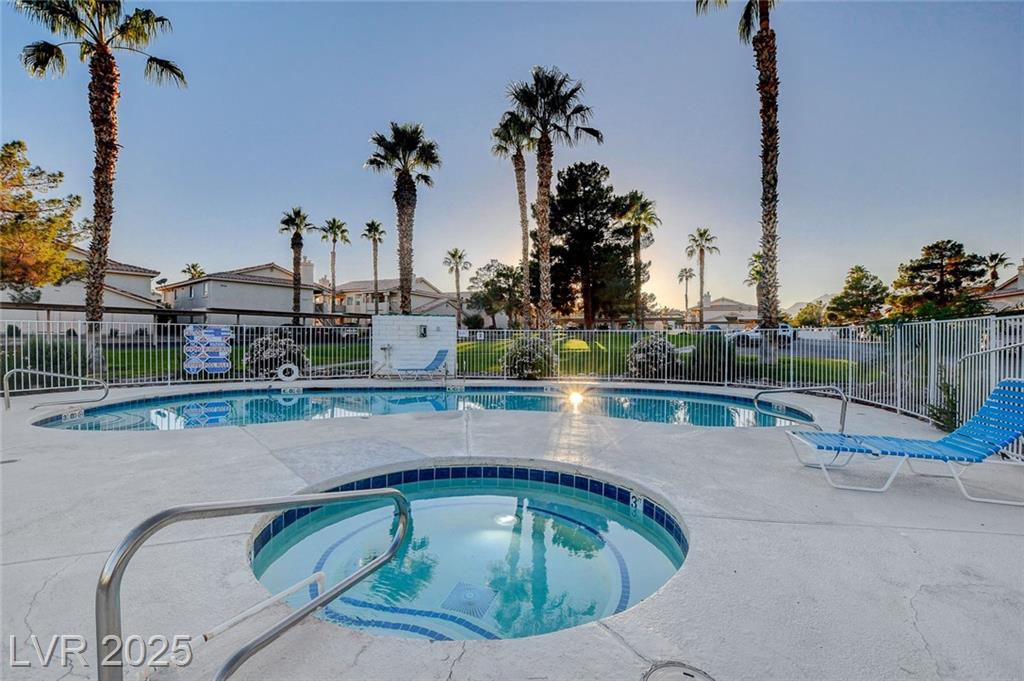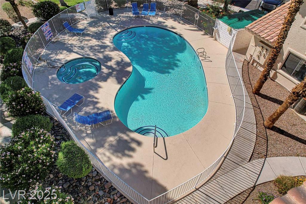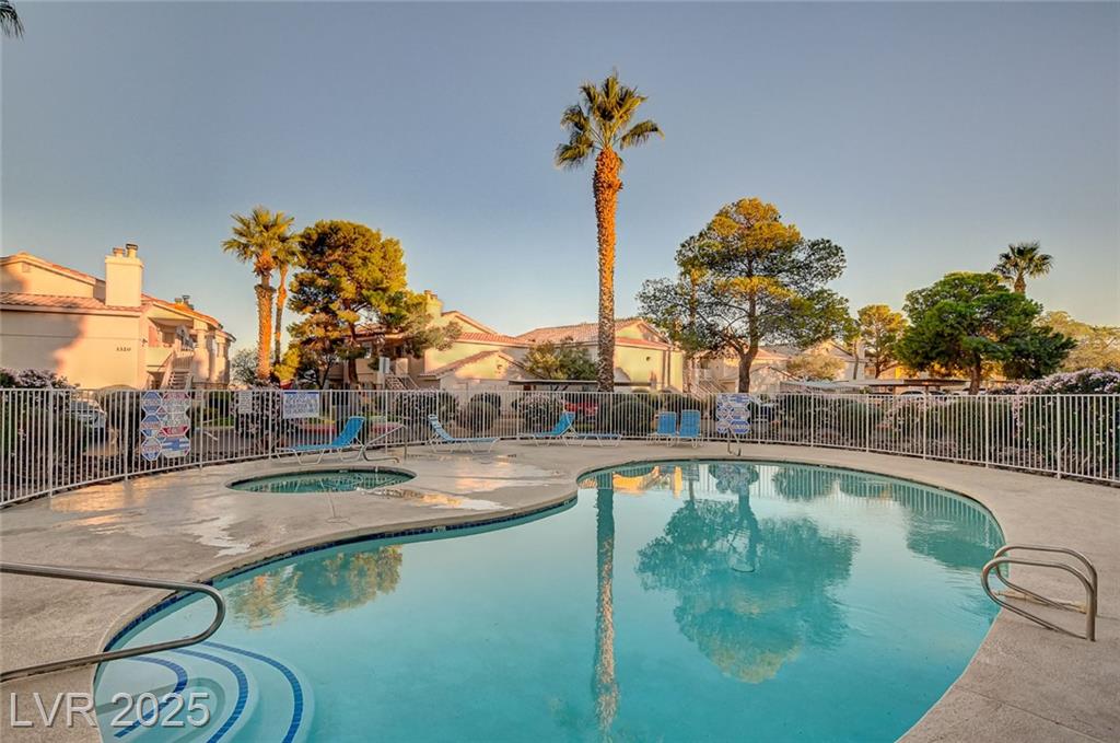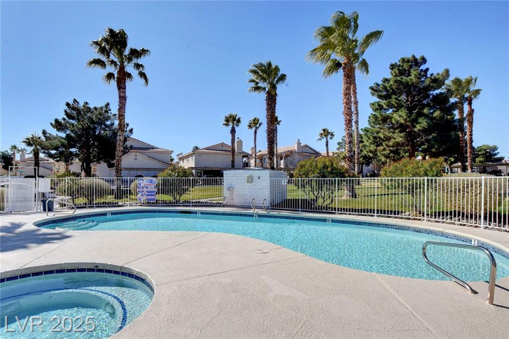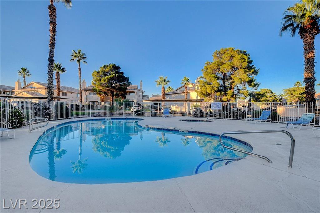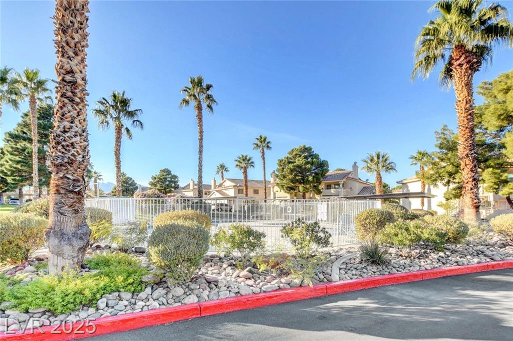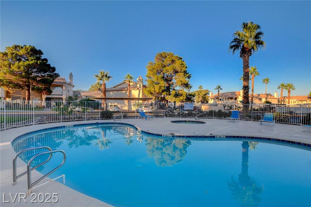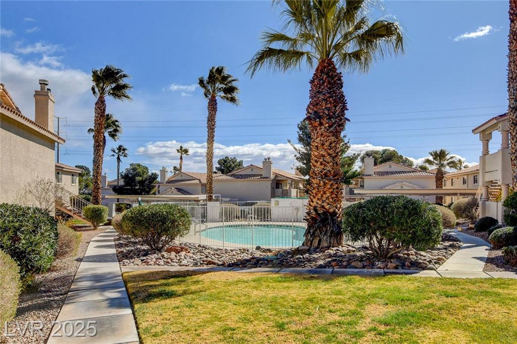 Spacious first-floor condo in Rock Springs Vista, just outside Summerlin! This 2 bedroom, 2 bathroom home offers 1,136 sq ft with an open floor plan featuring a cozy fireplace, breakfast bar, and bright dining nook. Both bedrooms are generously sized. Shaded by mature trees, the private patio creates a lush and relaxing retreat. Enjoy being just steps from the sparkling community pool and spa. Additional highlights include in-unit laundry with washer & dryer included, covered parking, and a prime location close to shopping, dining, and freeway access. A perfect blend of comfort, convenience, and resort-style living!